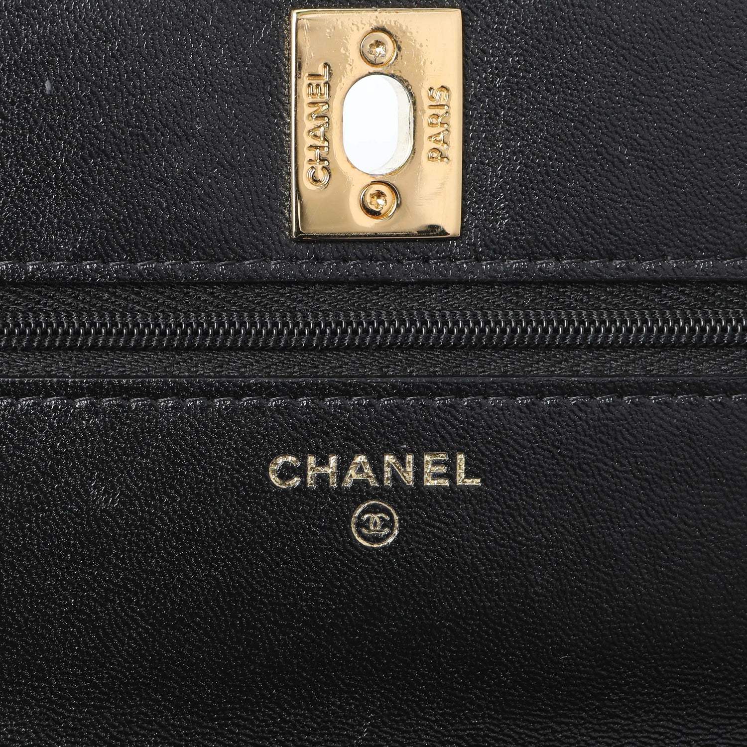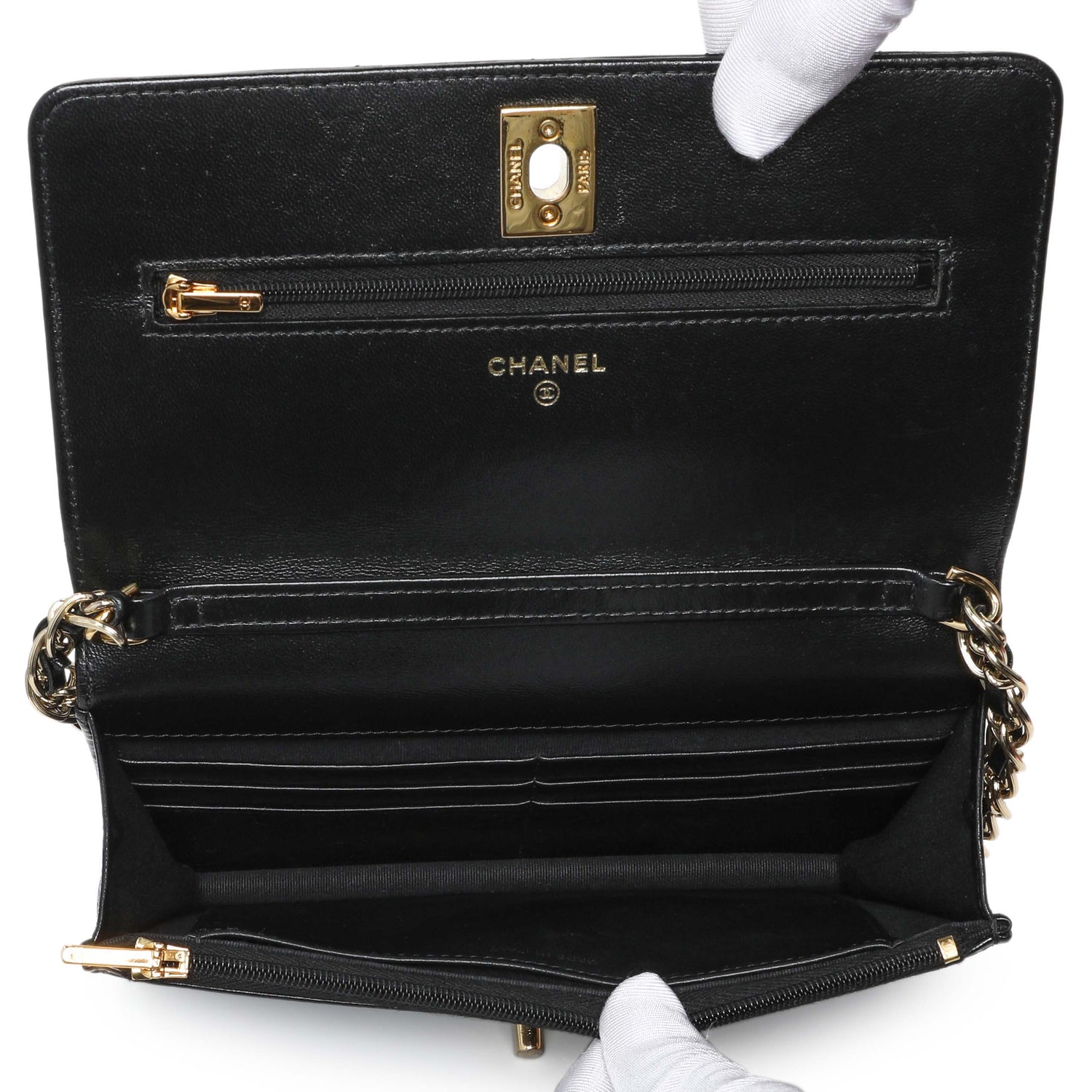 Chanel Black Quilted Shiny Lambskin Golden Links Wallet on Chain