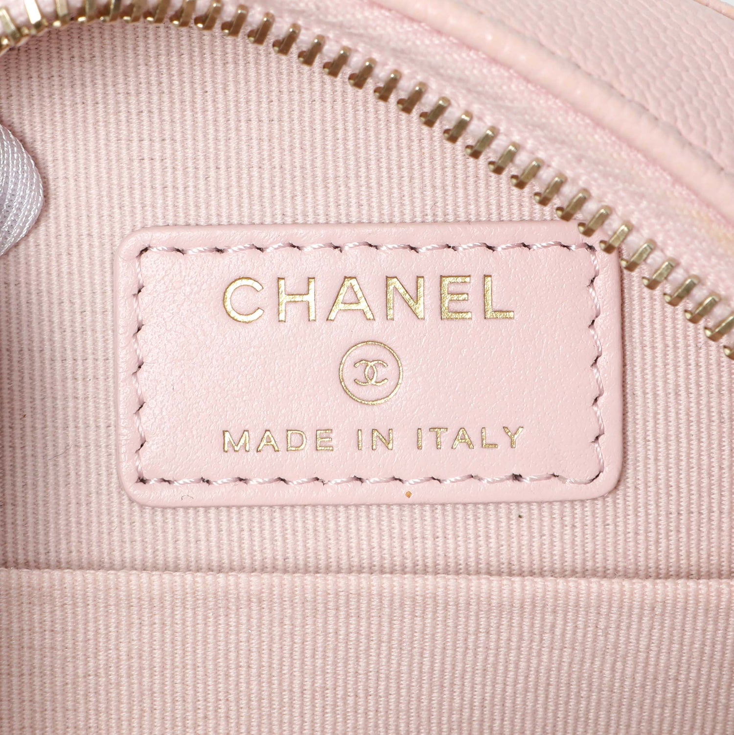 Chanel Pink Quilted Caviar Round Clutch with Chain