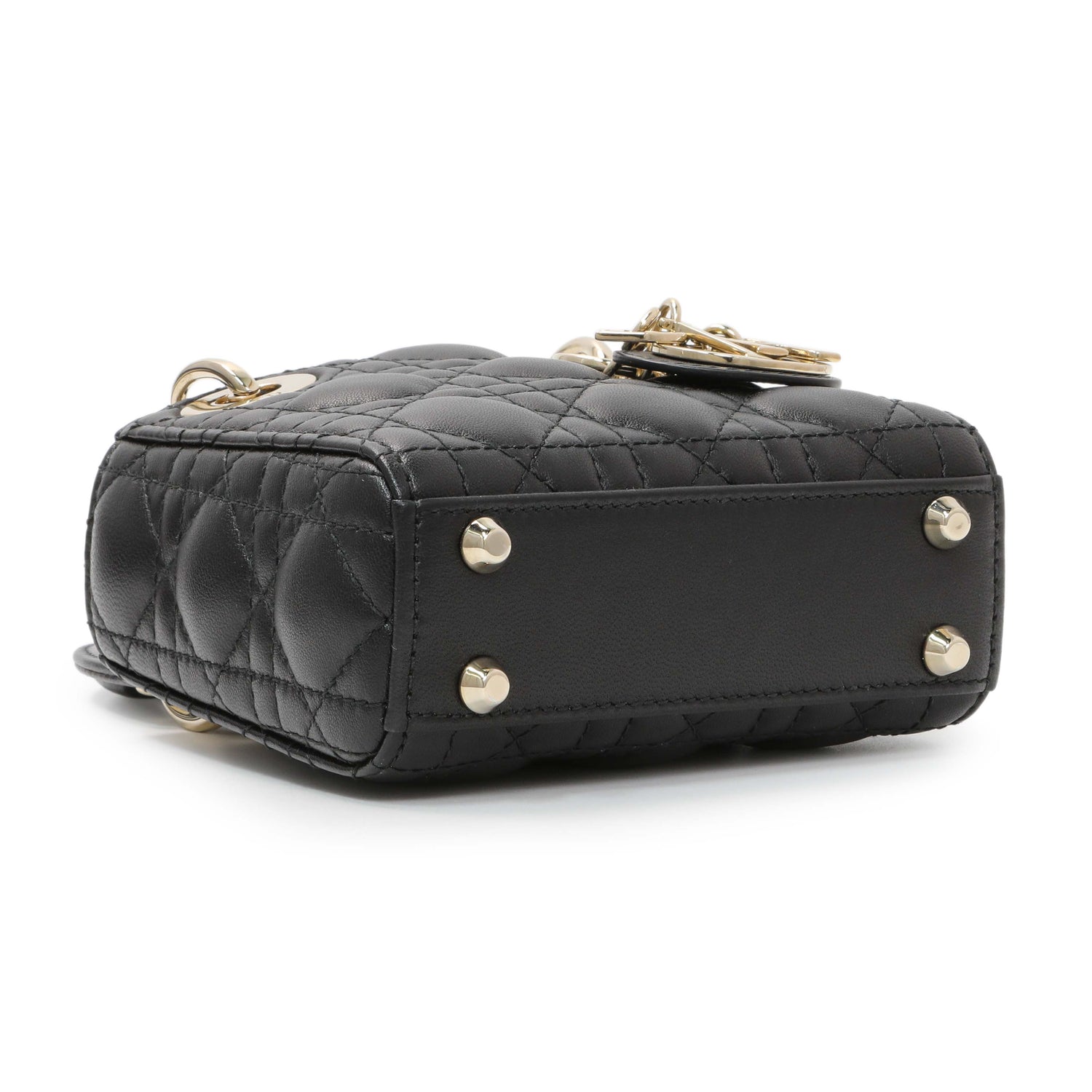 Christian Dior Black Lambskin Cannage Micro Lady Dior