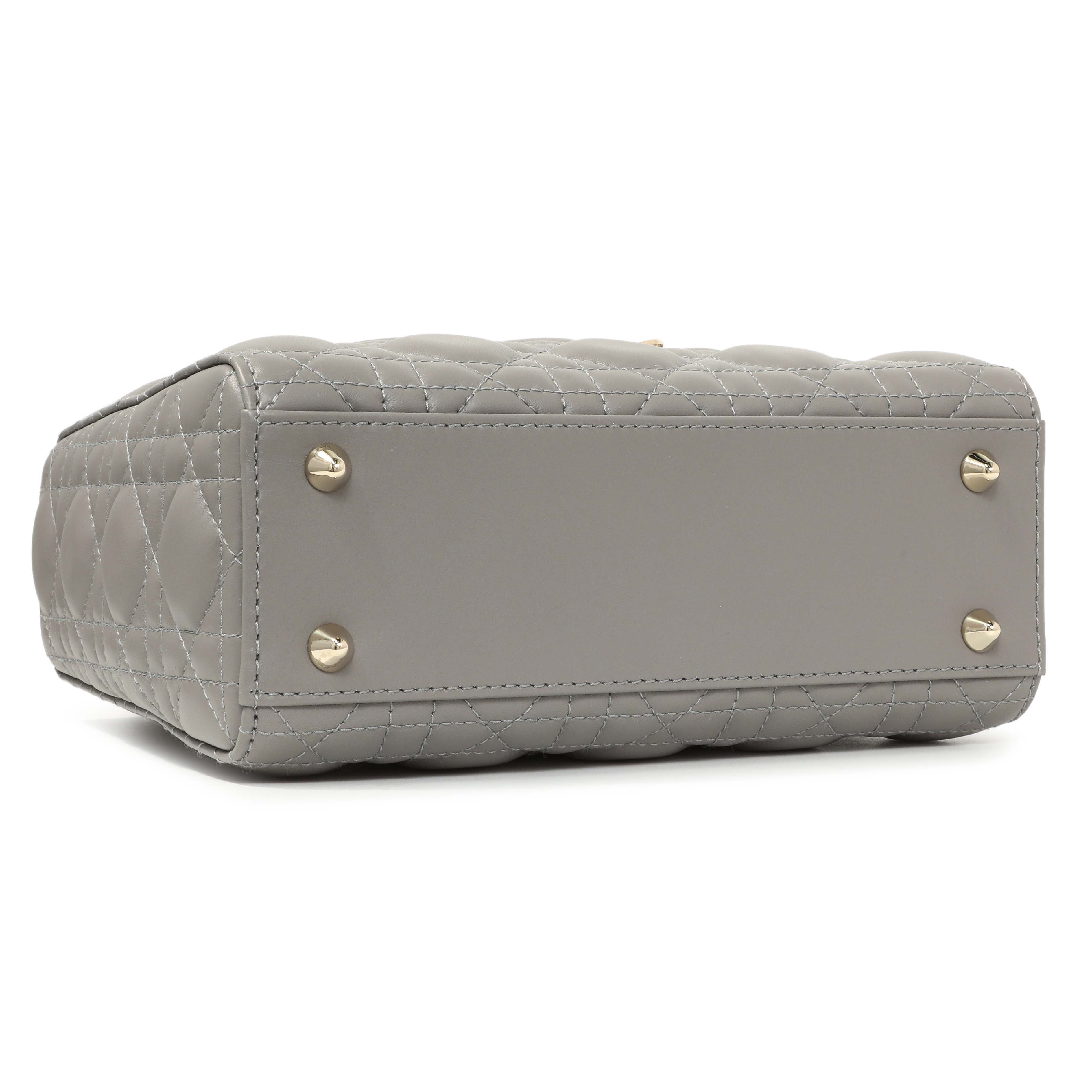 Christian Dior Grey Lambskin Cannage Small My ABCDior Lady Dior is backordered and will ship as soon as it is back in stock.