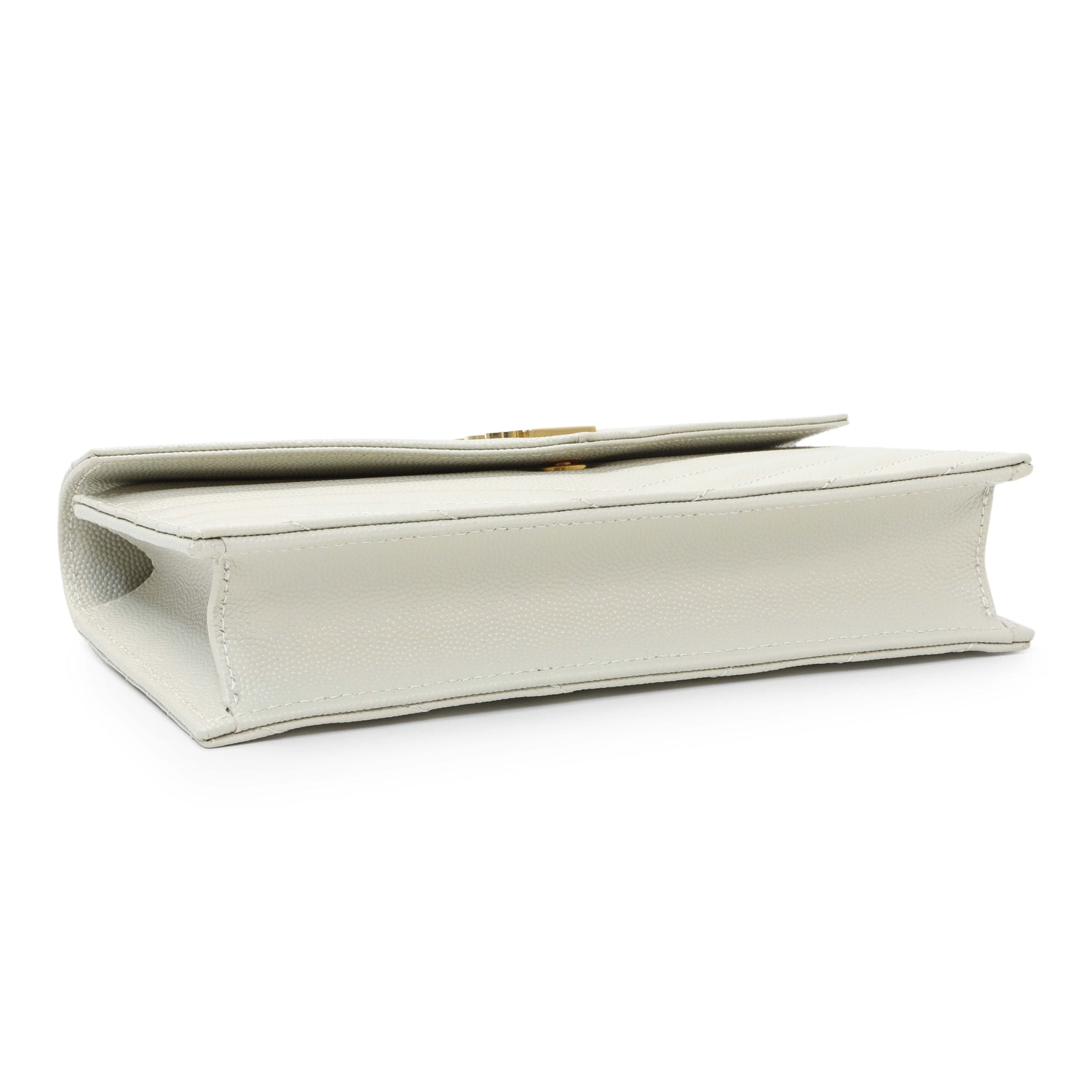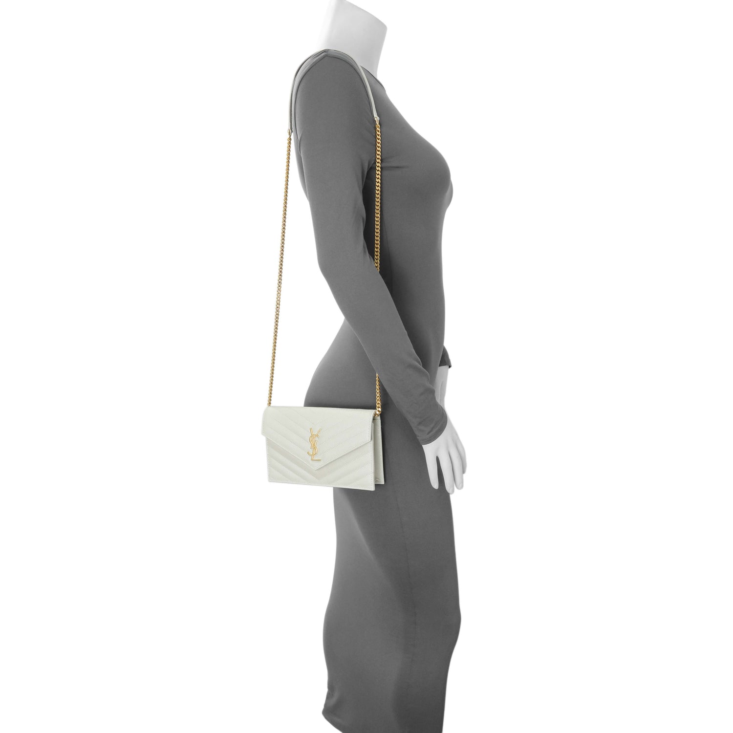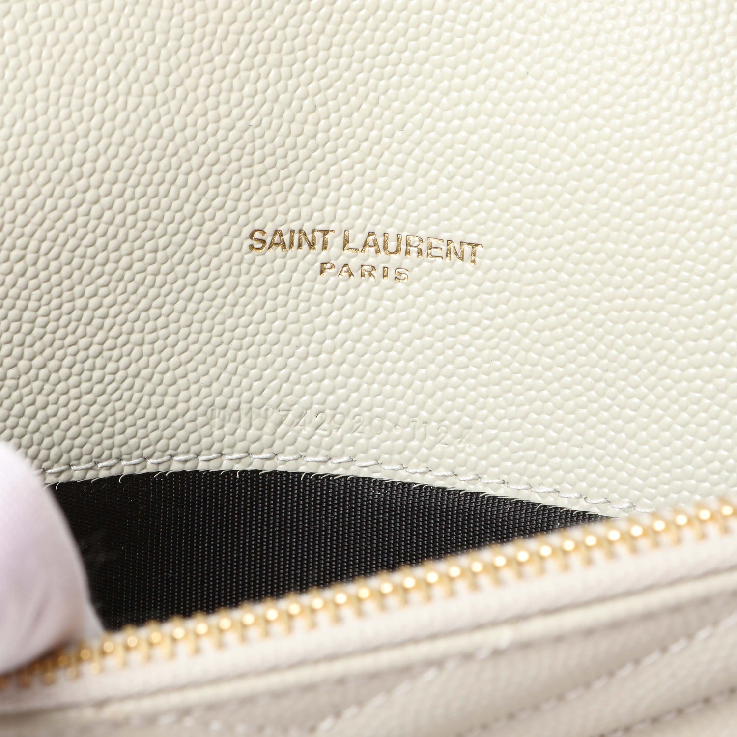 Saint Laurent Crema Grain De Poudre Matelasse Chevron Monogram Envelope Chain Wallet