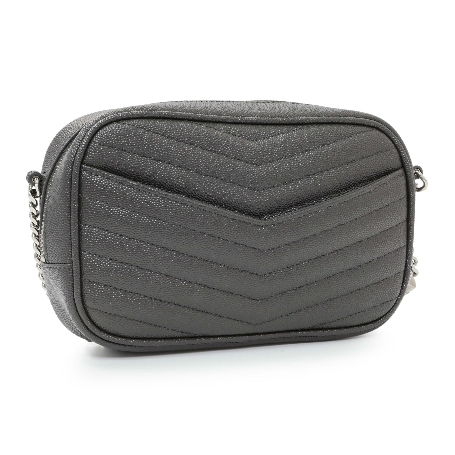 Saint Laurent Grey Grain De Poudre Matelasse Monogram Mini Lou Camera Bag