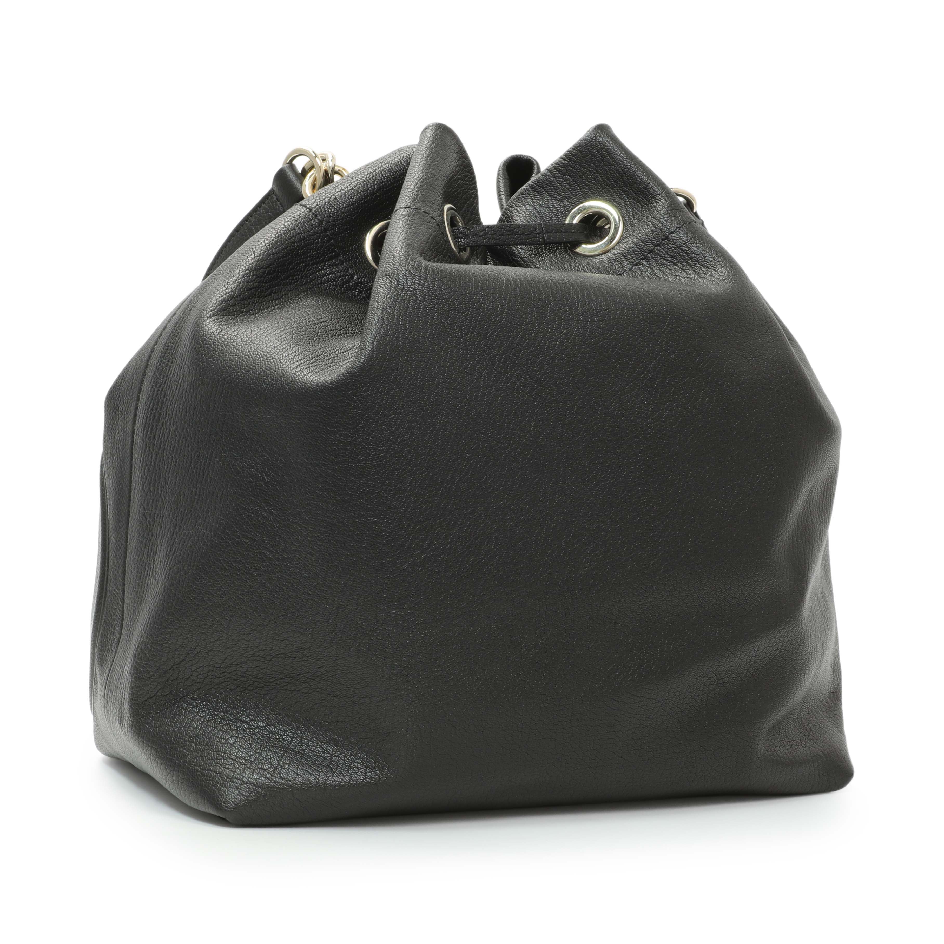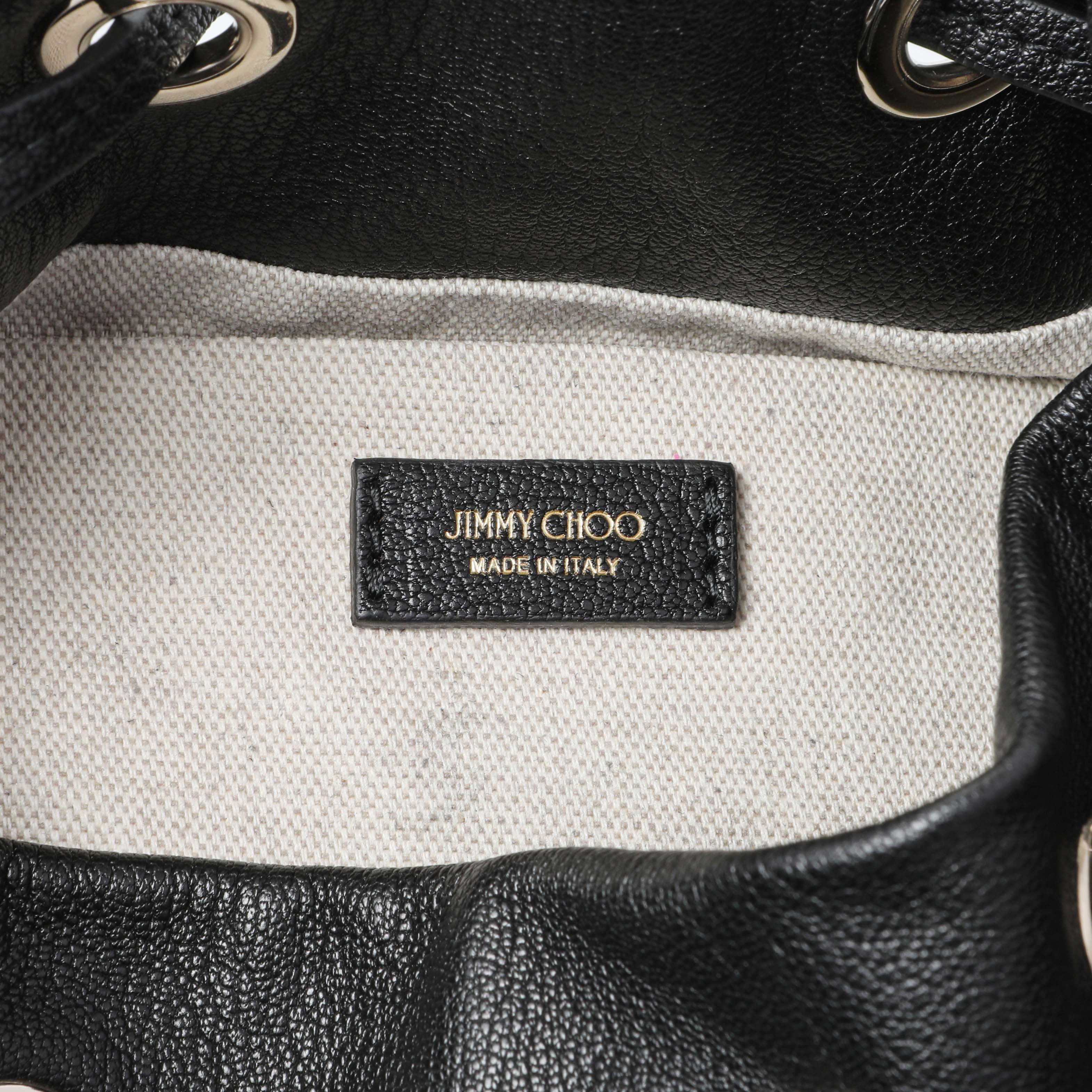 Jimmy Choo Black Nappa Leather Juno Solid Drawstring Bucket Bag