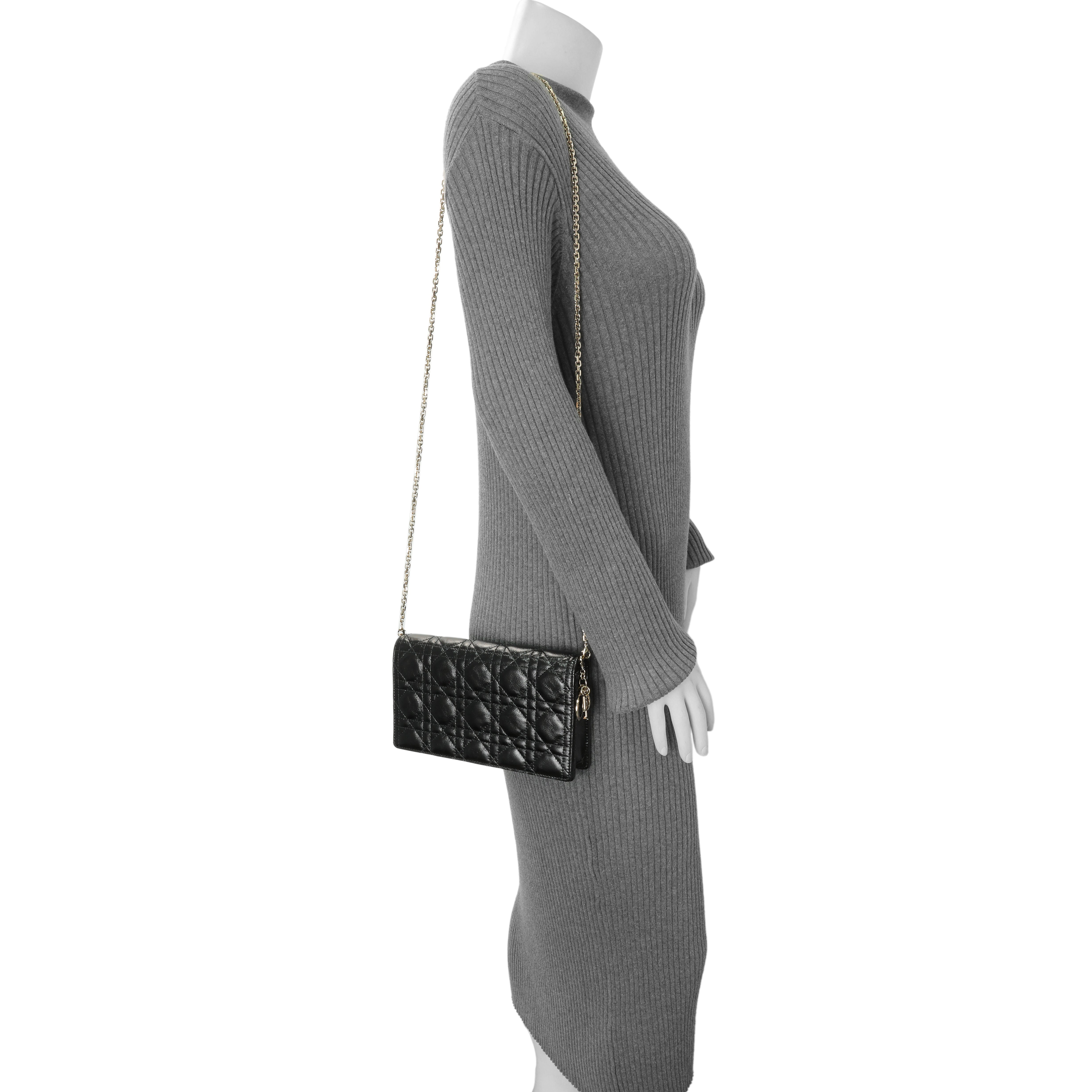 Christian Dior Black Crinkled Patent Cannage Lady Dior Pouch is backordered and will ship as soon as it is back in stock.