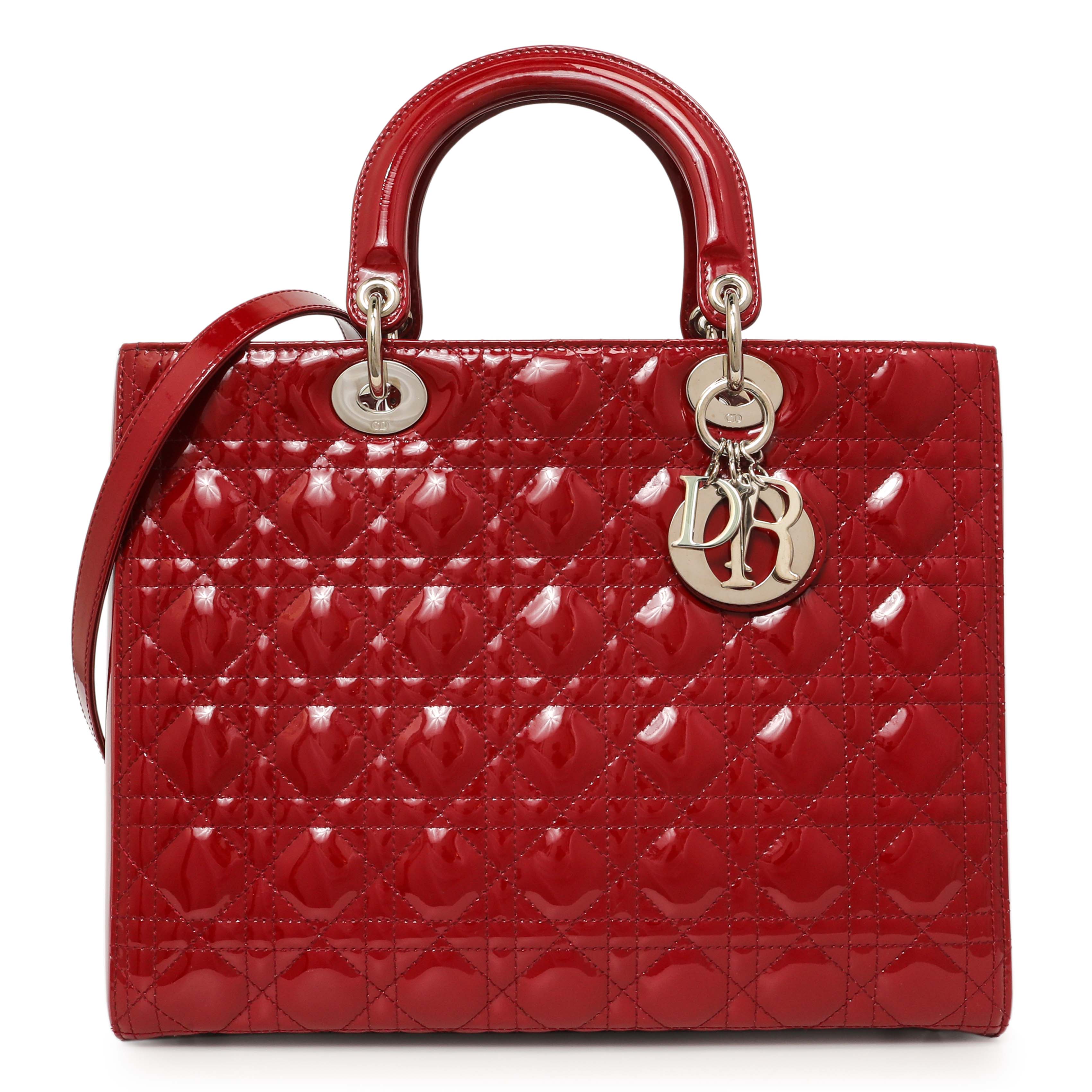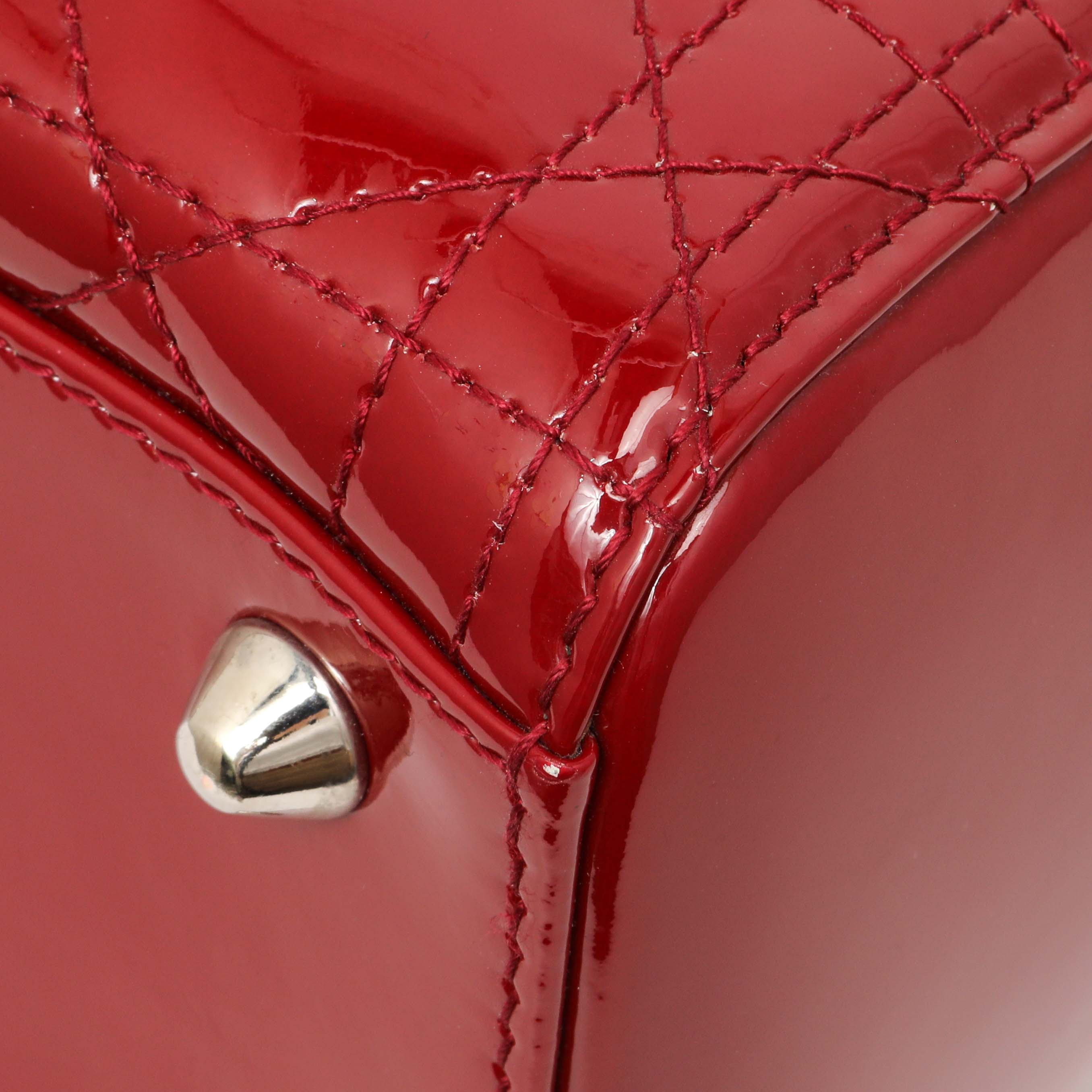 Christian Dior Red Patent Cannage Large Lady Dior