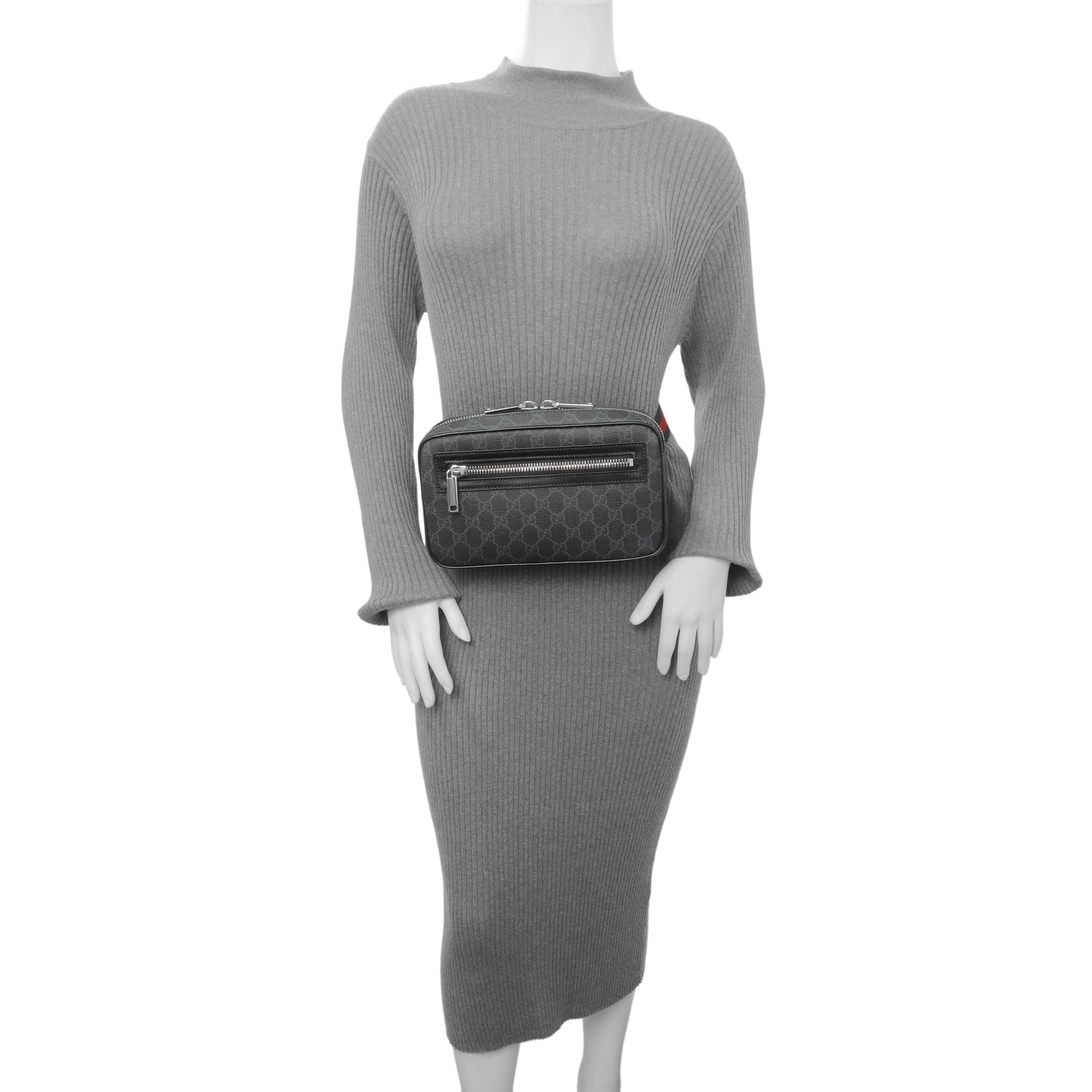 Gucci Black GG Supreme Monogram Belt Bag is backordered and will ship as soon as it is back in stock.