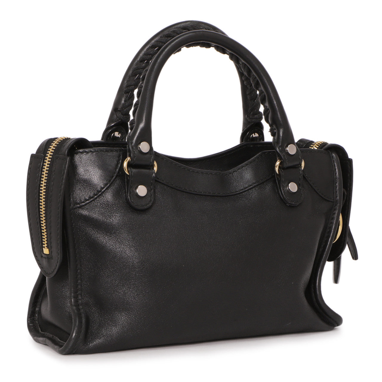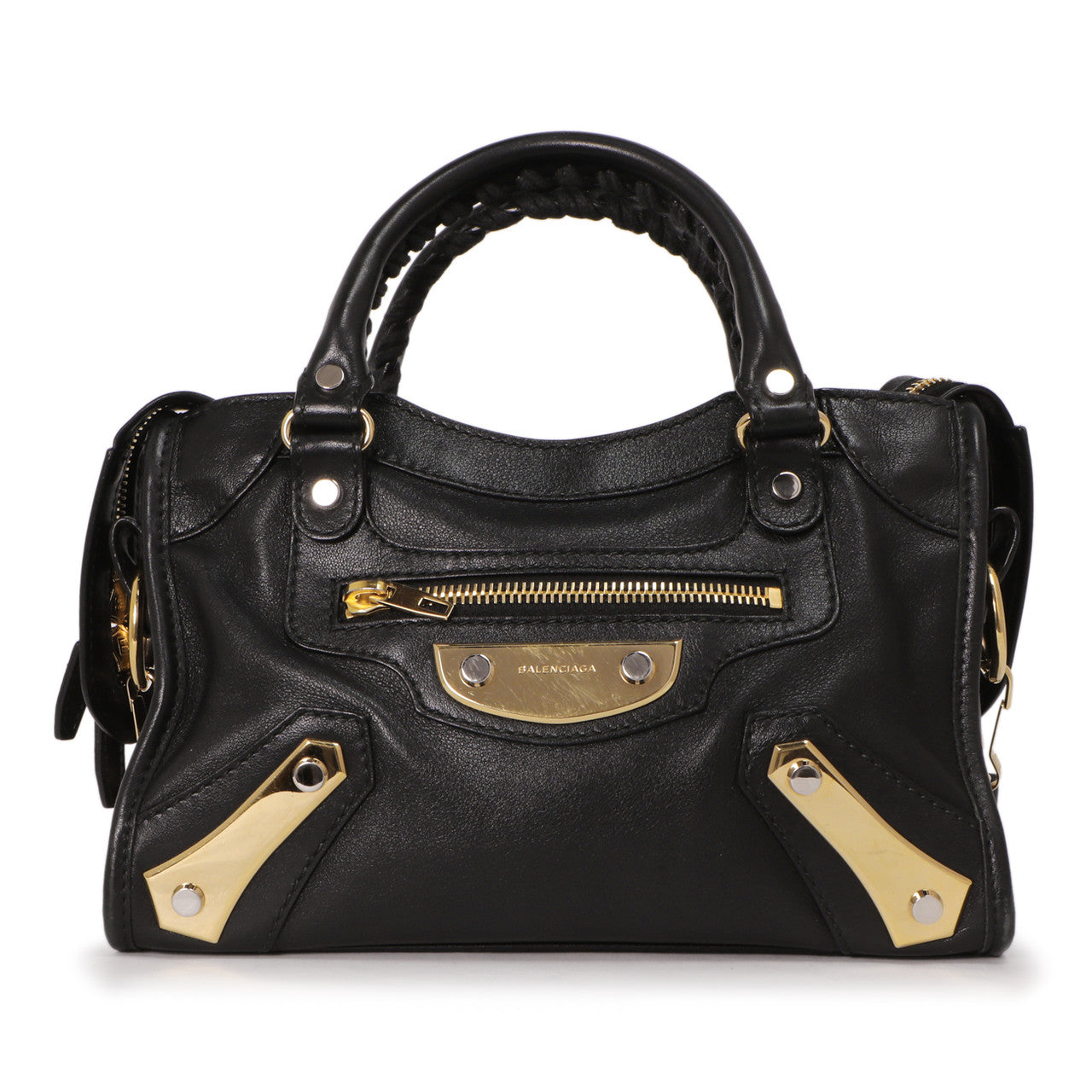 Balenciaga Black Calfskin Metal Plate Mini City