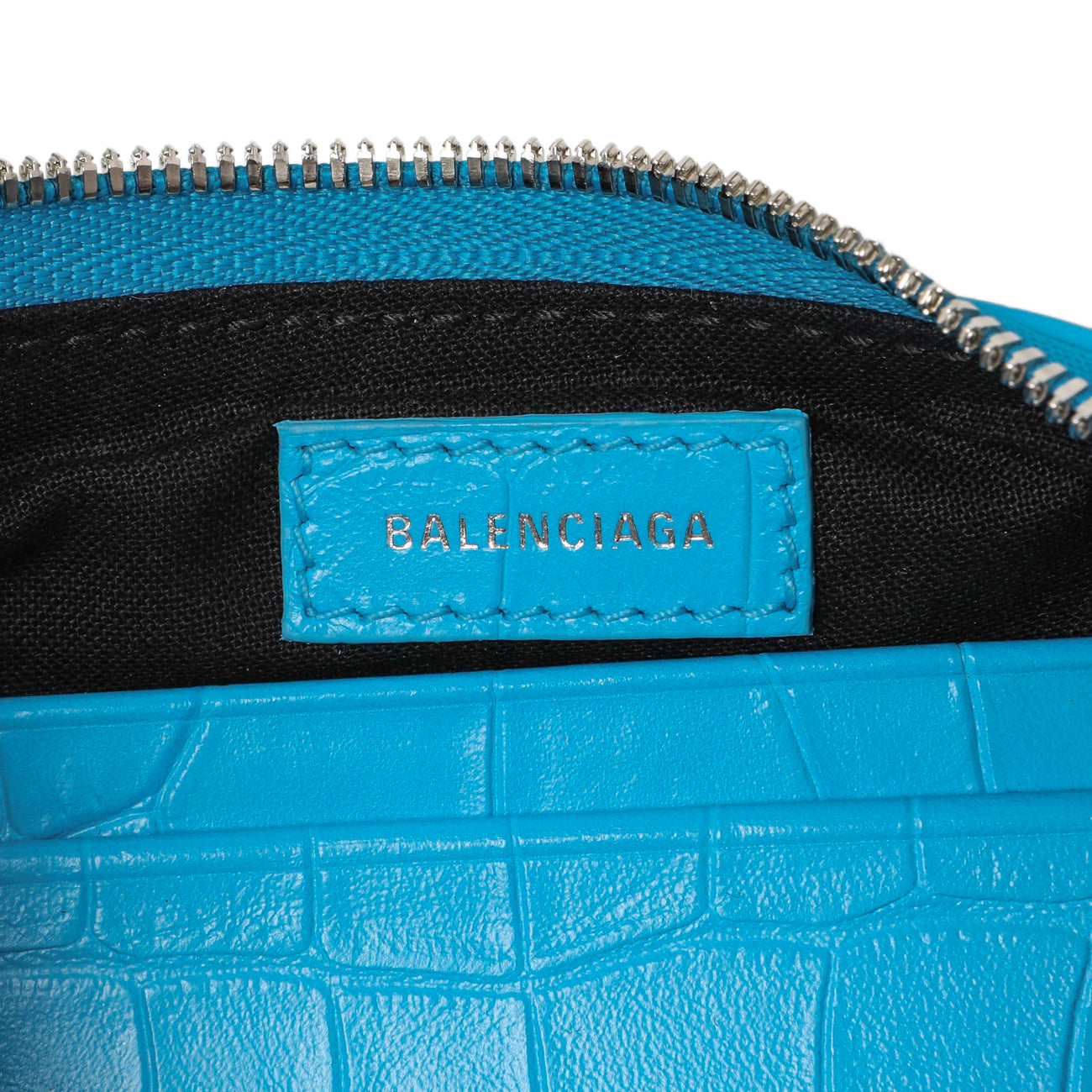 Balenciaga Blue Crocodile Embossed Calfskin Crystal Le Cagole Mini Purse With Chain