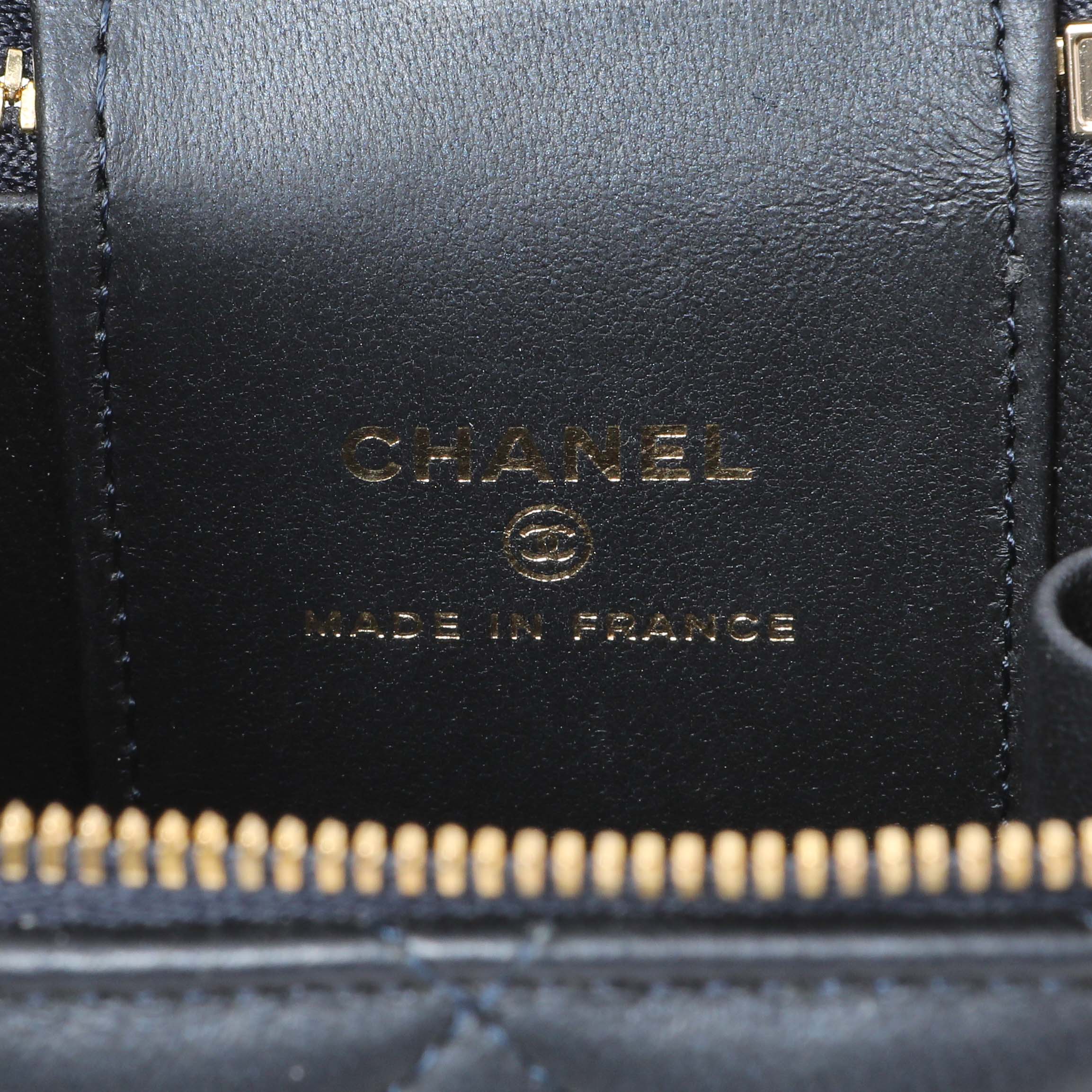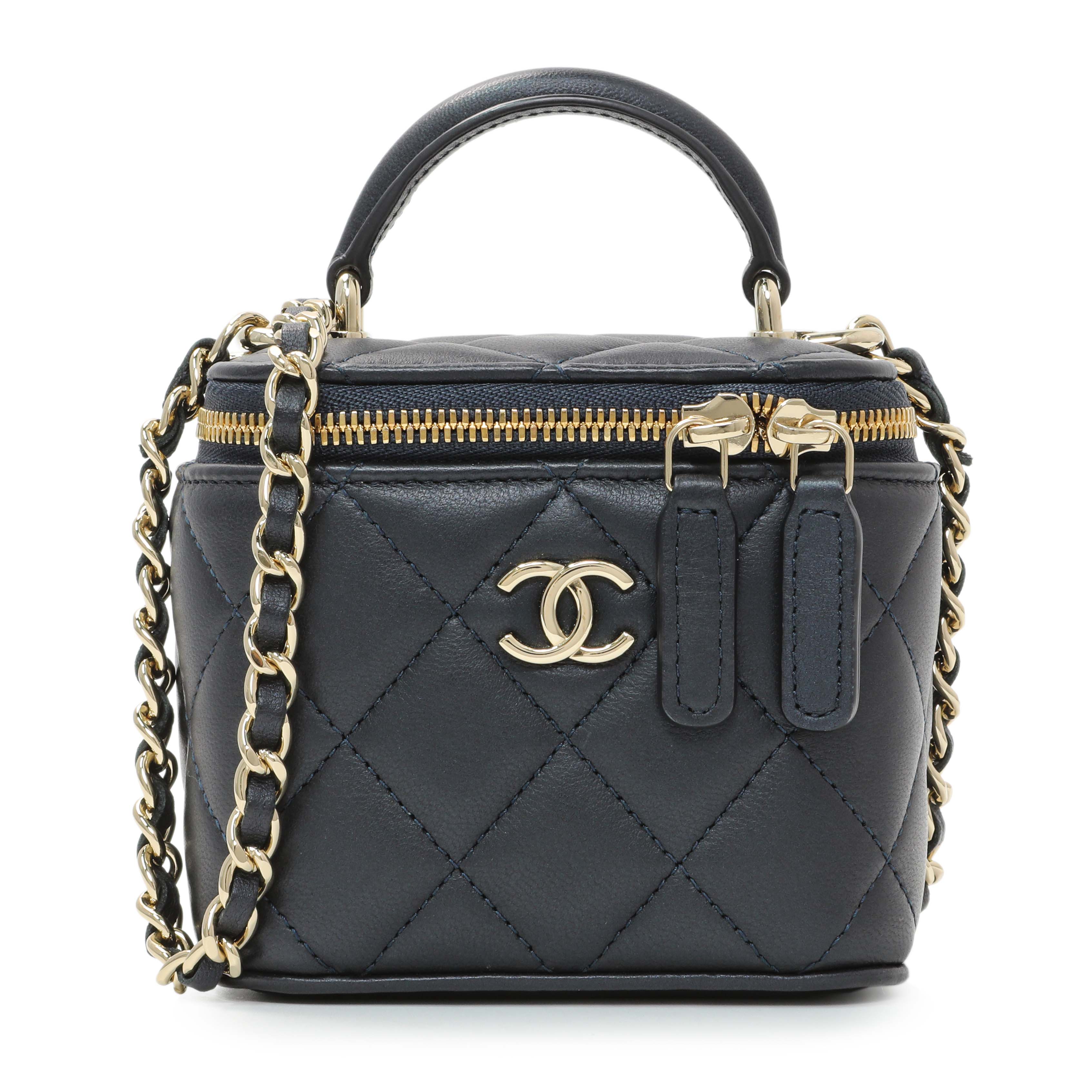 Chanel Navy Lambskin Mini Vanity Case With Chain