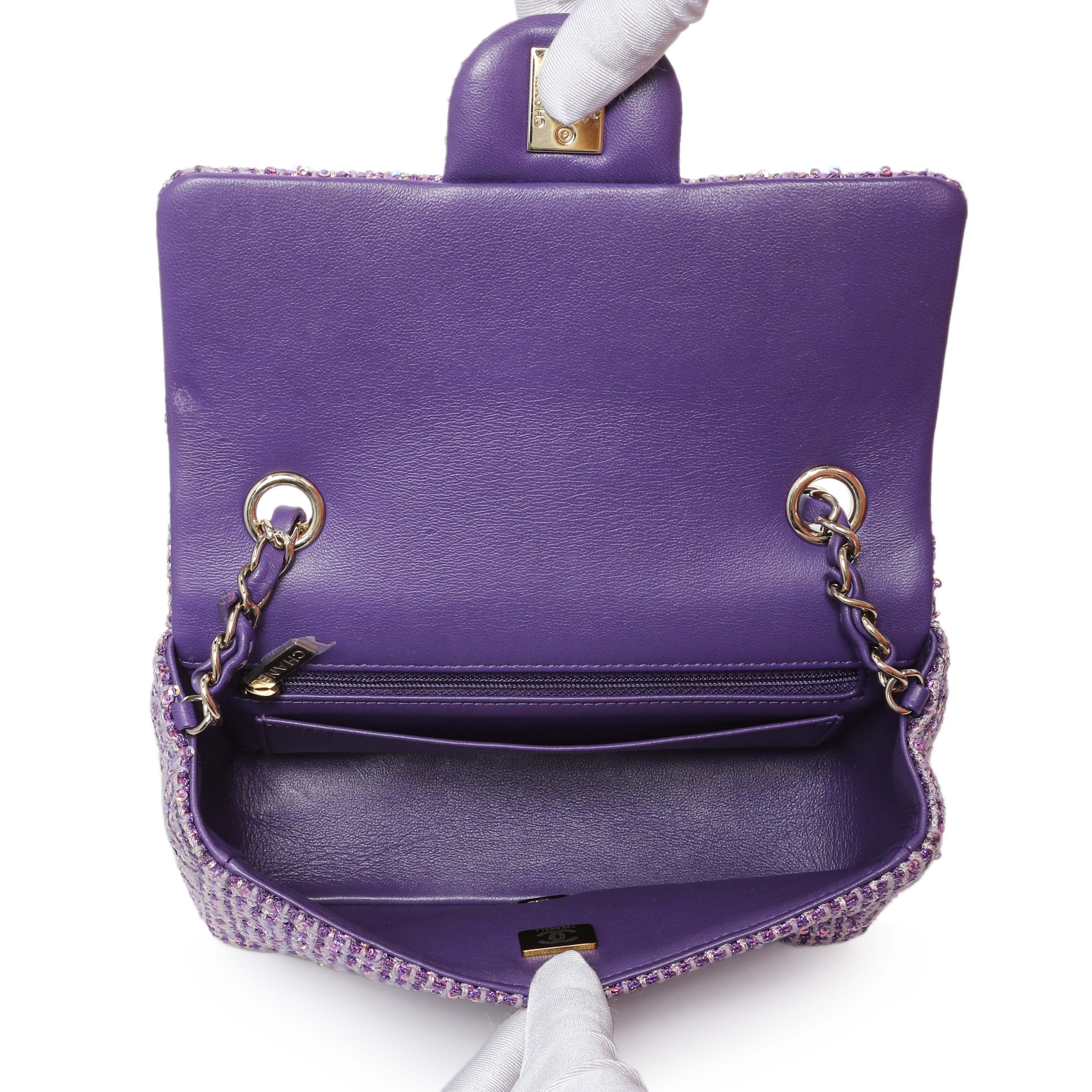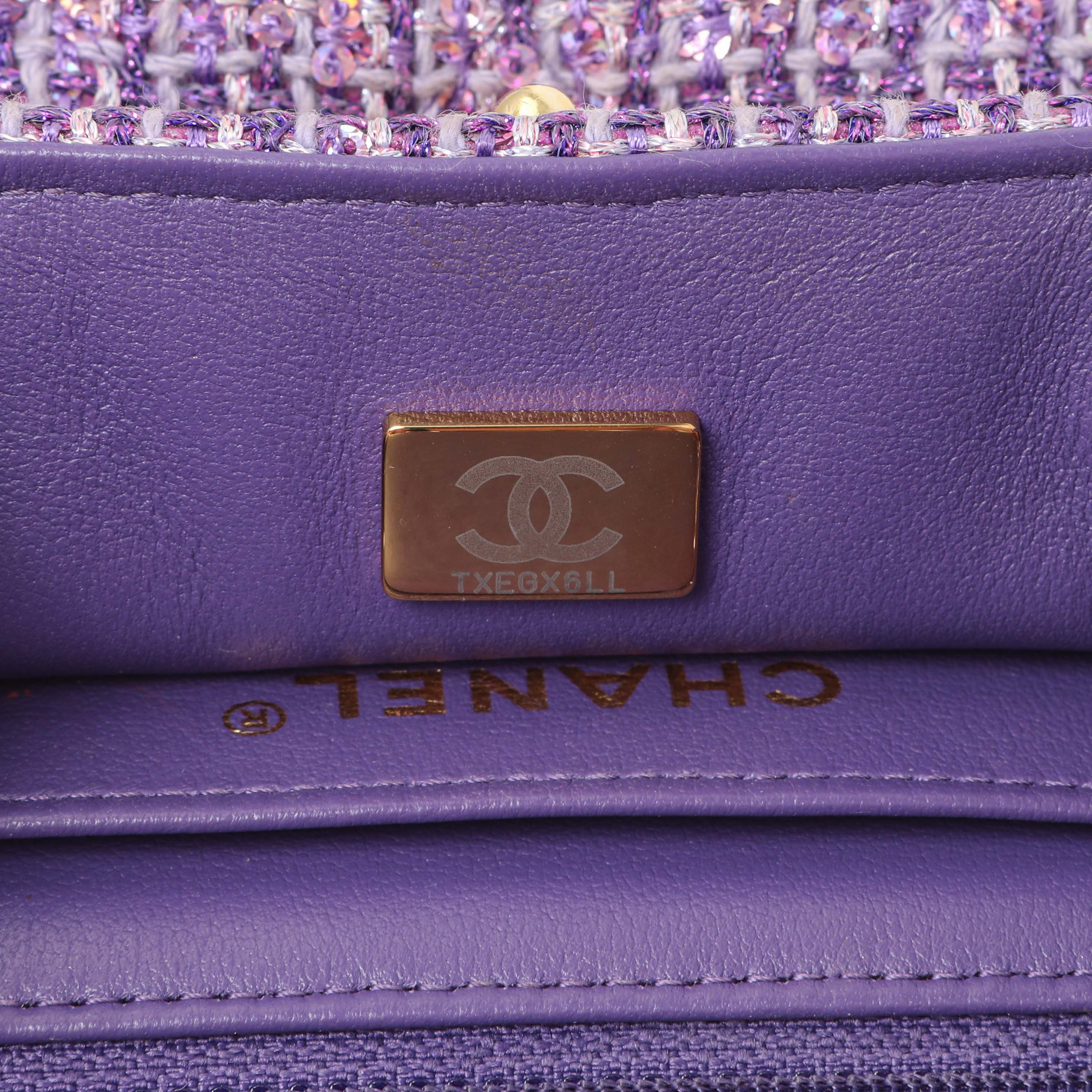 Chanel Purple Tweed Sequin Mini Rectangular Flap