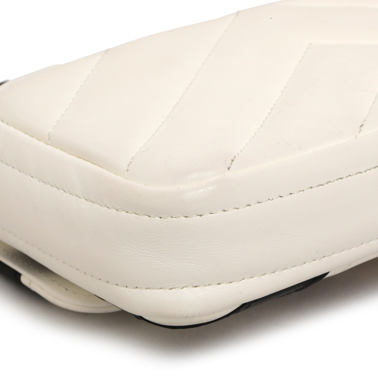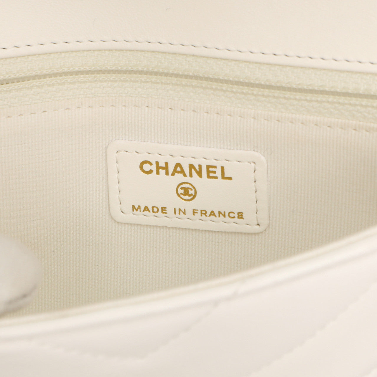 Chanel White Black Chevron Lambskin Stitched Mini Flap
