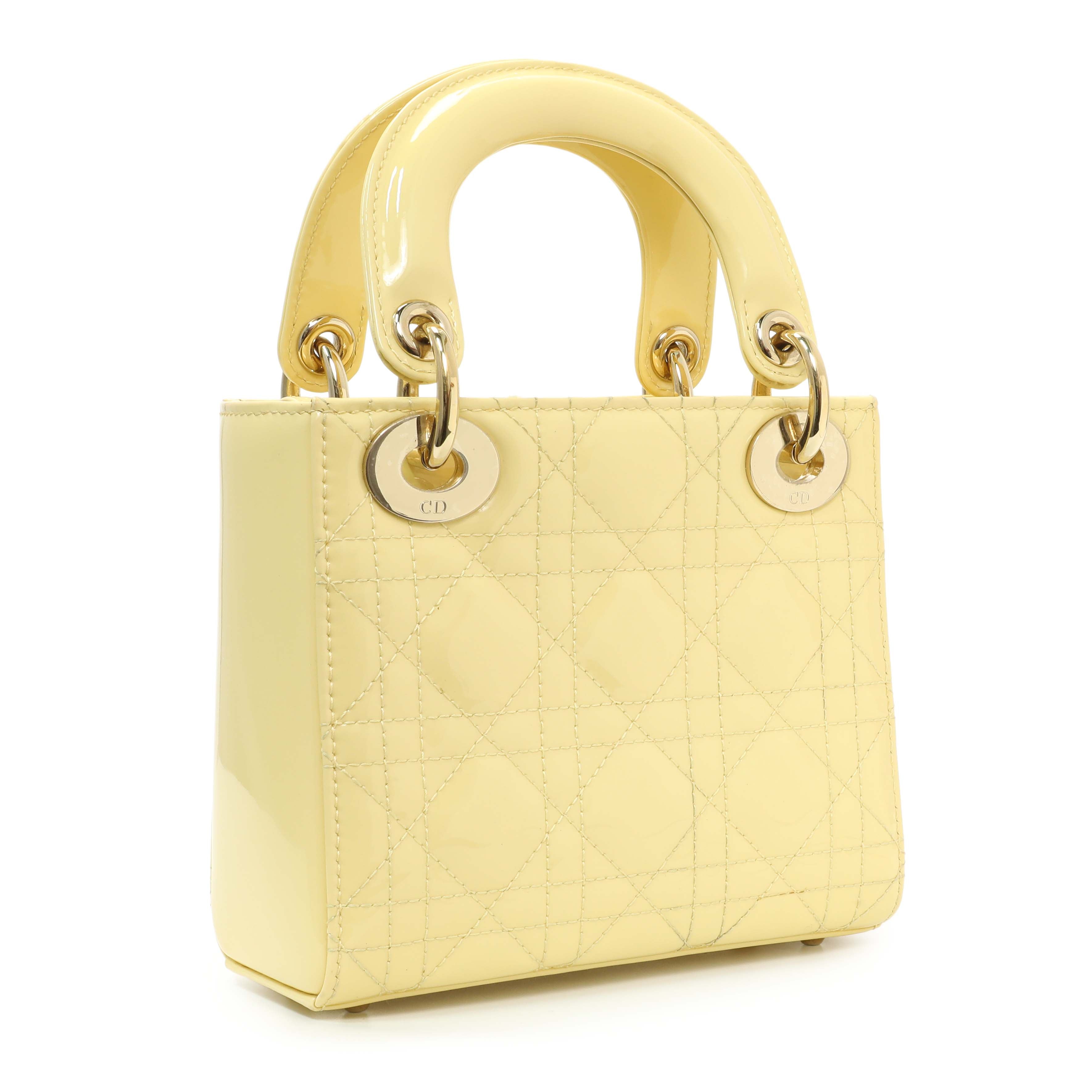 Christian Dior Yellow Patent Cannage Mini Lady Dior