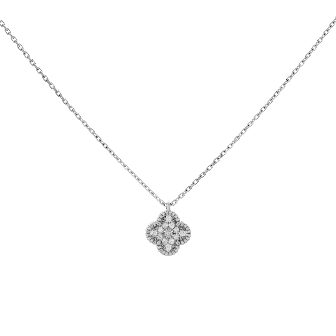 Van Cleef & Arpels 18K White Gold Diamond Sweet Alhambra Pendant Necklace