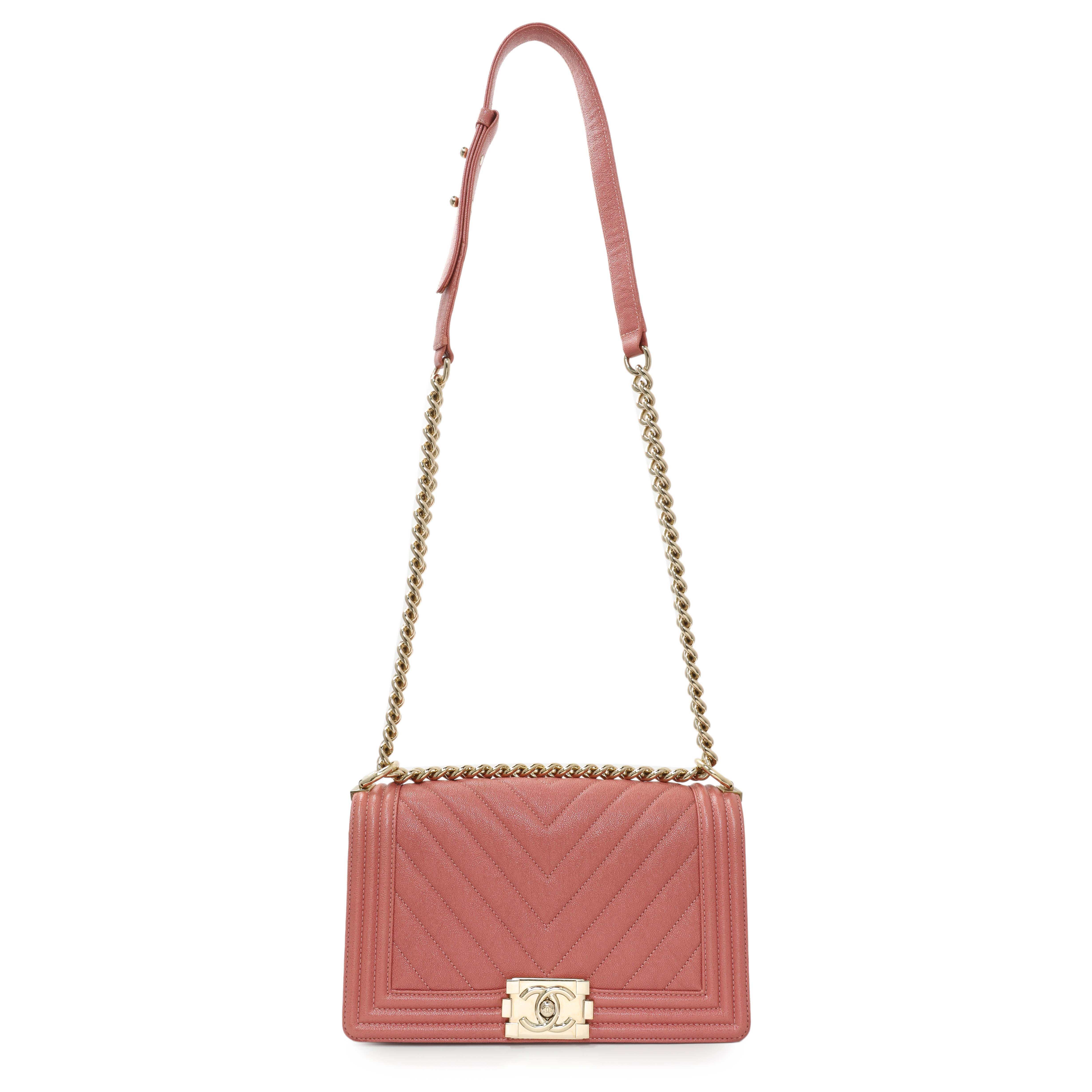 Chanel Blush Chevron Quilted Caviar New Medium Boy Flap