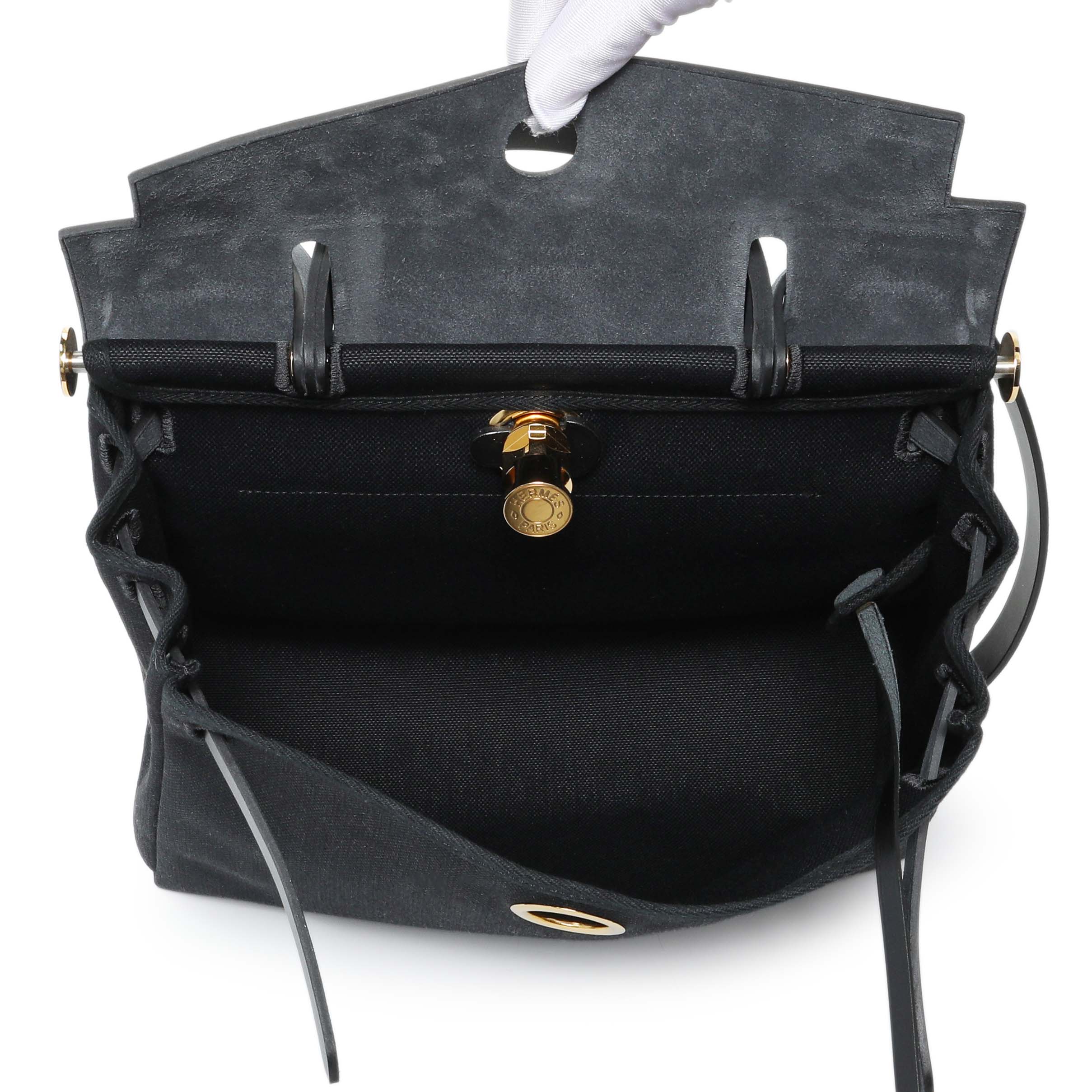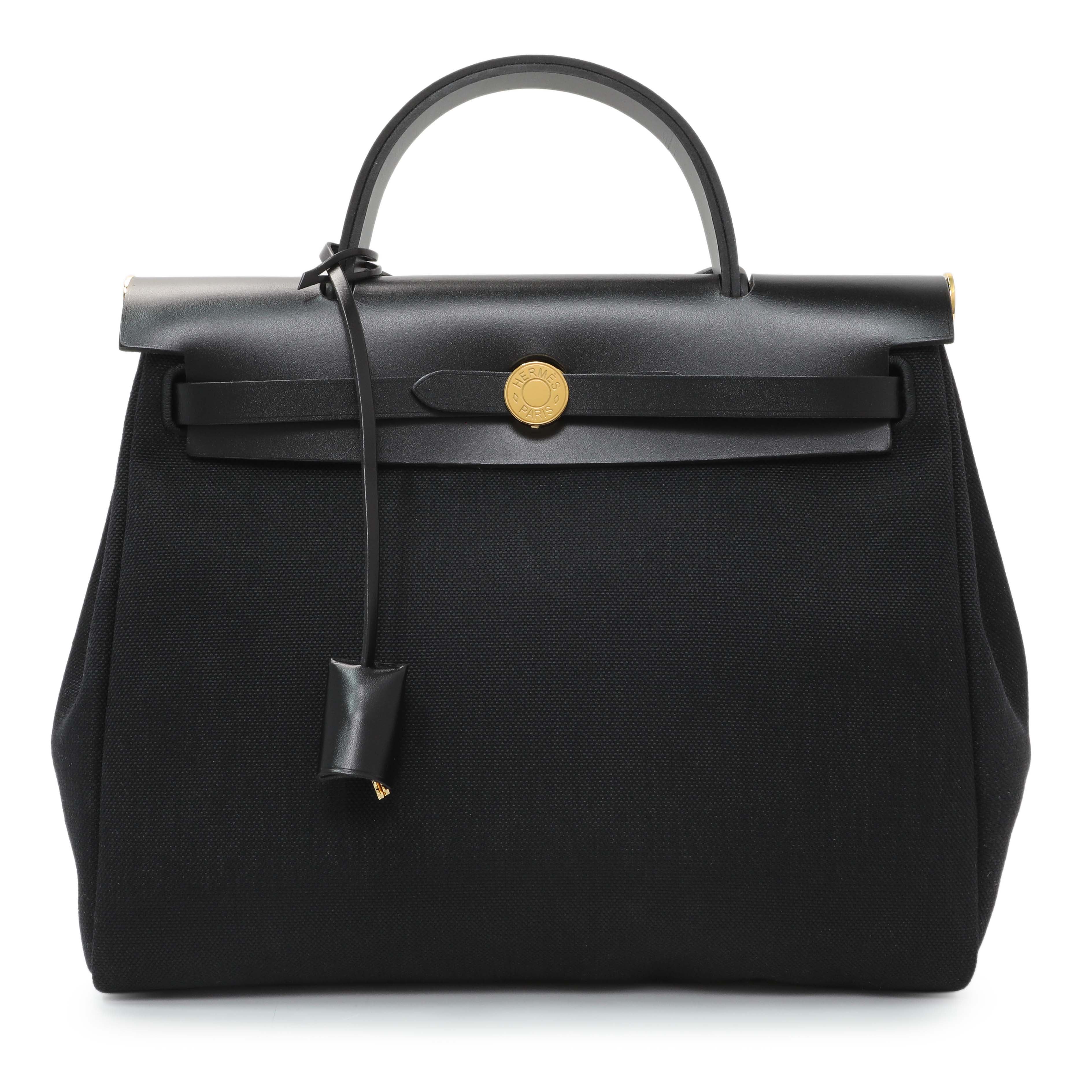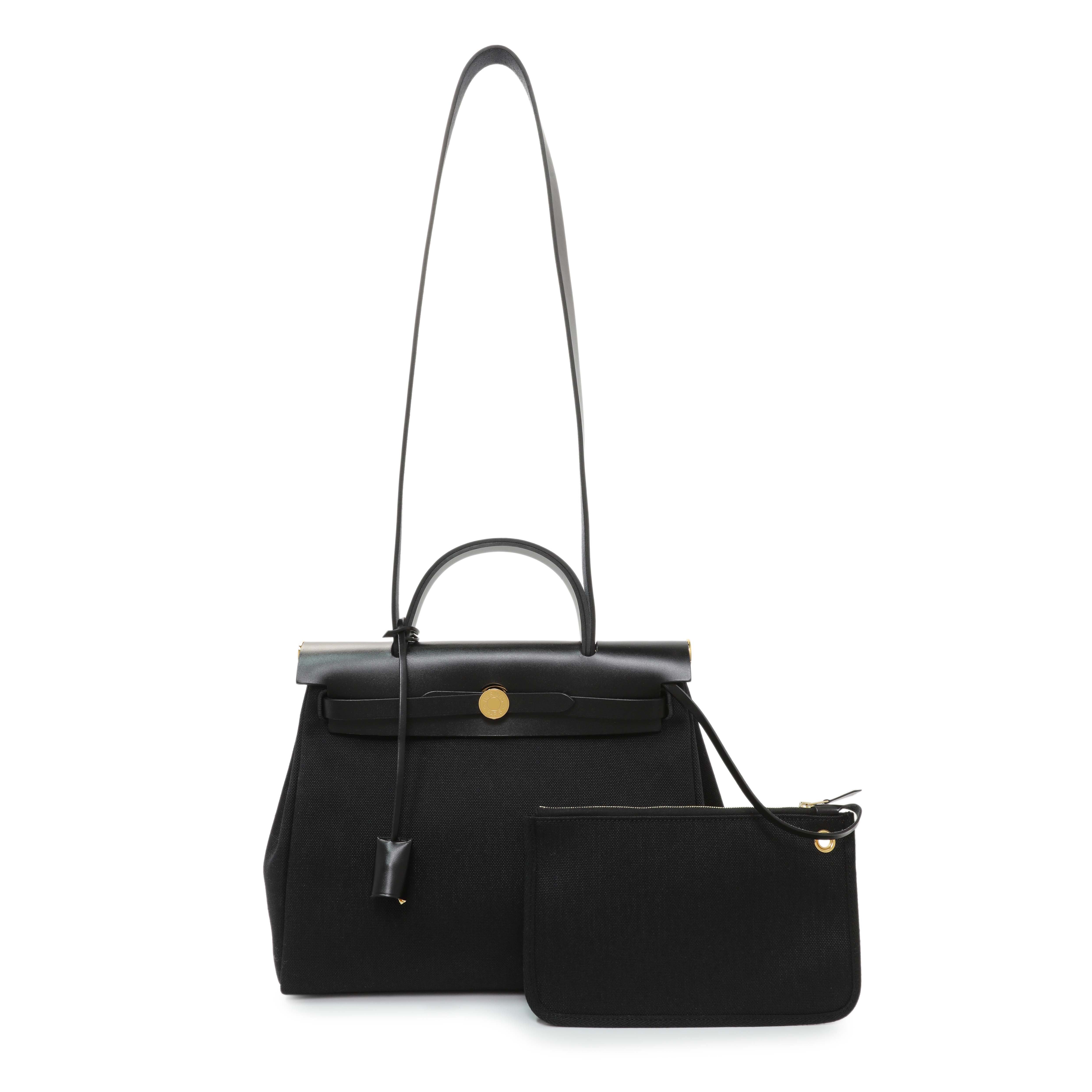 Hermes Black Military Toile Vache Hunter Herbag Zip Retourne 31 PM