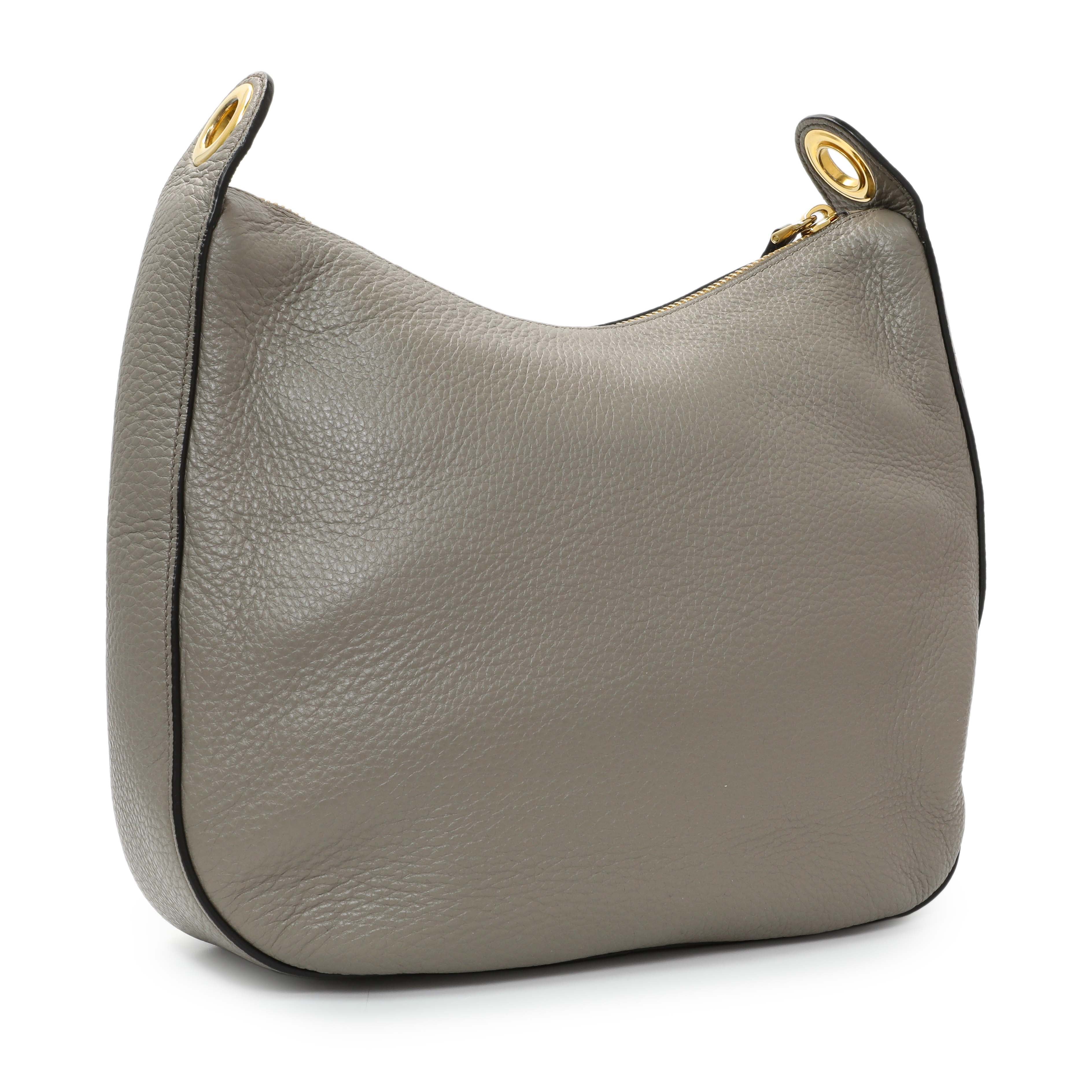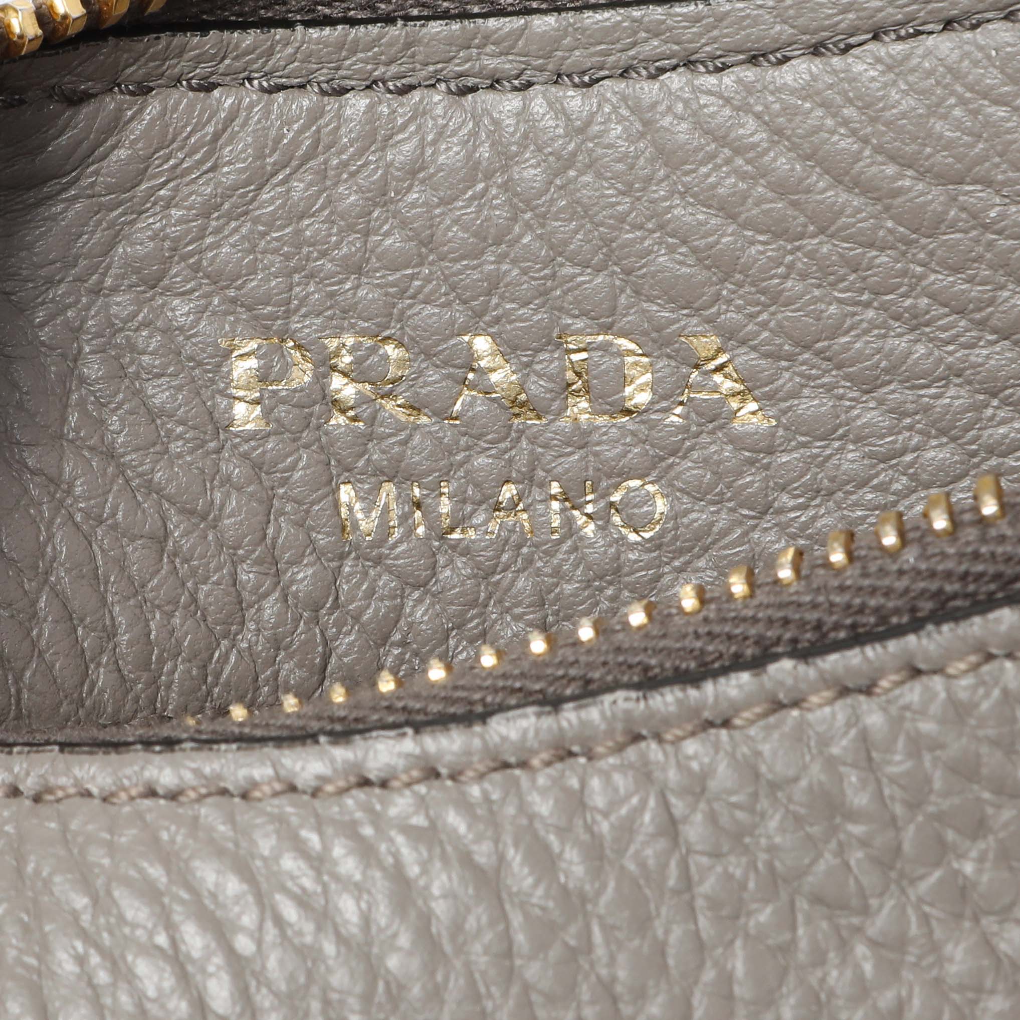 Prada Grey Vitello Phenix Zippered Messenger Hobo