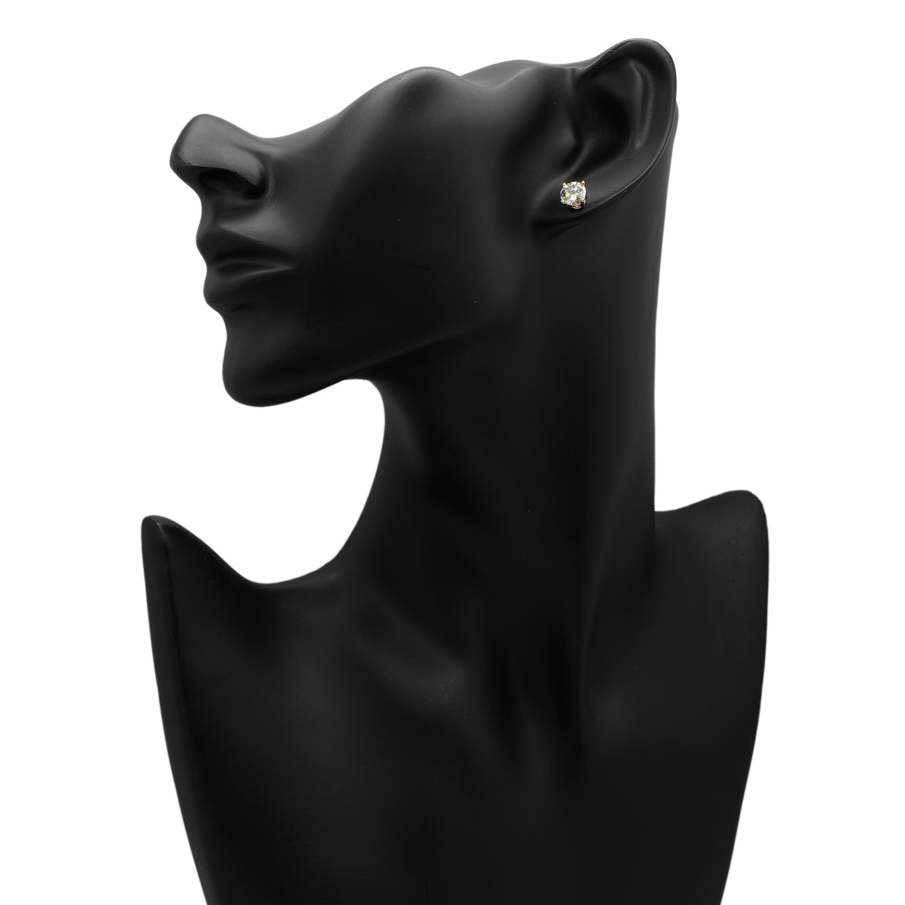 One pair of round brilliant cut diamonds each secured in a 14 karat yellow gold four claw pierced earring setting with french post and butterfly backing. The diamonds are described as follows.
