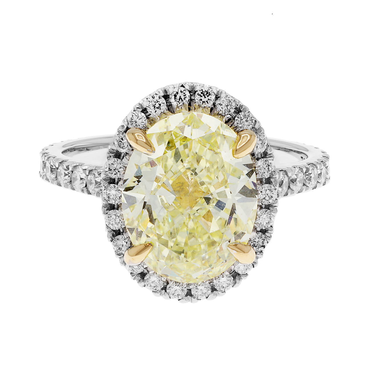 18K White Gold 3.26 Carat Oval Fancy Yellow Diamond Halo Ring