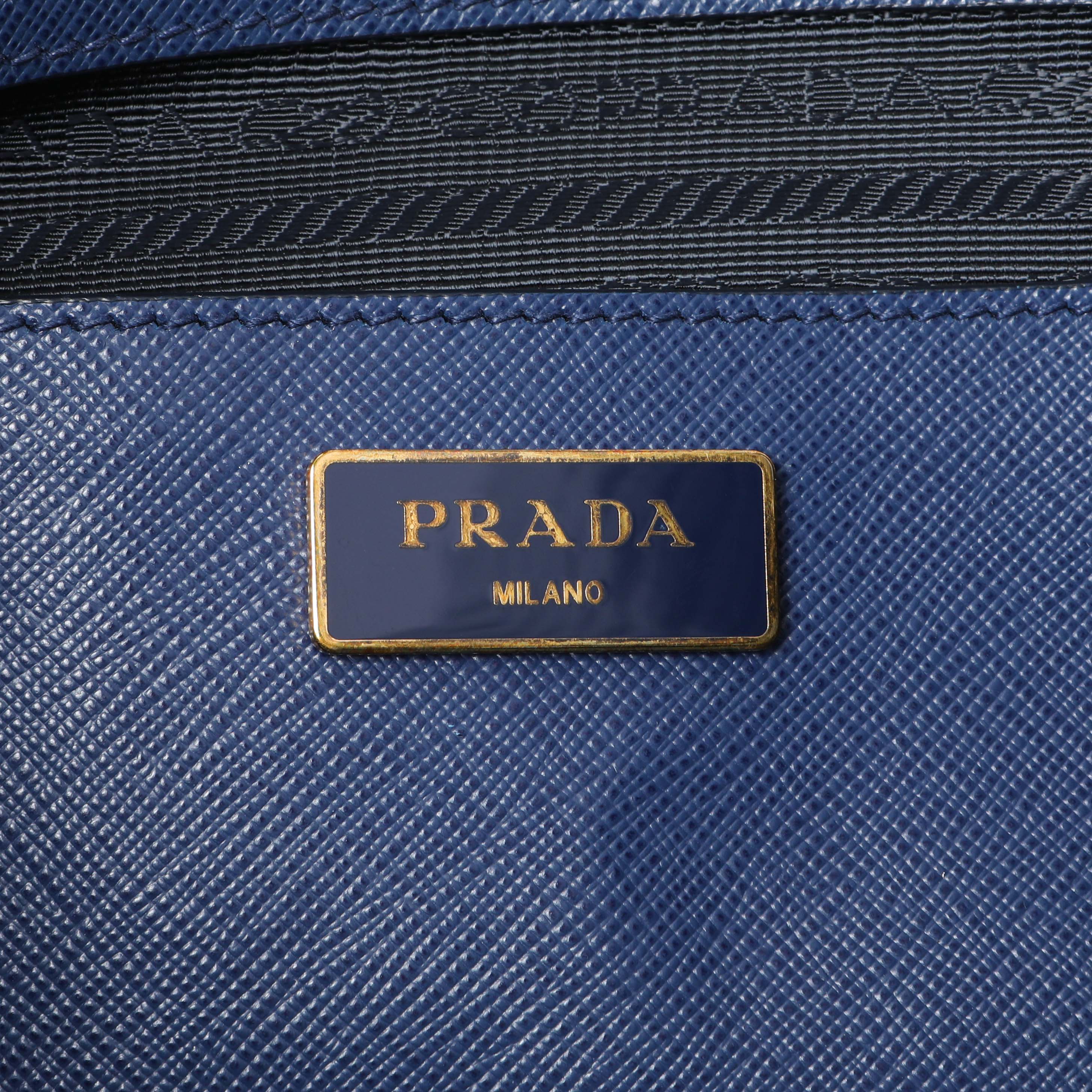 Prada Blue Saffiano Medium Galleria Double Zip Tote