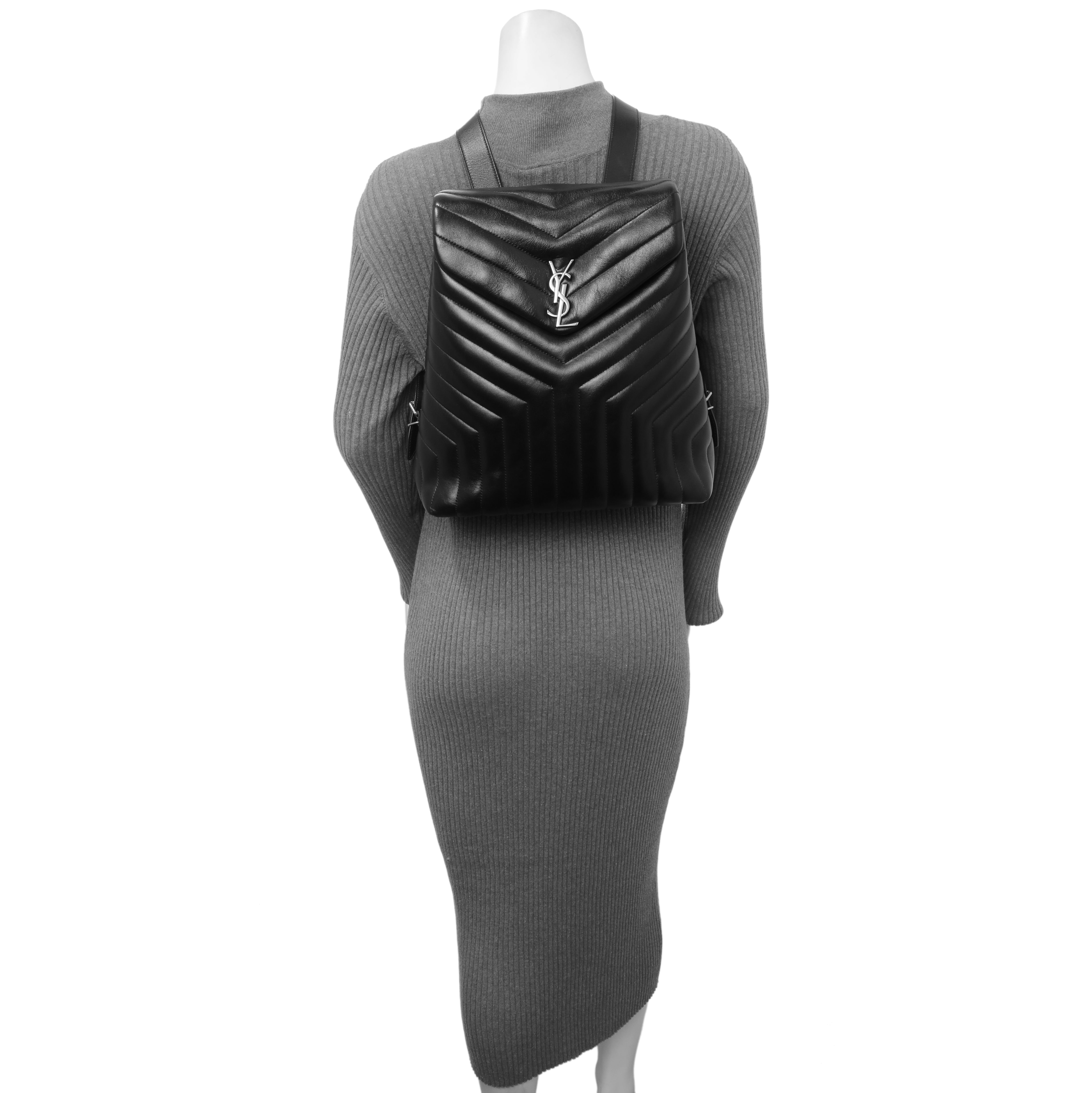Saint Laurent Black Calfskin Y Quilted Monogram Medium Loulou Backpack