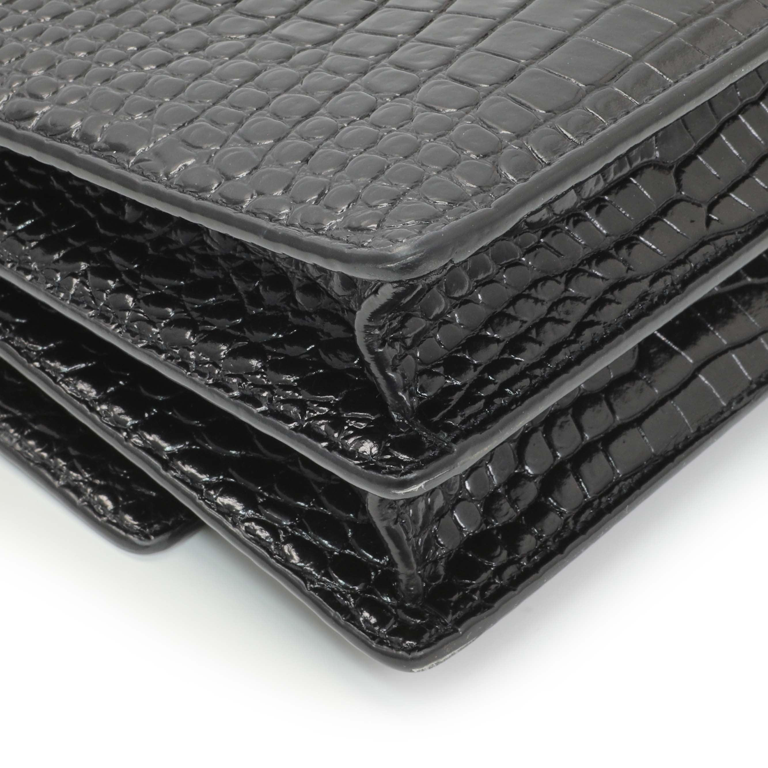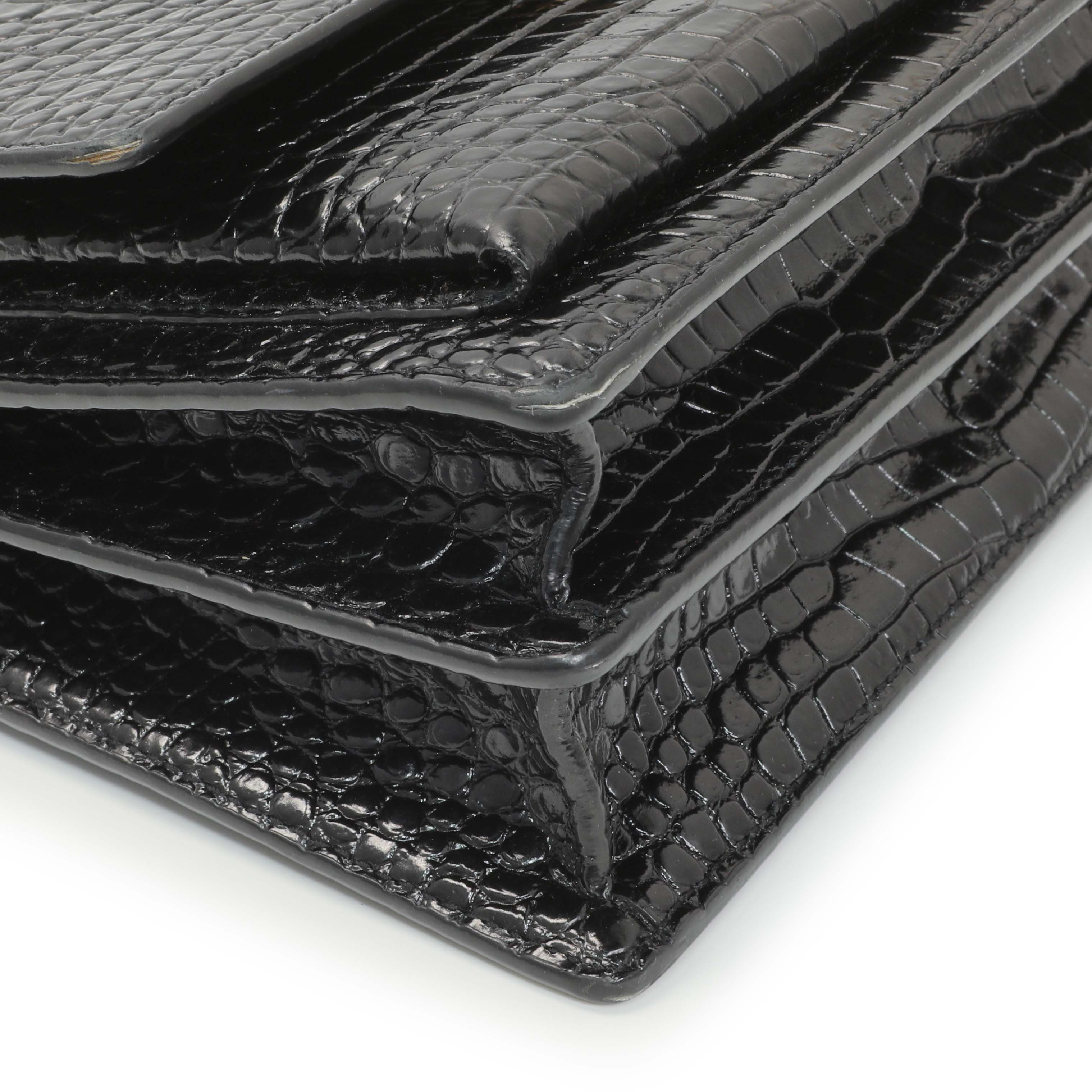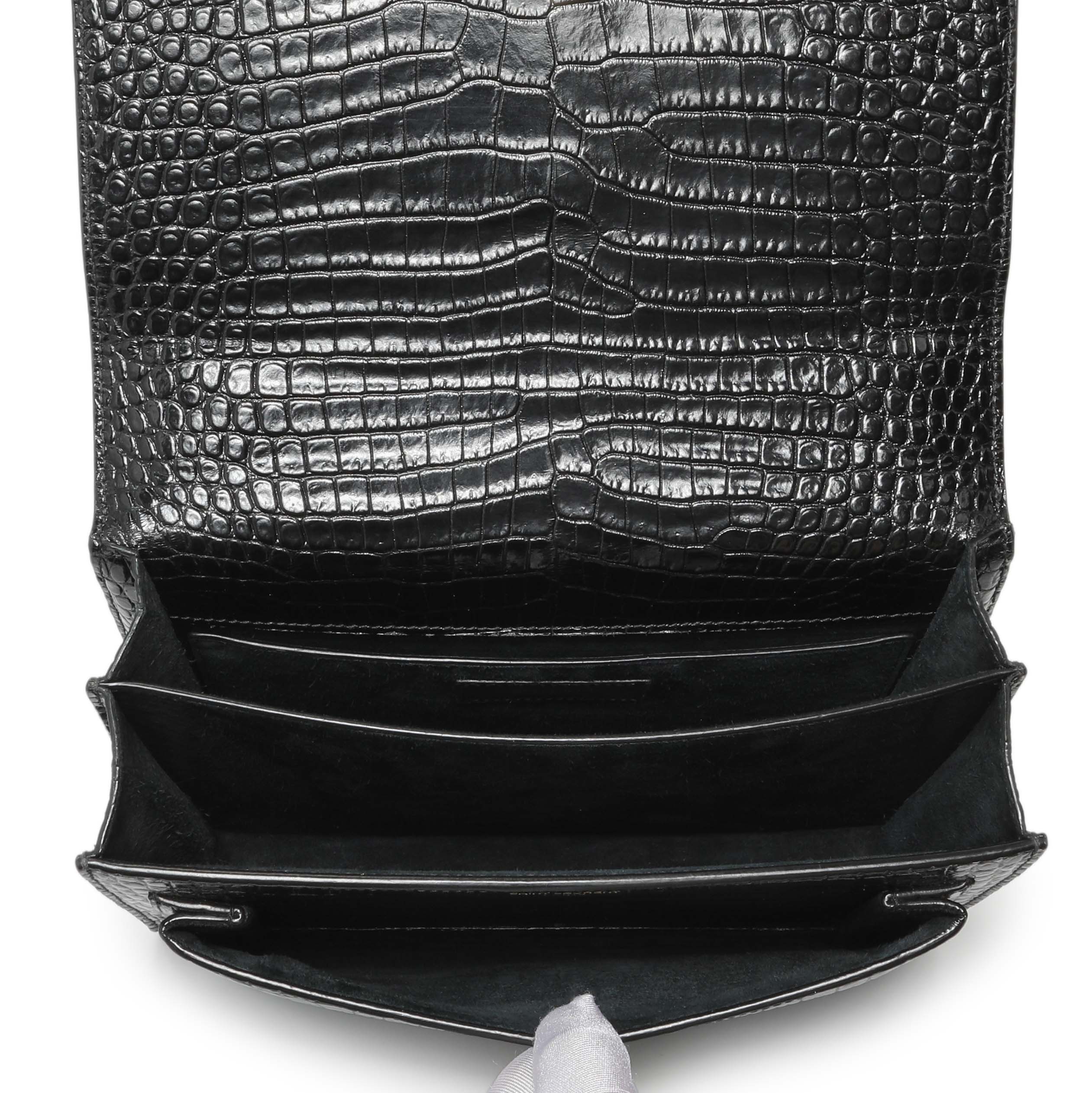Saint Laurent Black Crocodile Embossed Calfskin Medium Monogram Sunset