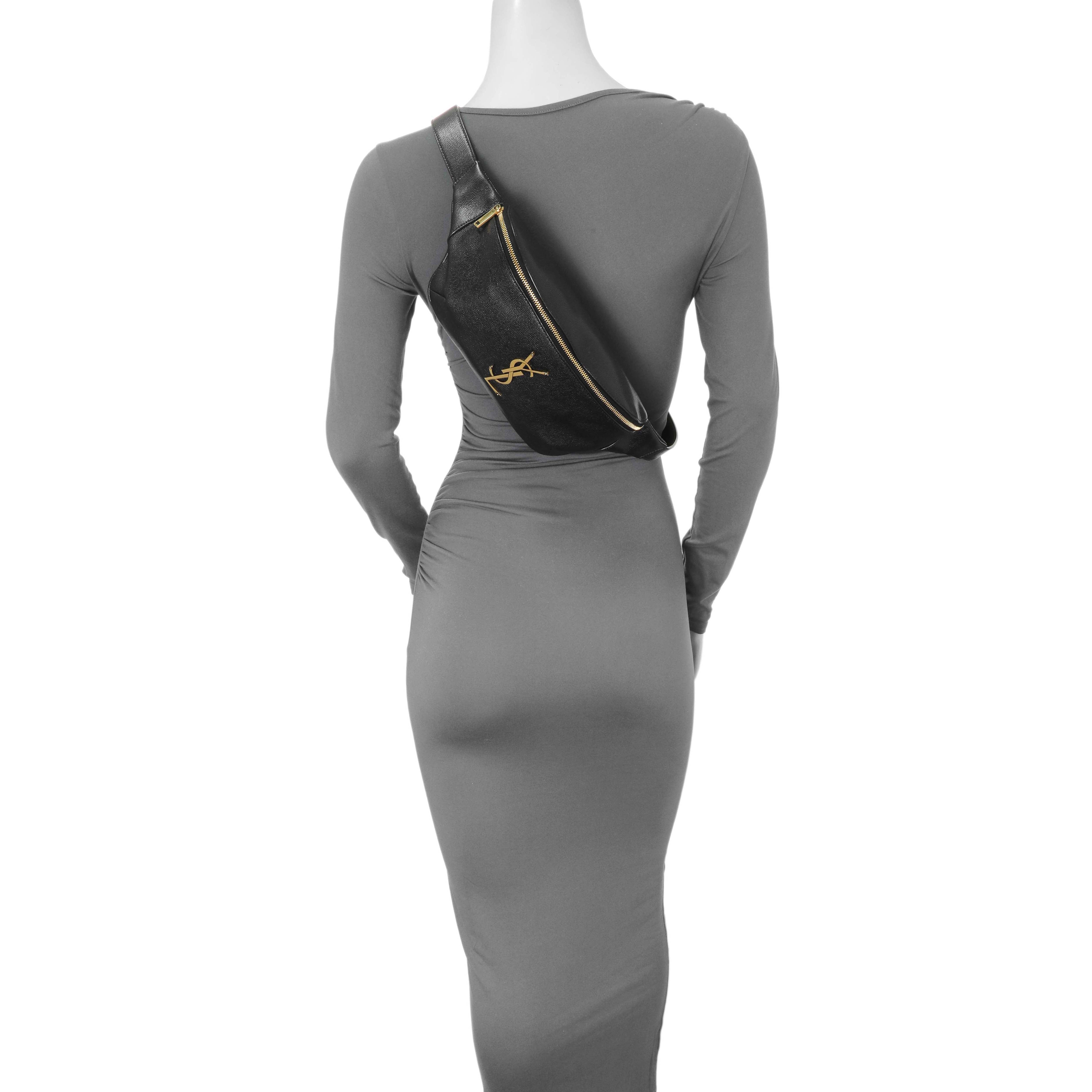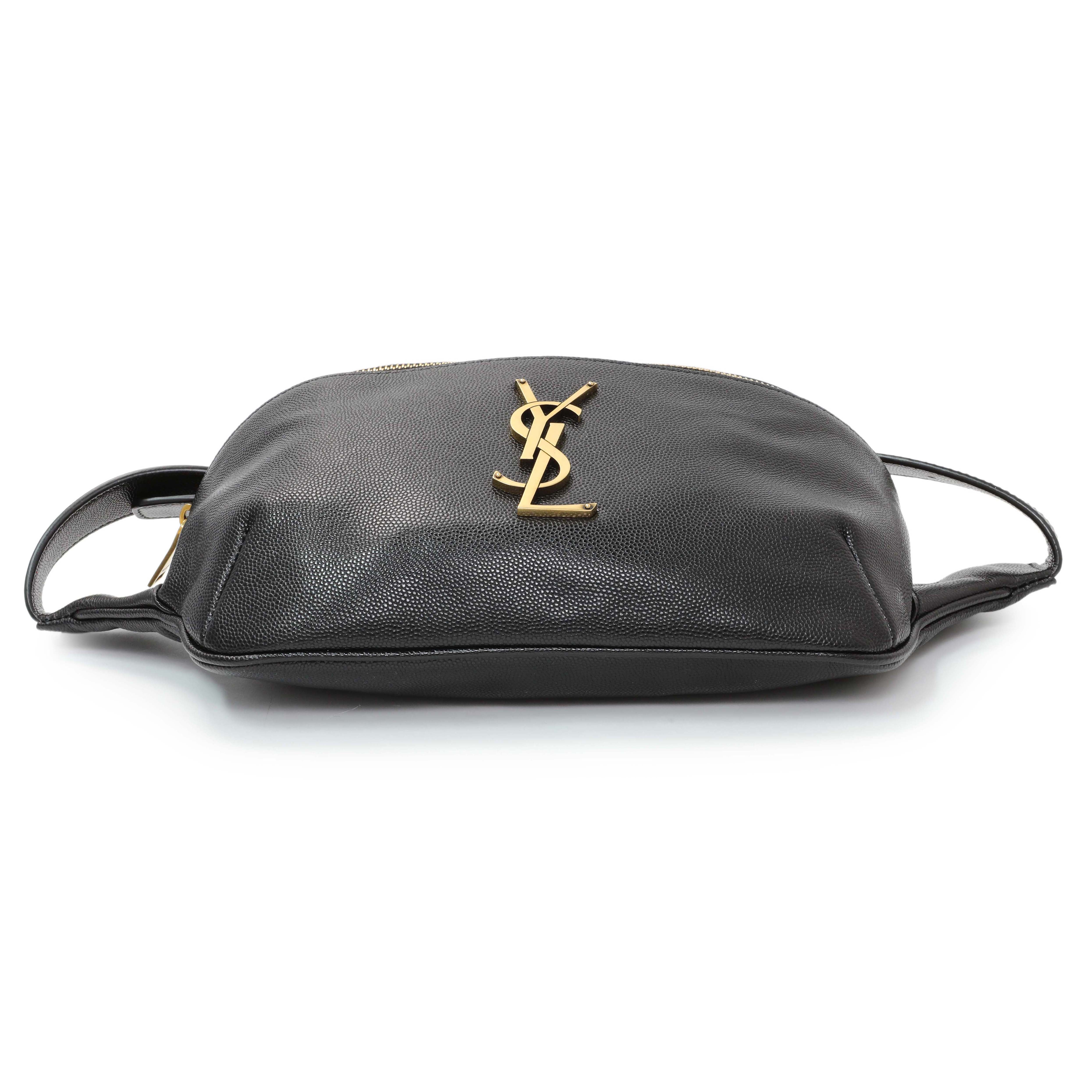 Saint Laurent Black Grain De Poudre Monogram Belt Bag