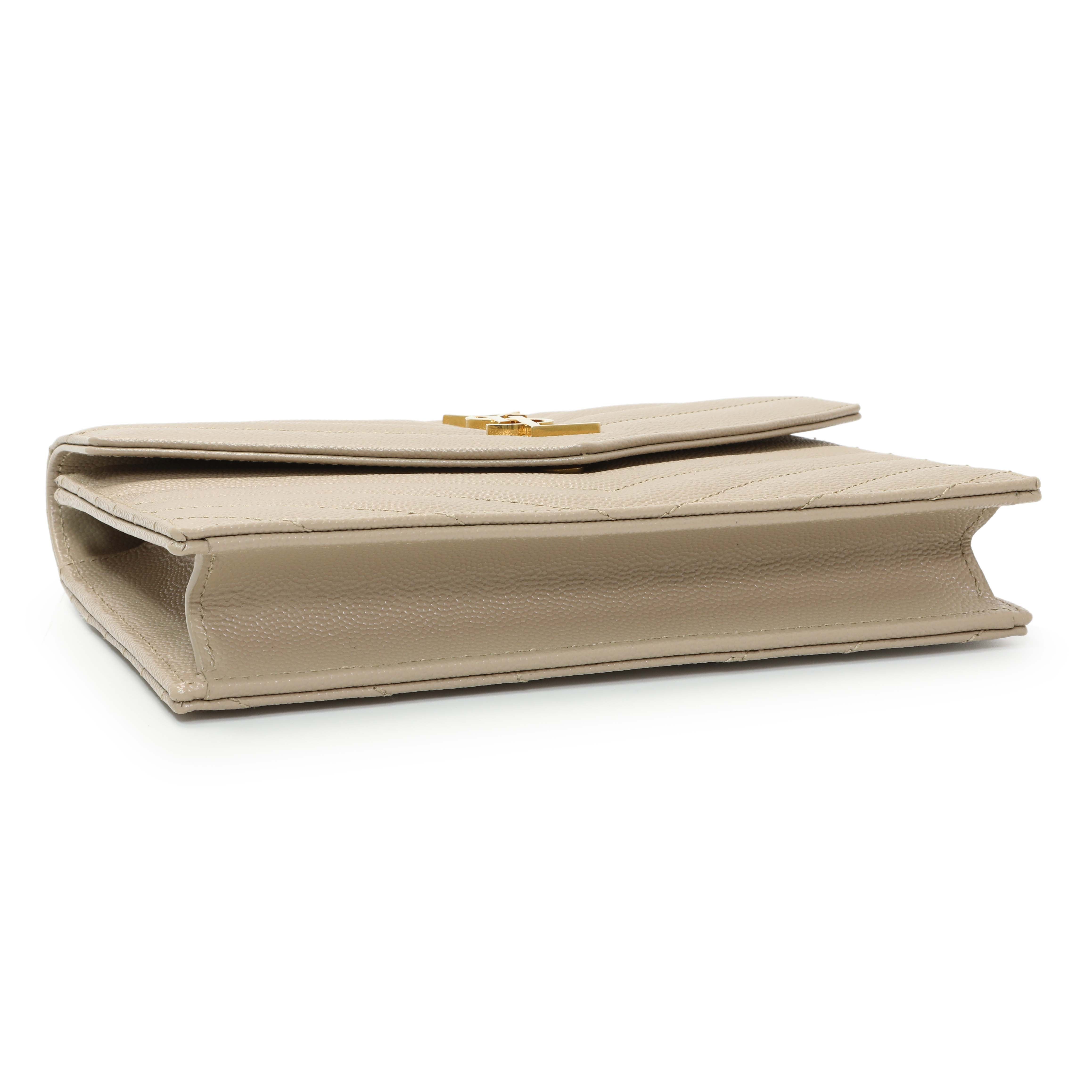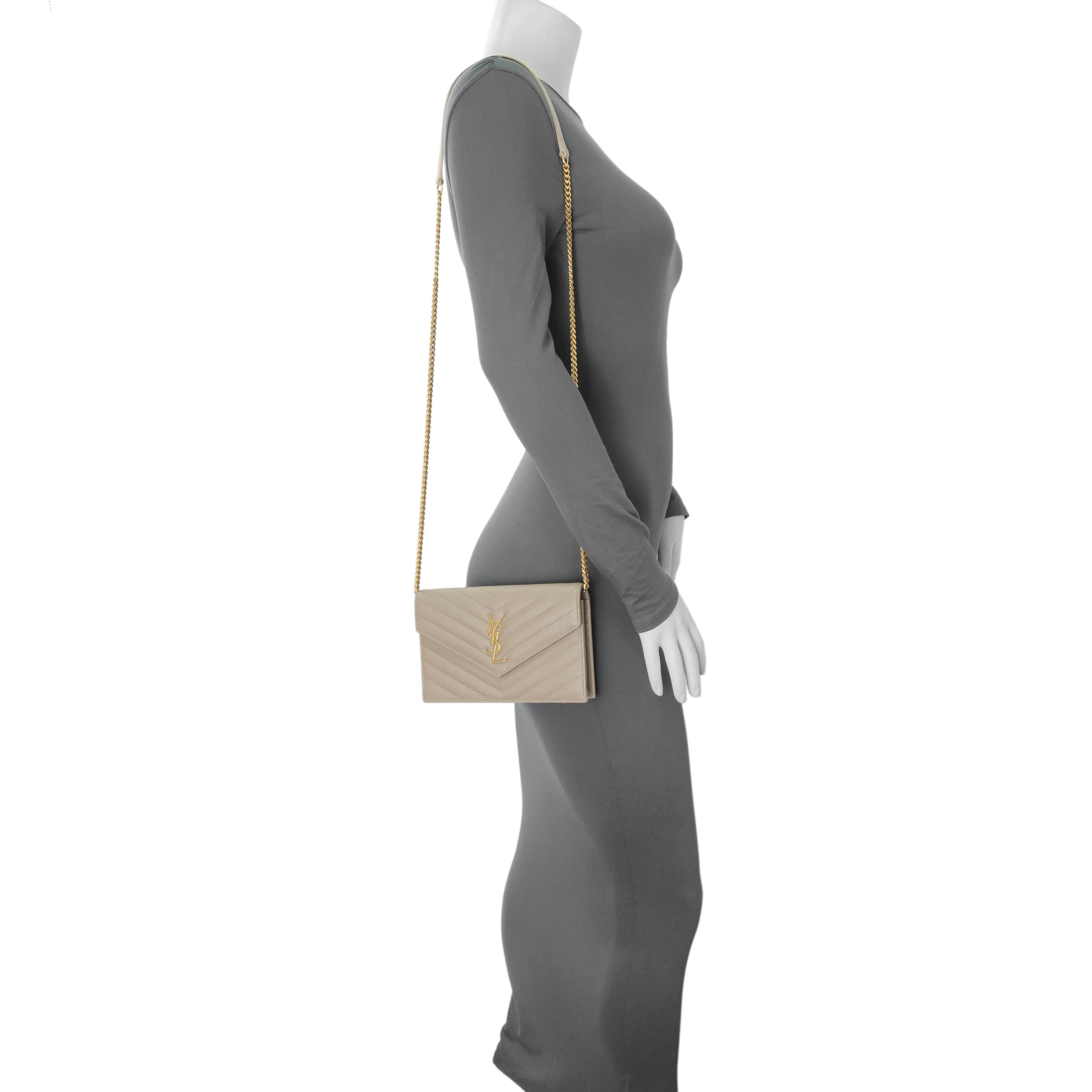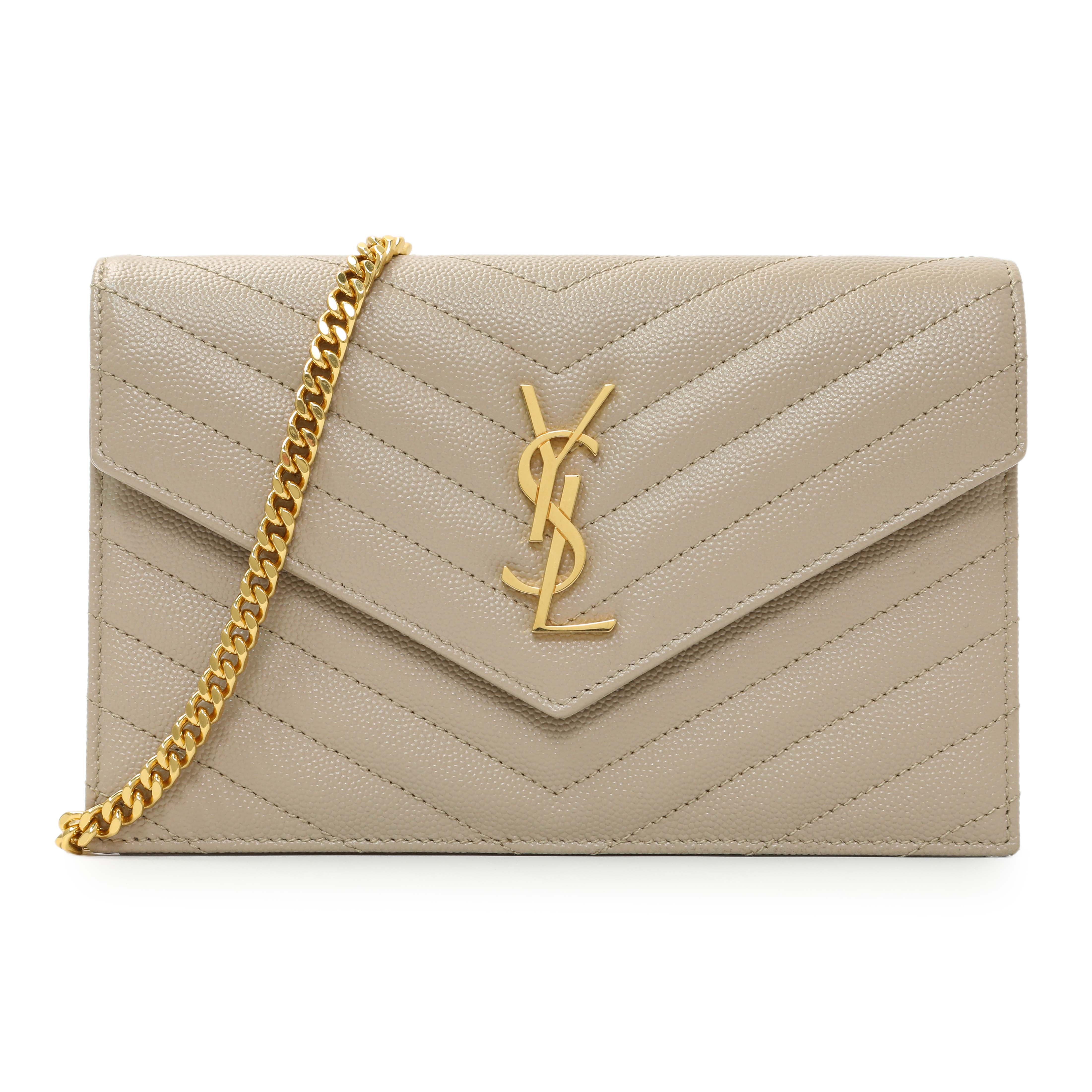 Saint Laurent Dark Beige Grain De Poudre Matelasse Chevron Monogram Envelope Chain Wallet