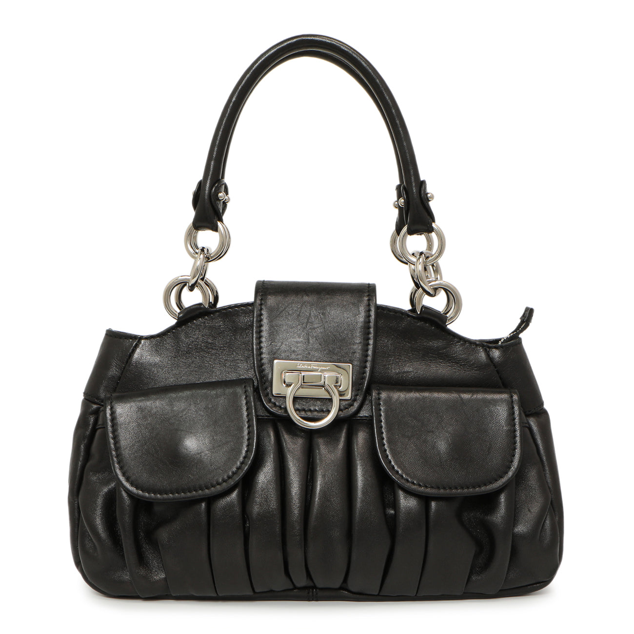 Salvatore Ferragamo Black Calfskin Gancini Bag