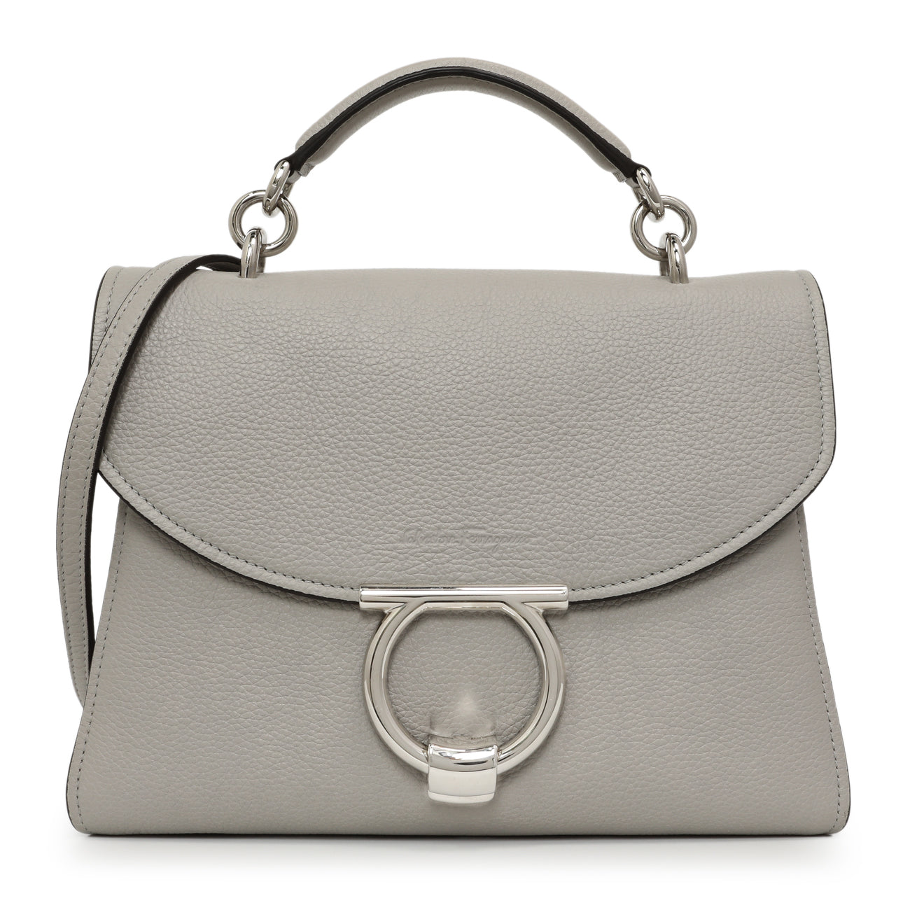 Salvatore Ferragamo Grey Calfskin Small Margot Top Handle