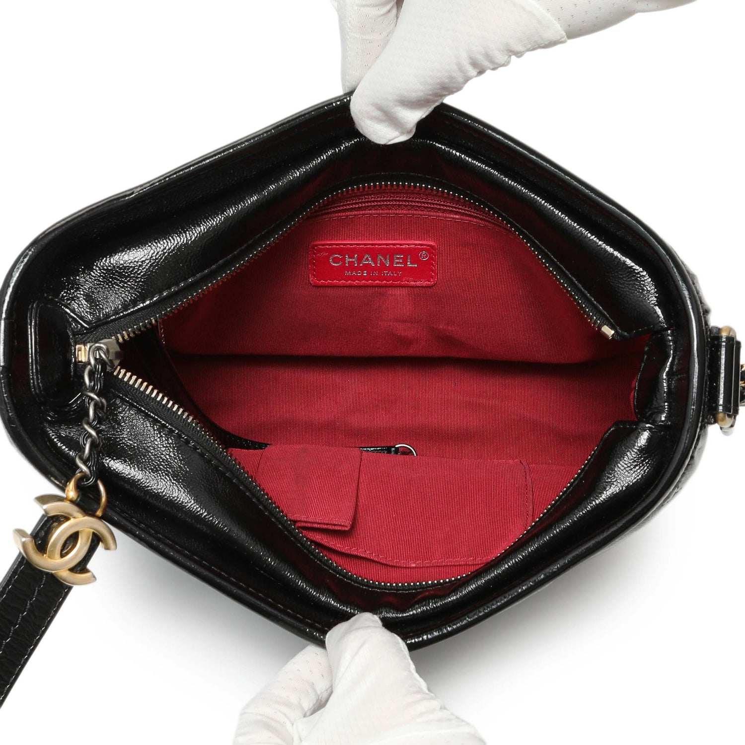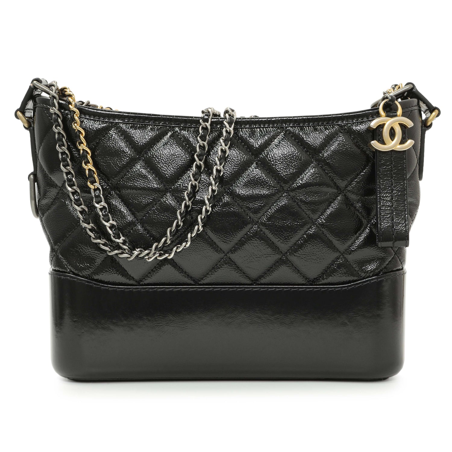 Chanel Black Quilted Patent Goatskin Medium Gabrielle Hobo
