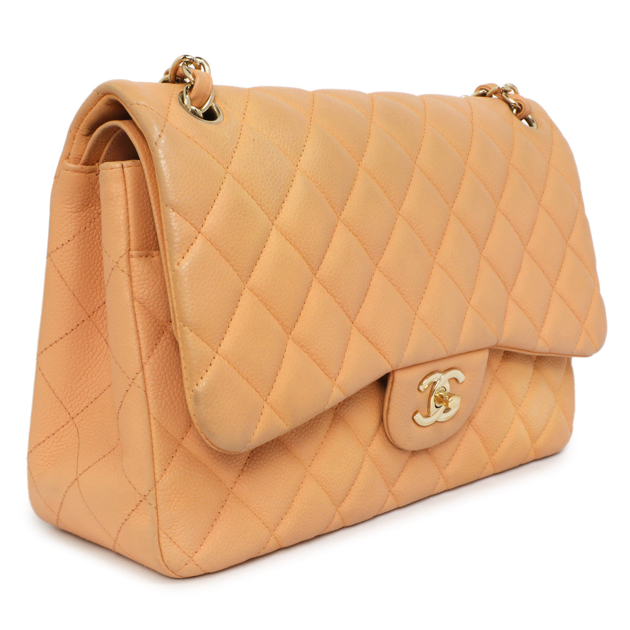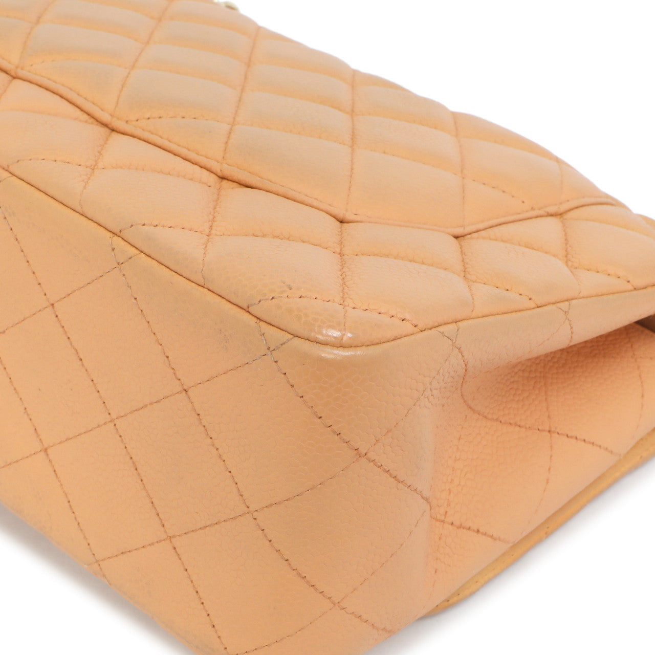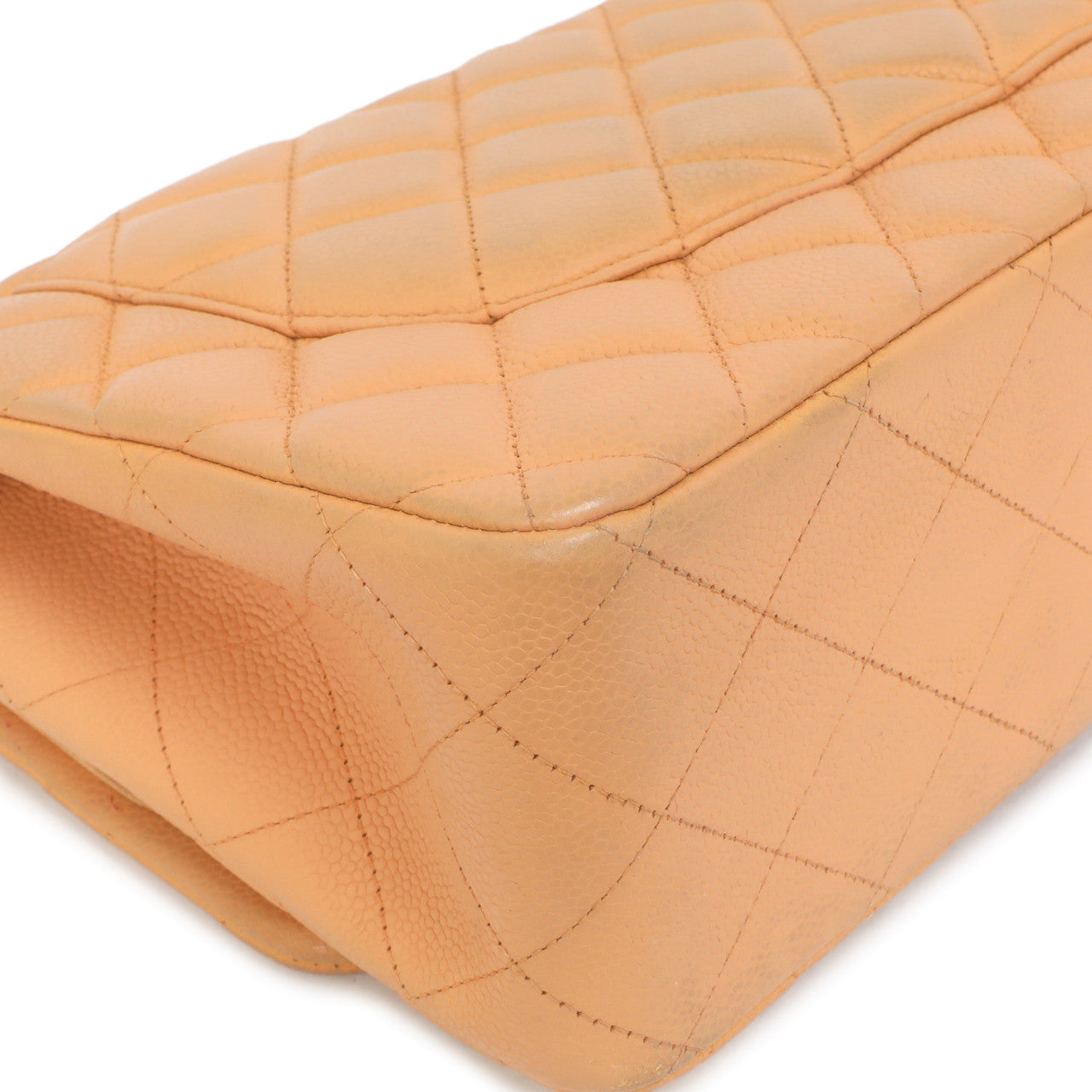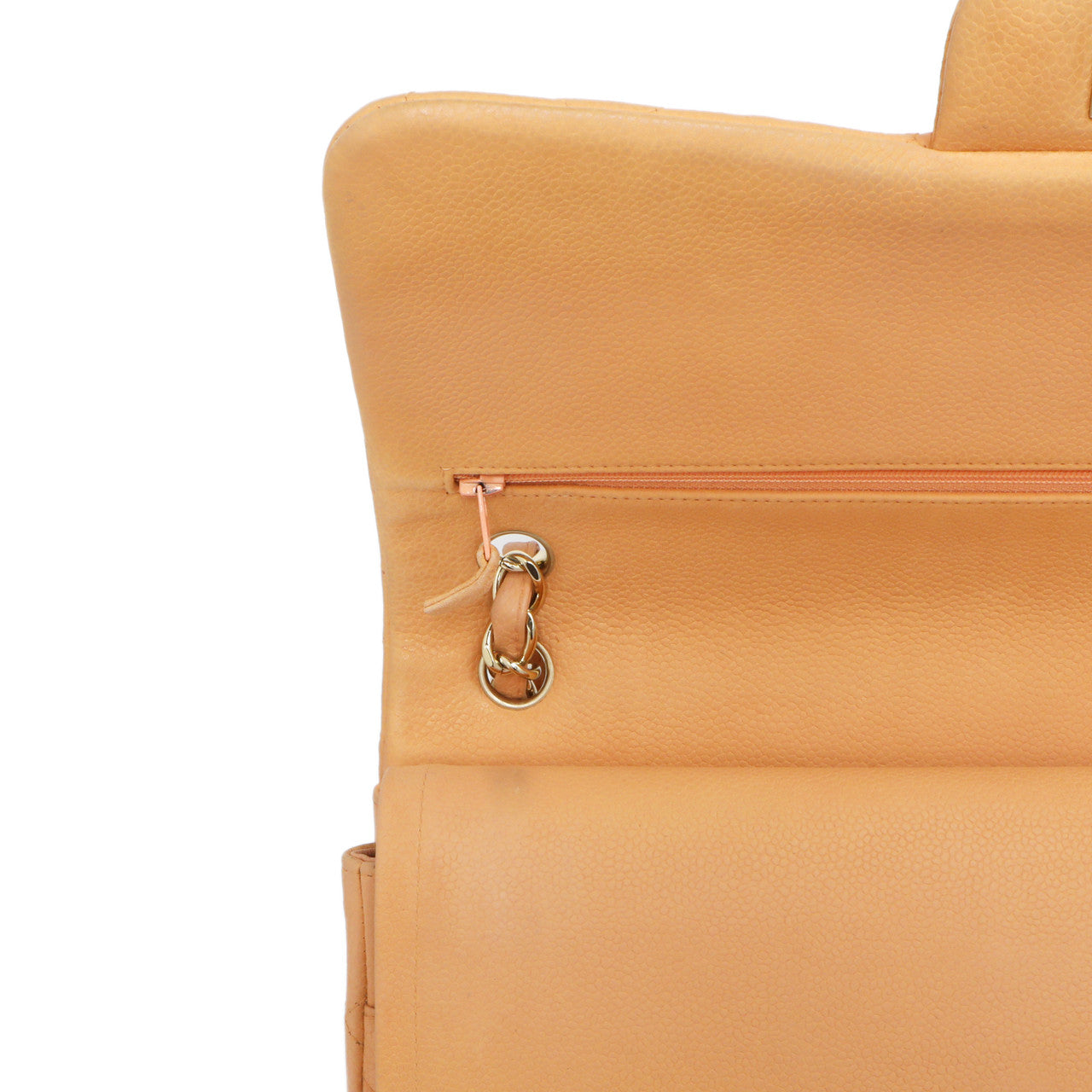 Authentic Chanel Peach Quilted Caviar Jumbo Classic Double Flap
