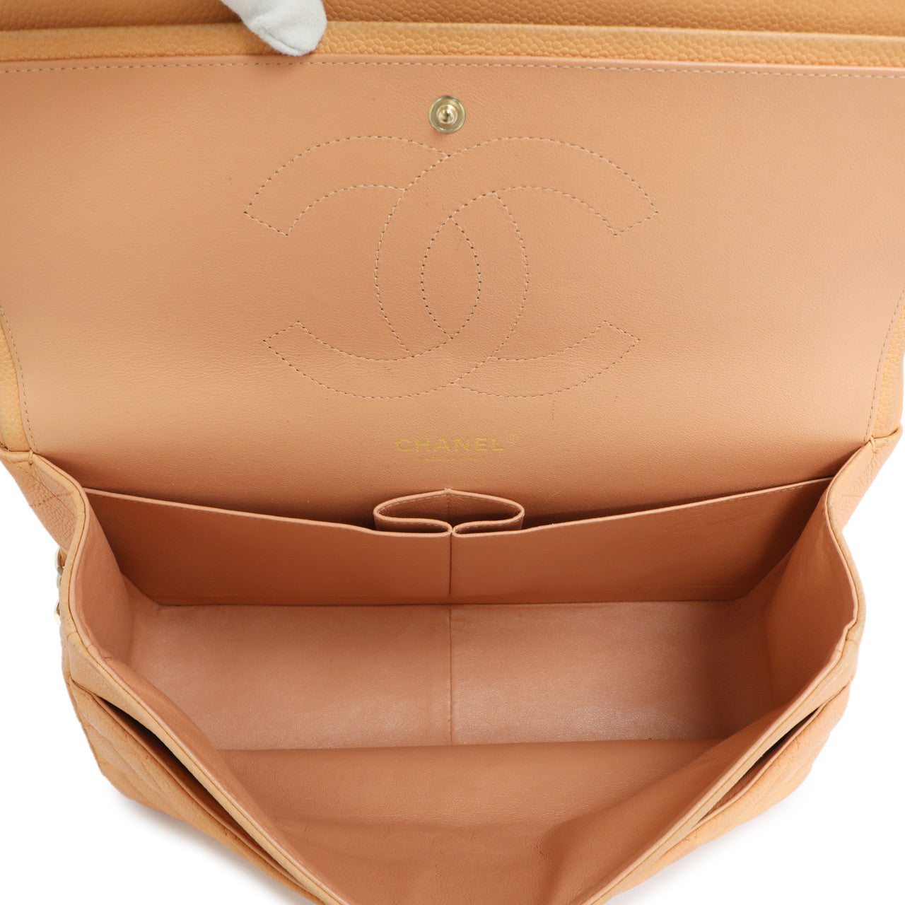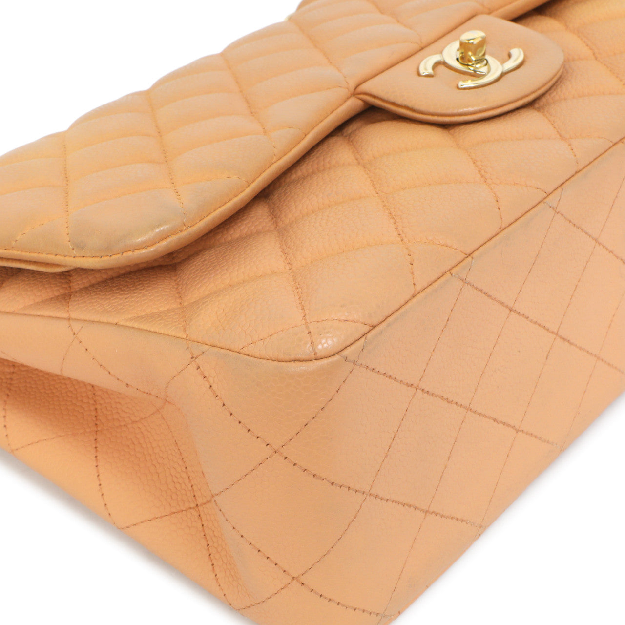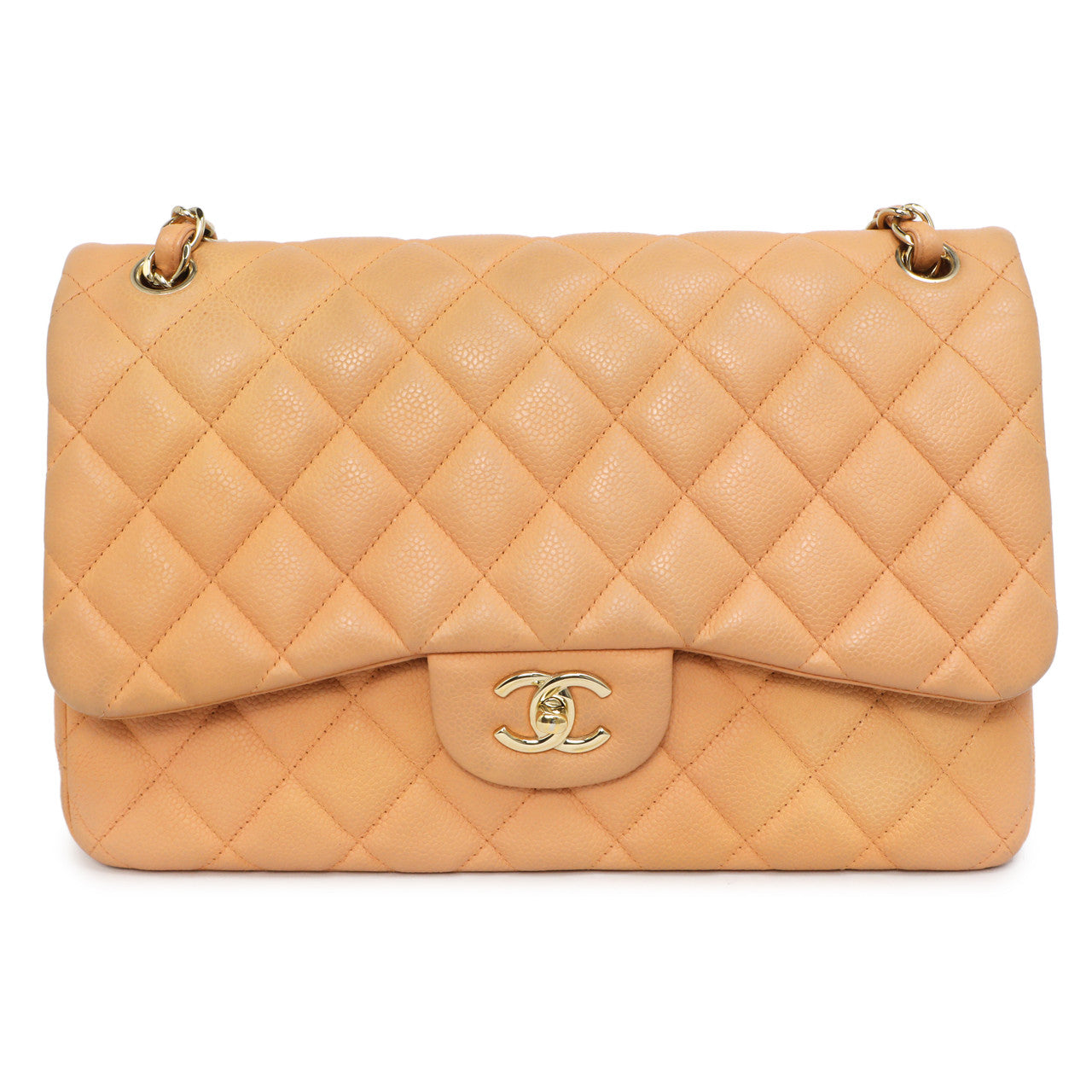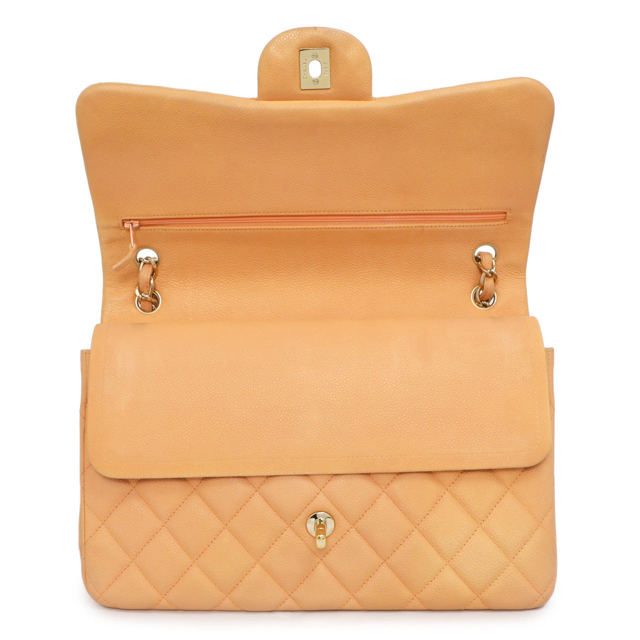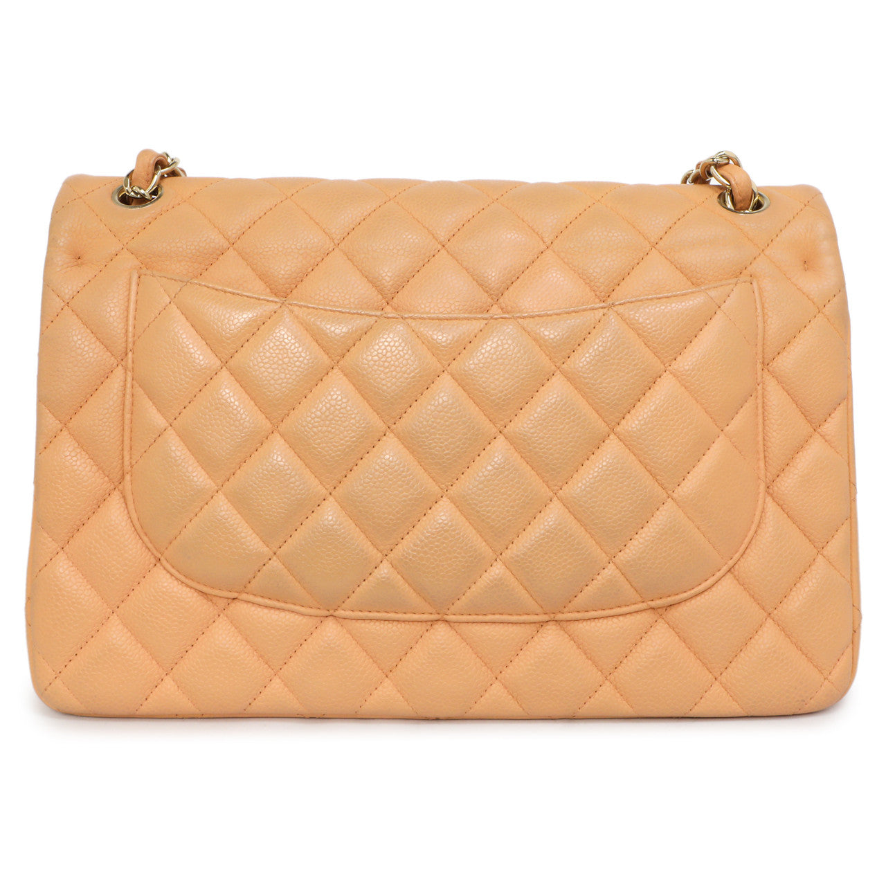 Authentic Chanel Peach Quilted Caviar Jumbo Classic Double Flap