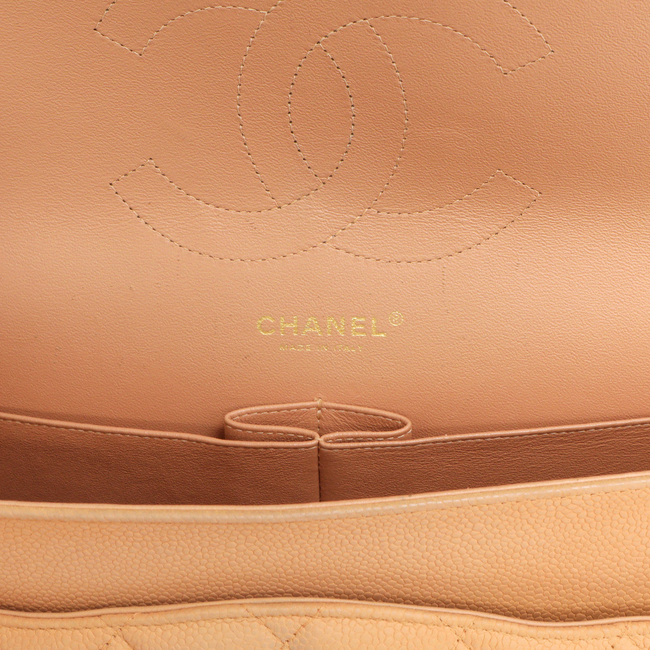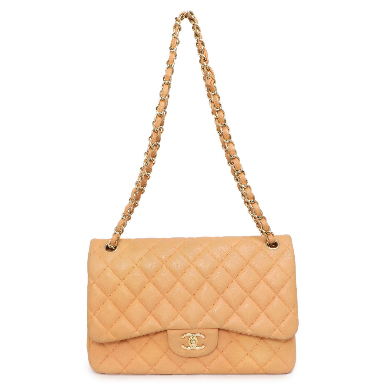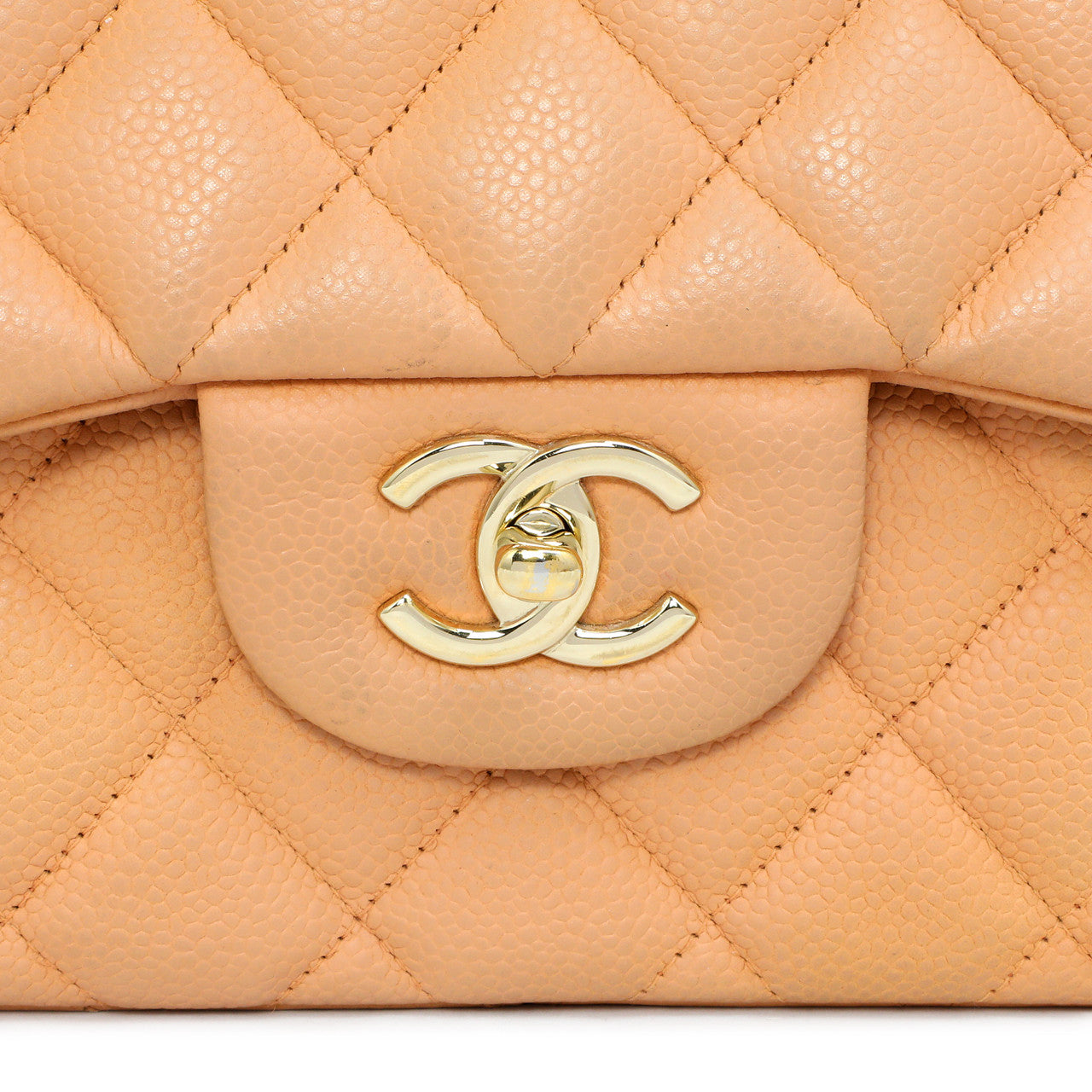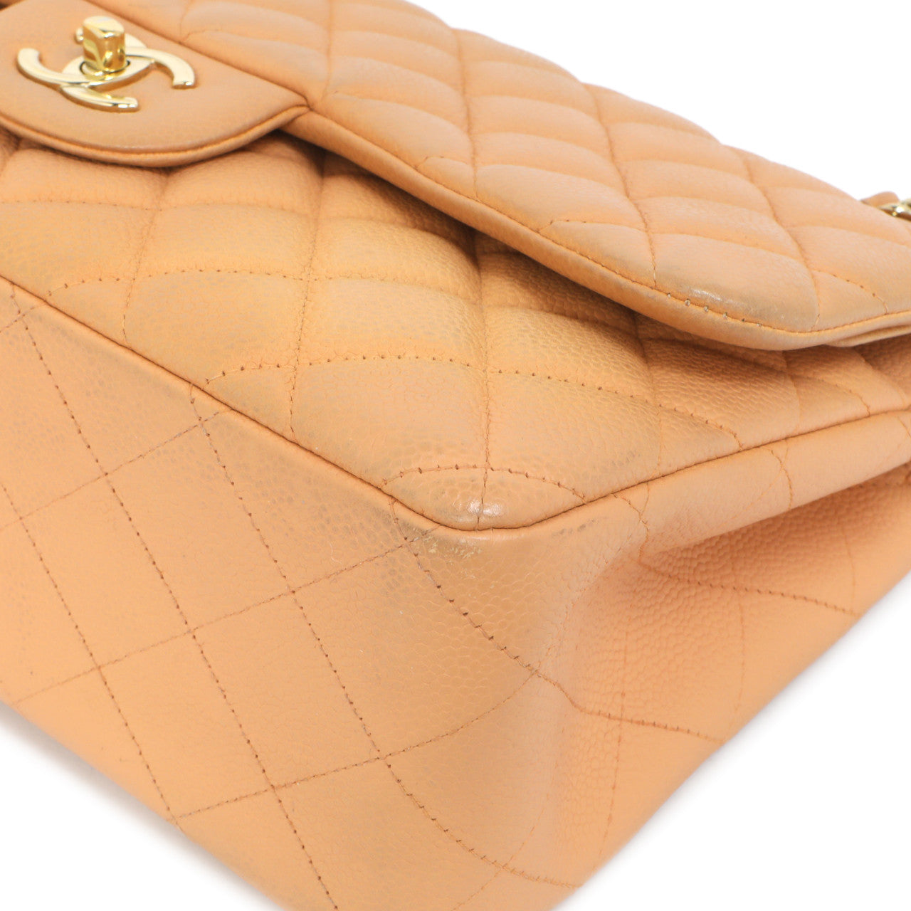 Authentic Chanel Peach Quilted Caviar Jumbo Classic Double Flap