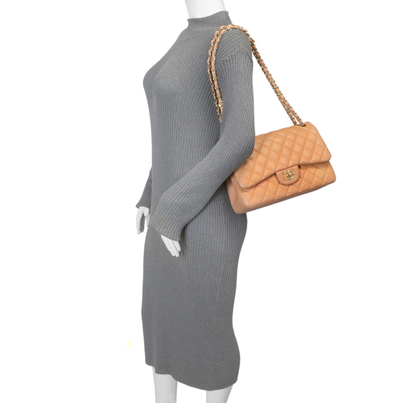 Chanel Peach Quilted Caviar Jumbo Classic Double Flap is backordered and will ship as soon as it is back in stock.