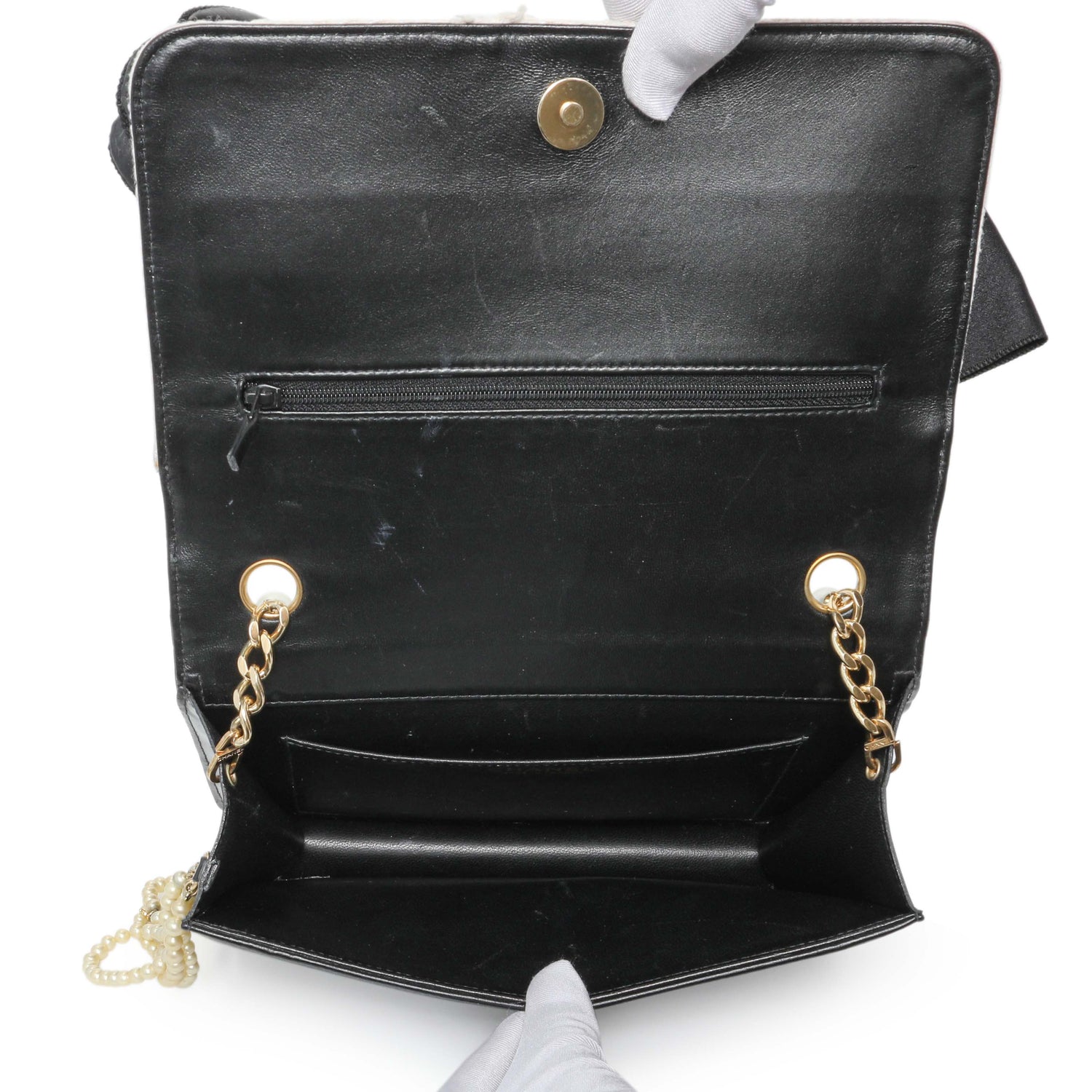 Chanel Tweed Lambskin Camellia Pearl Chain Flap