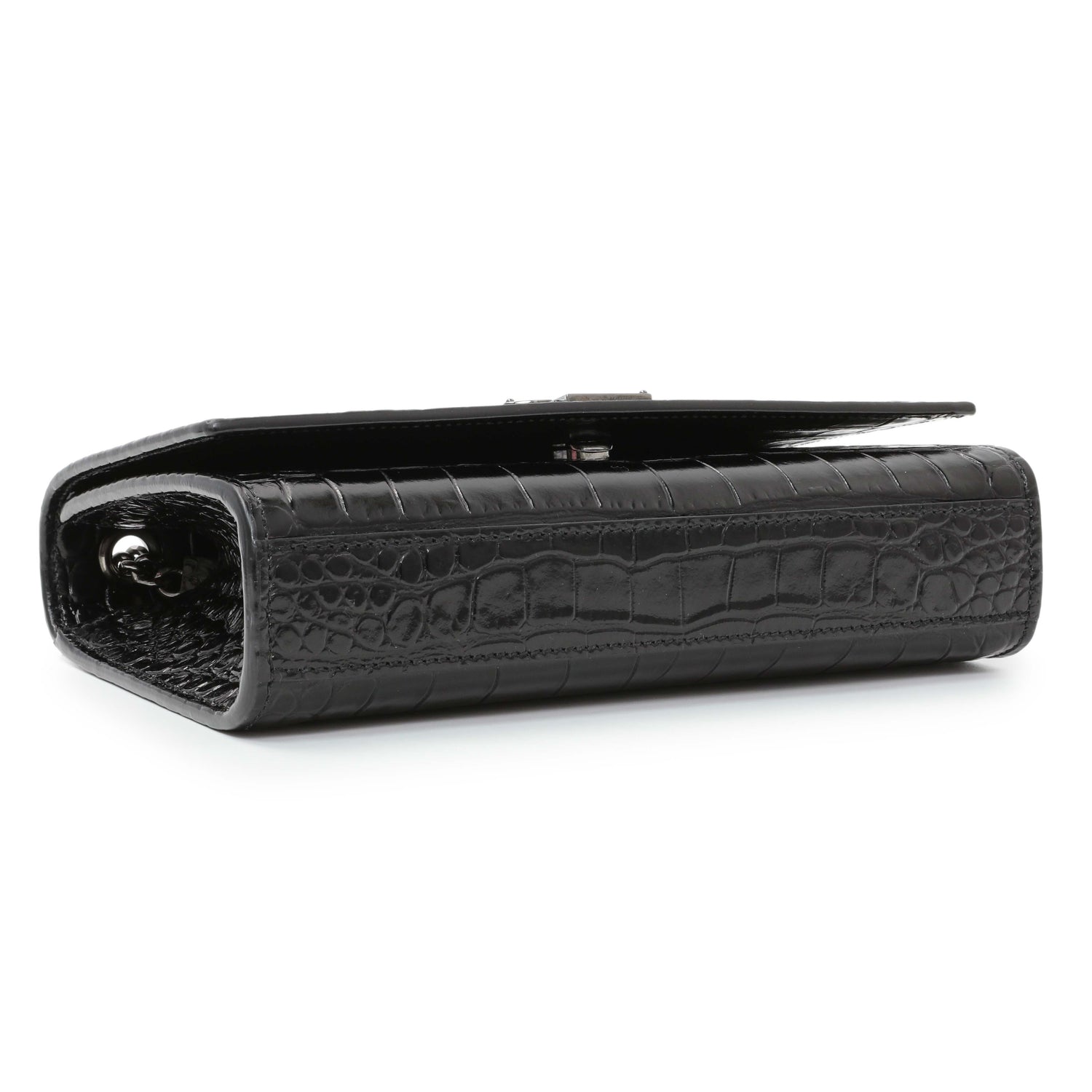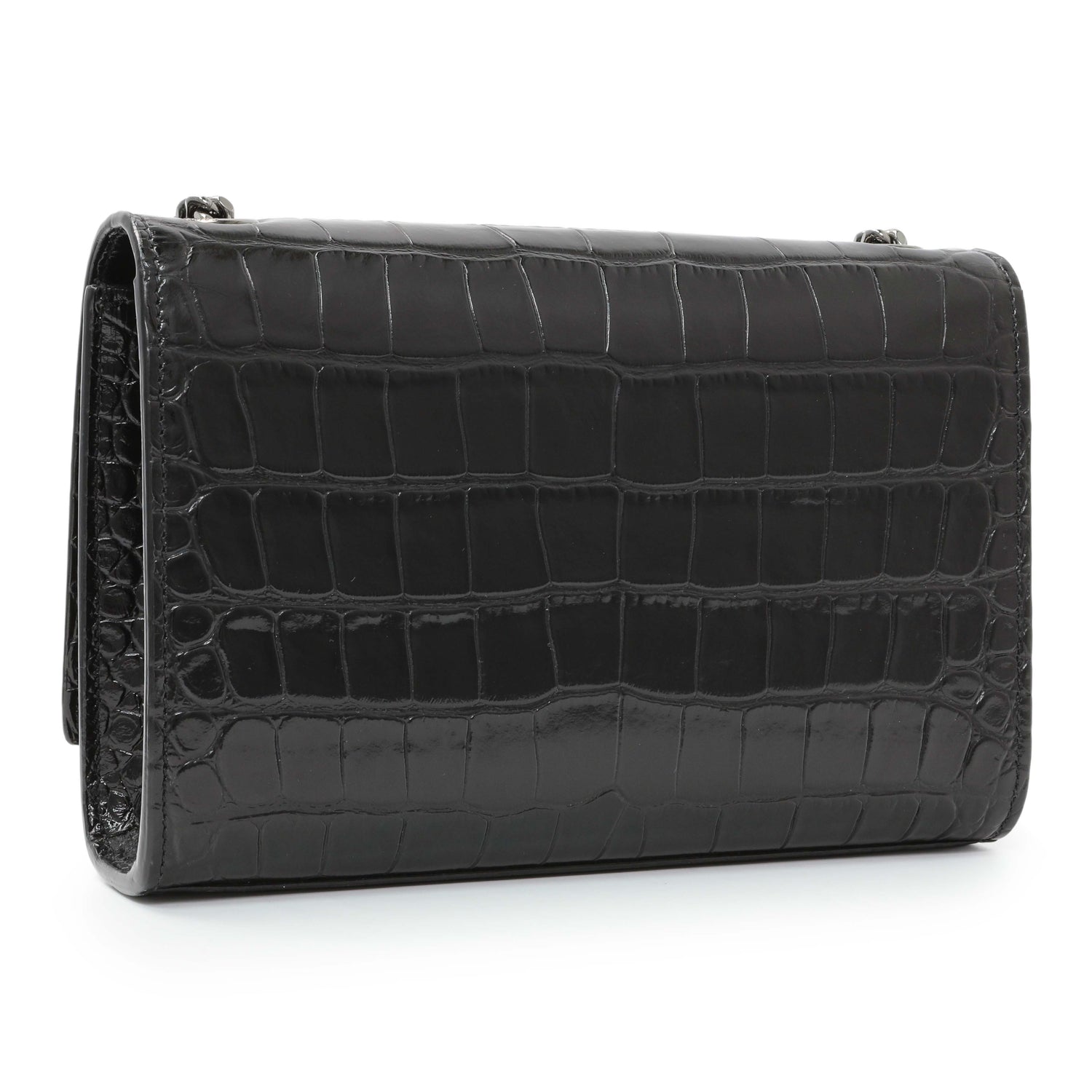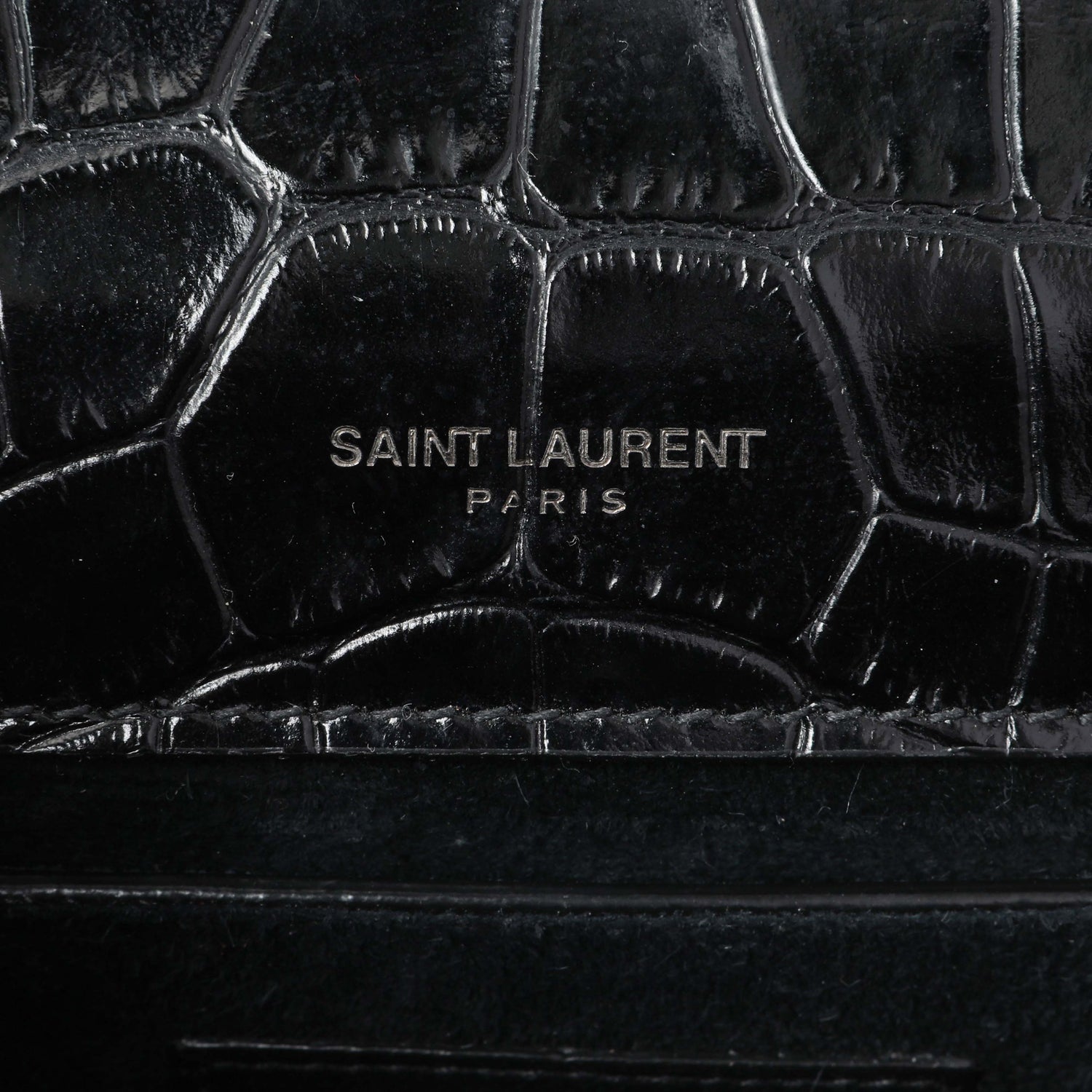Saint Laurent Calfskin Crocodile Embossed Small Classic Monogram Kate Satchel