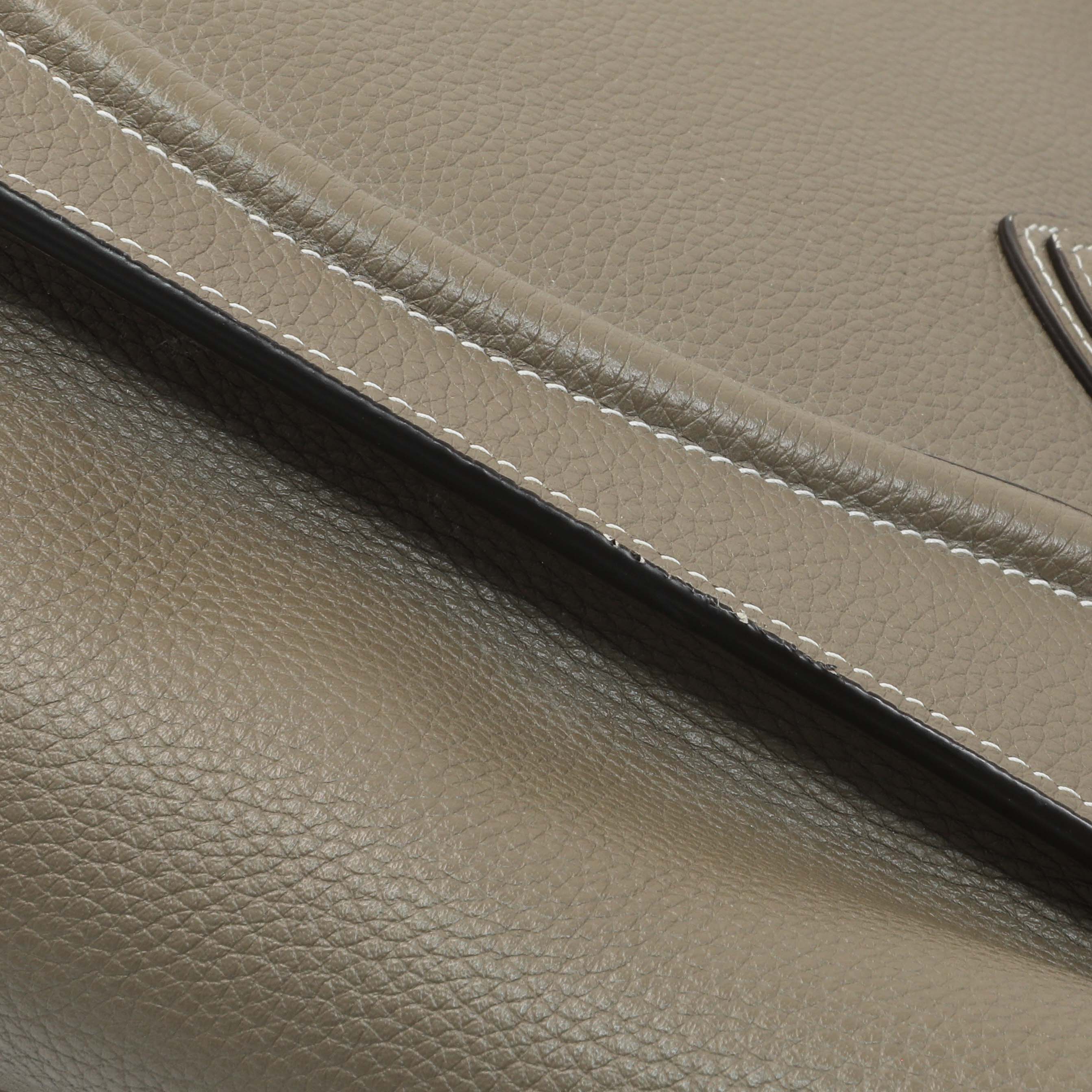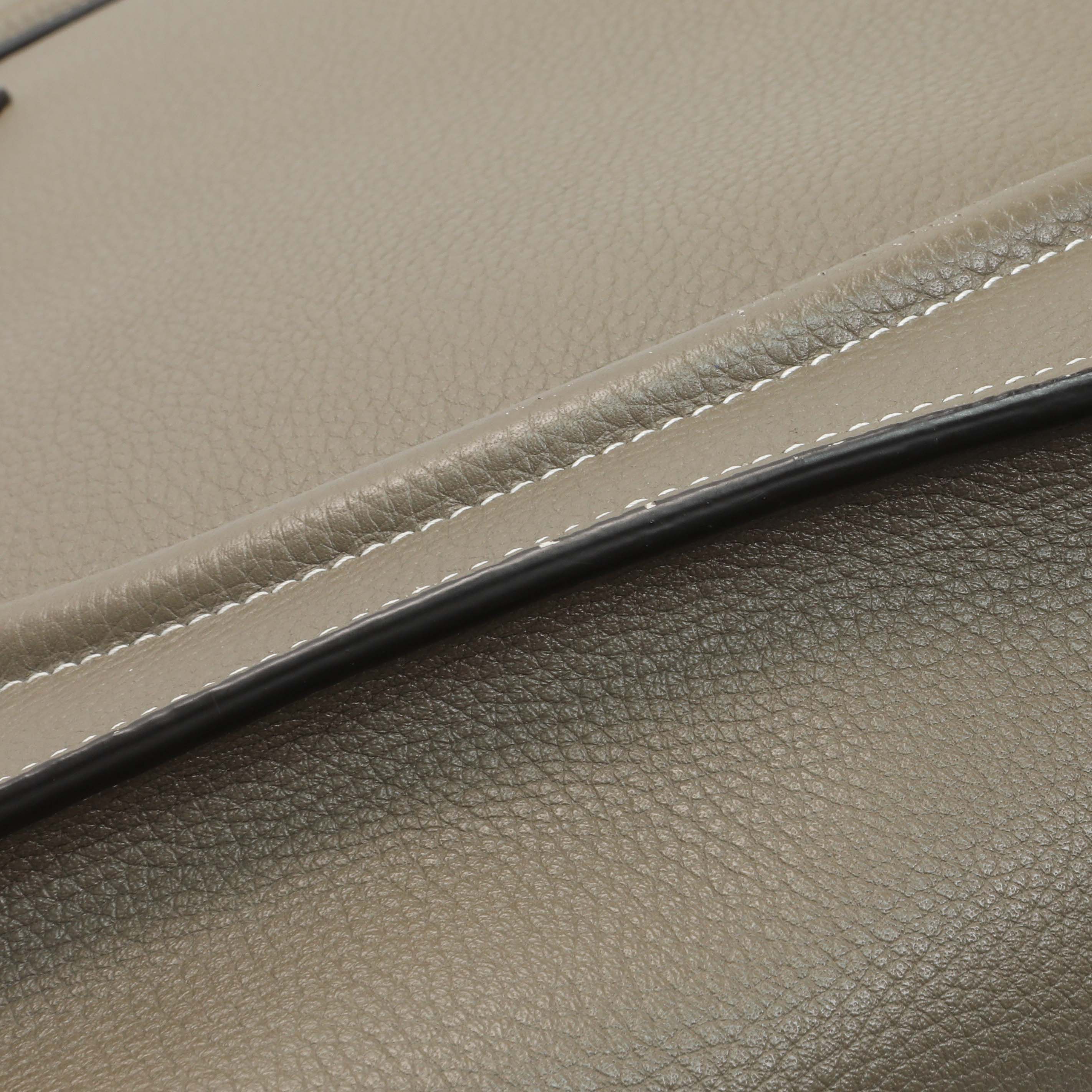 Exterior: Light wear along edges, light scuffs on leather surfaces, faint cracking along base of handle