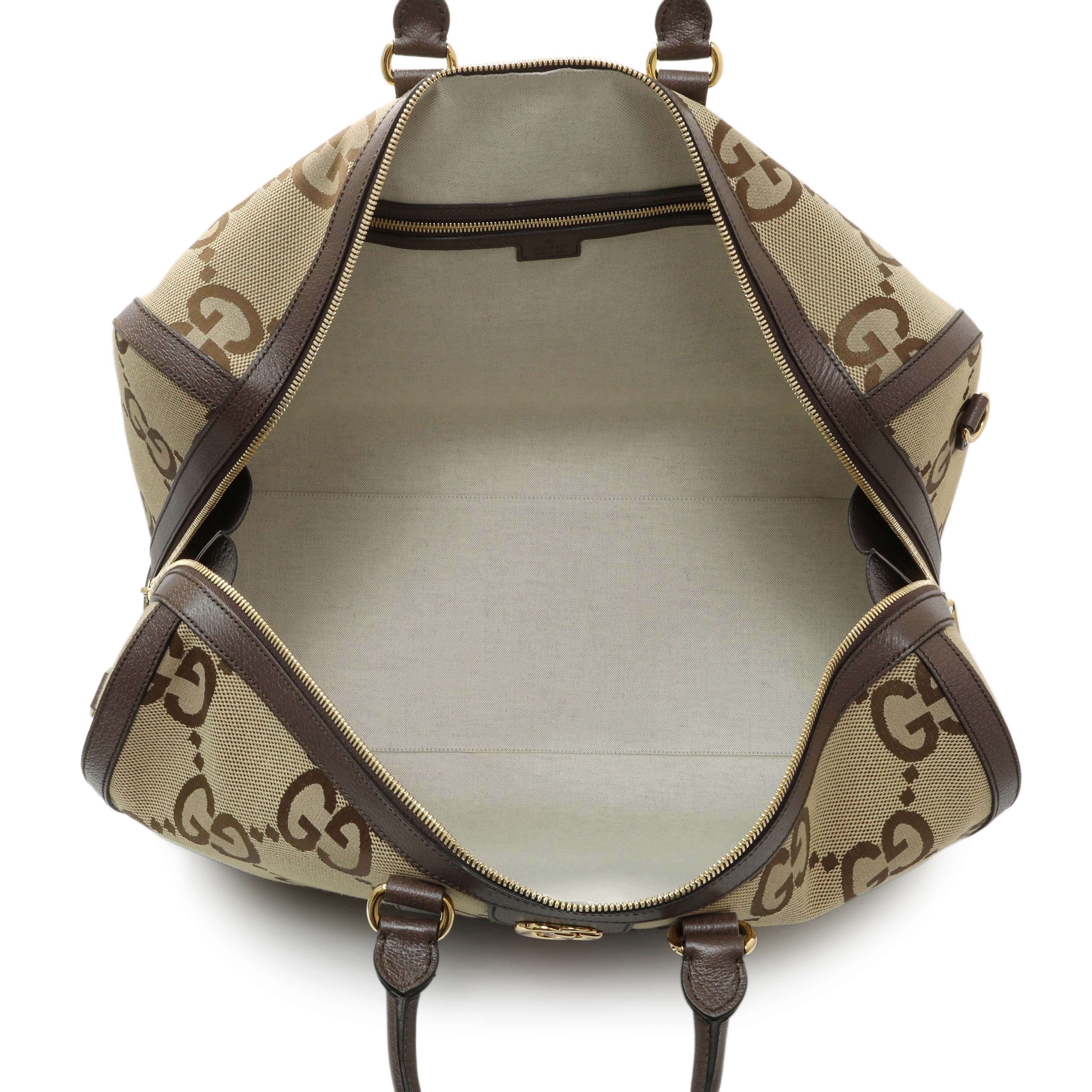 Gucci Monogram Jumbo GG Textured Dollar Calfskin Web Large Duffle Bag