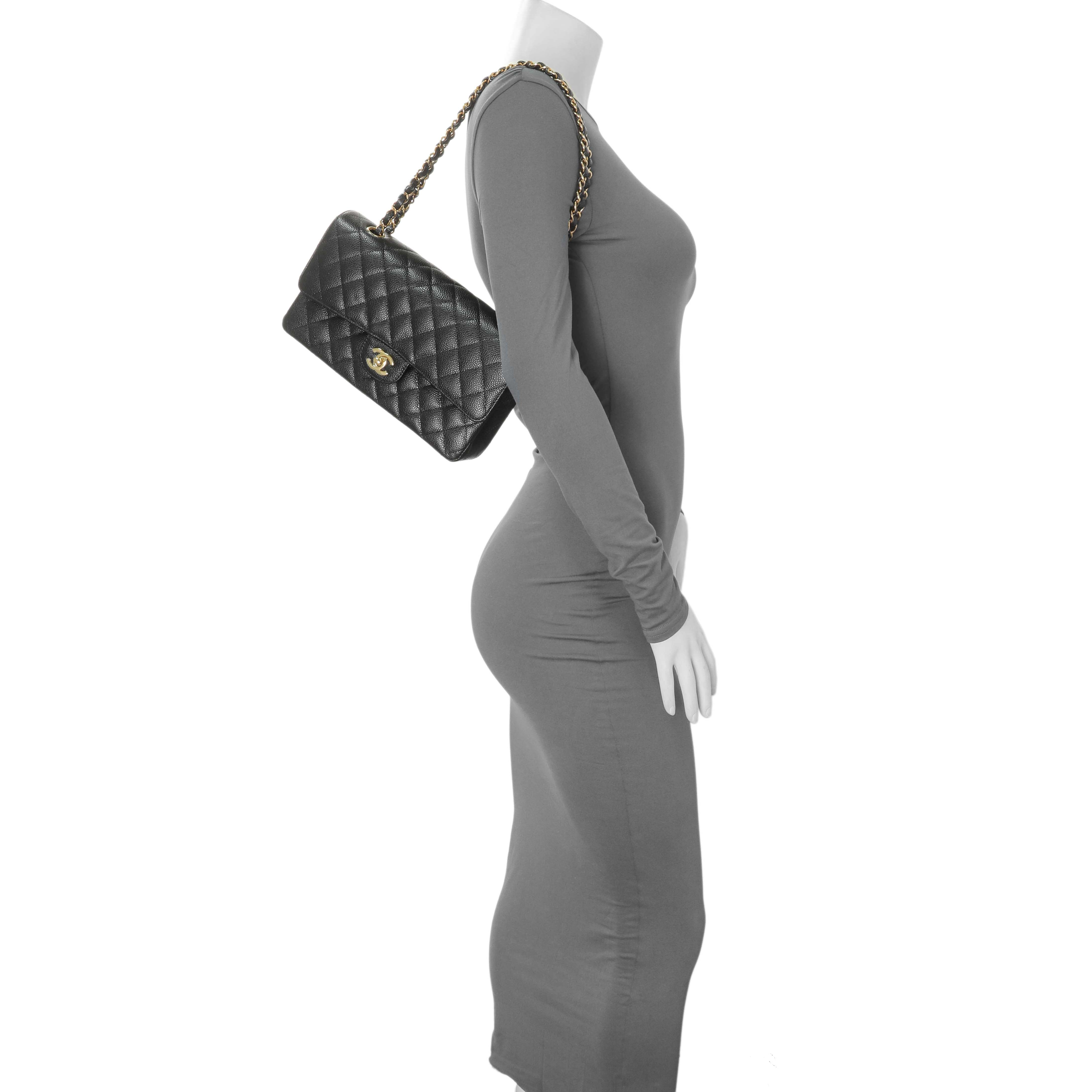 Chanel Black Quilted Caviar Medium Classic Double Flap is backordered and will ship as soon as it is back in stock.