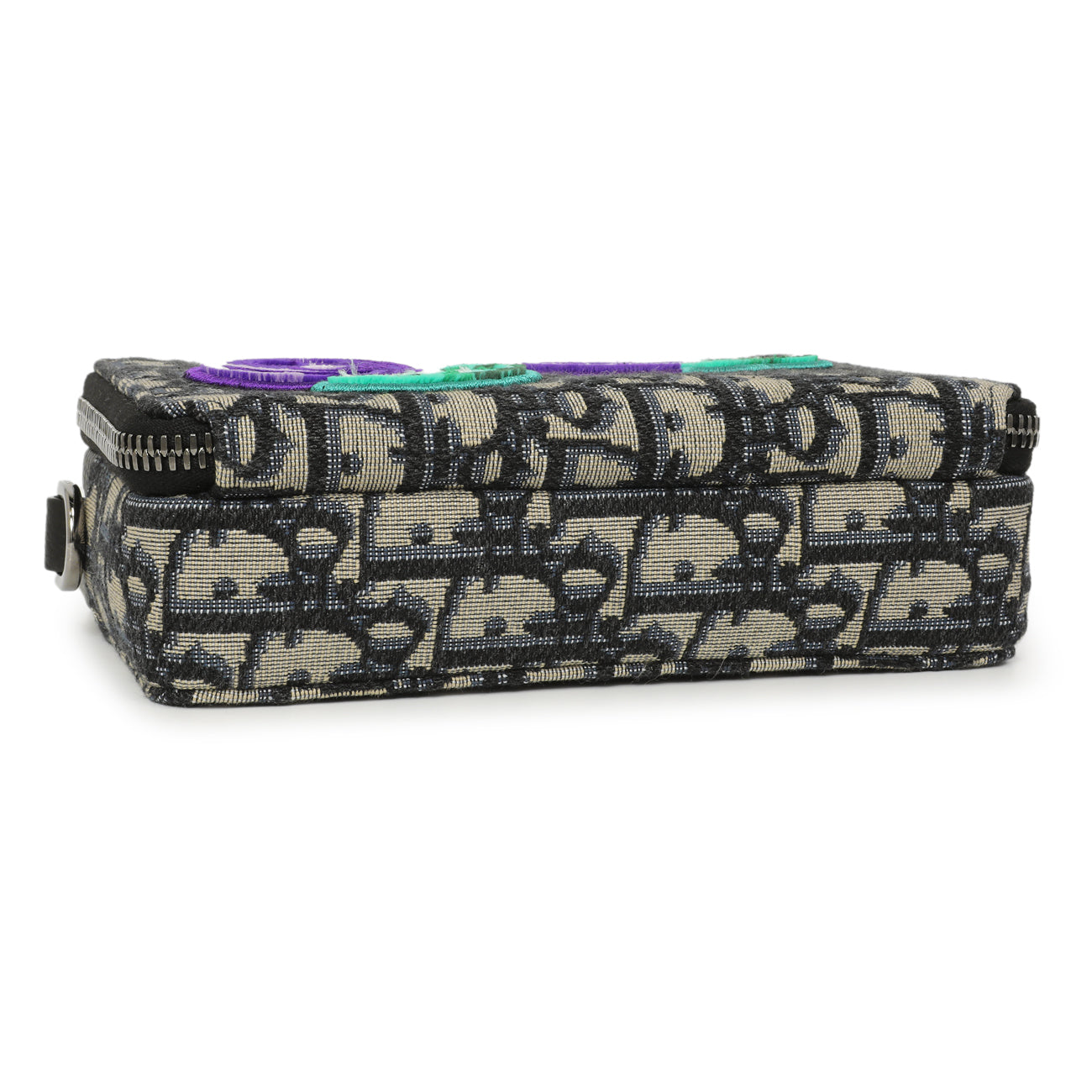 Christian Dior X Kenny Scharf Oblique Embroidered Patches Double Zip Crossbody Pouch