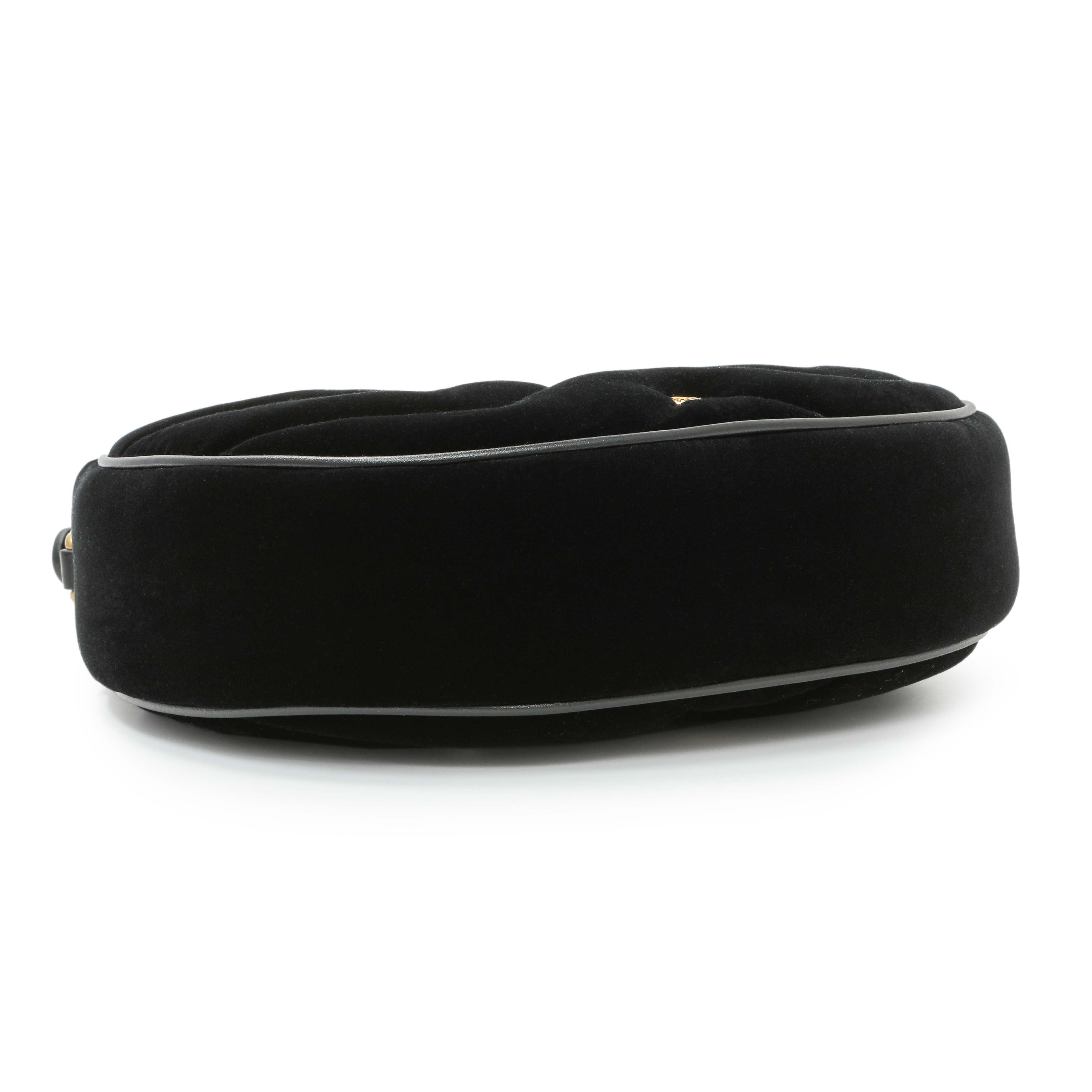 Gucci Black Velvet Matelasse Double G Studs Marmont Half Moon Hobo