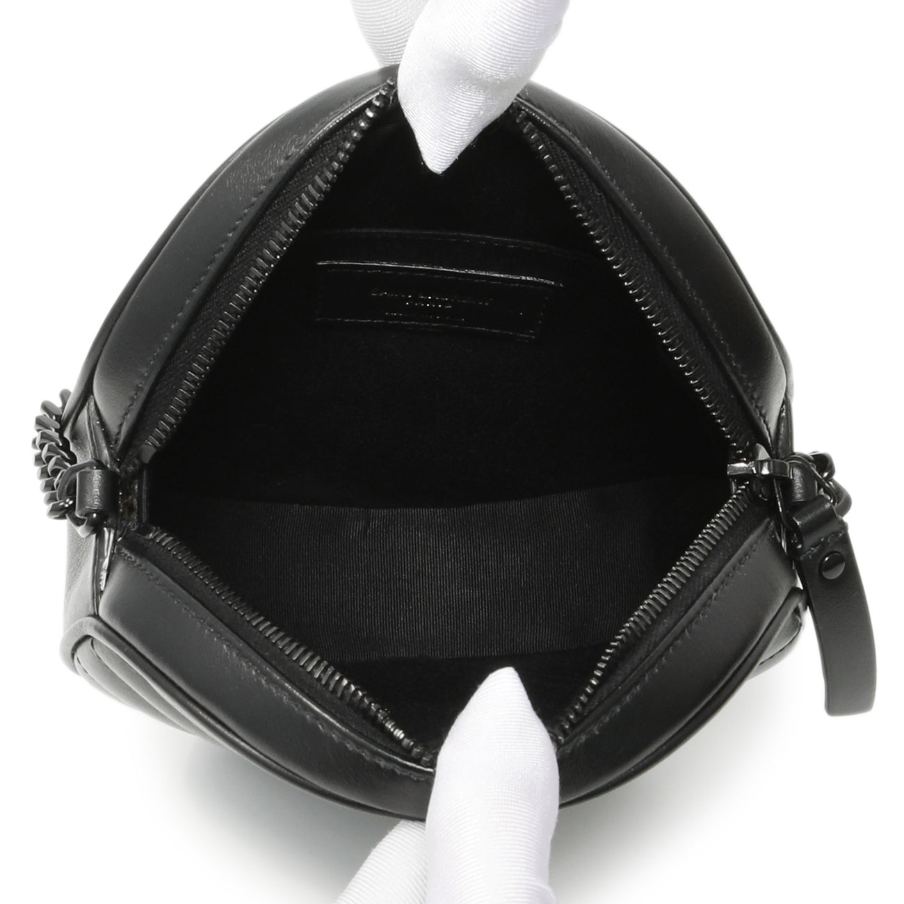 Saint Laurent Black Calfskin Matelasse Chevron Round Vinyle Camera Bag