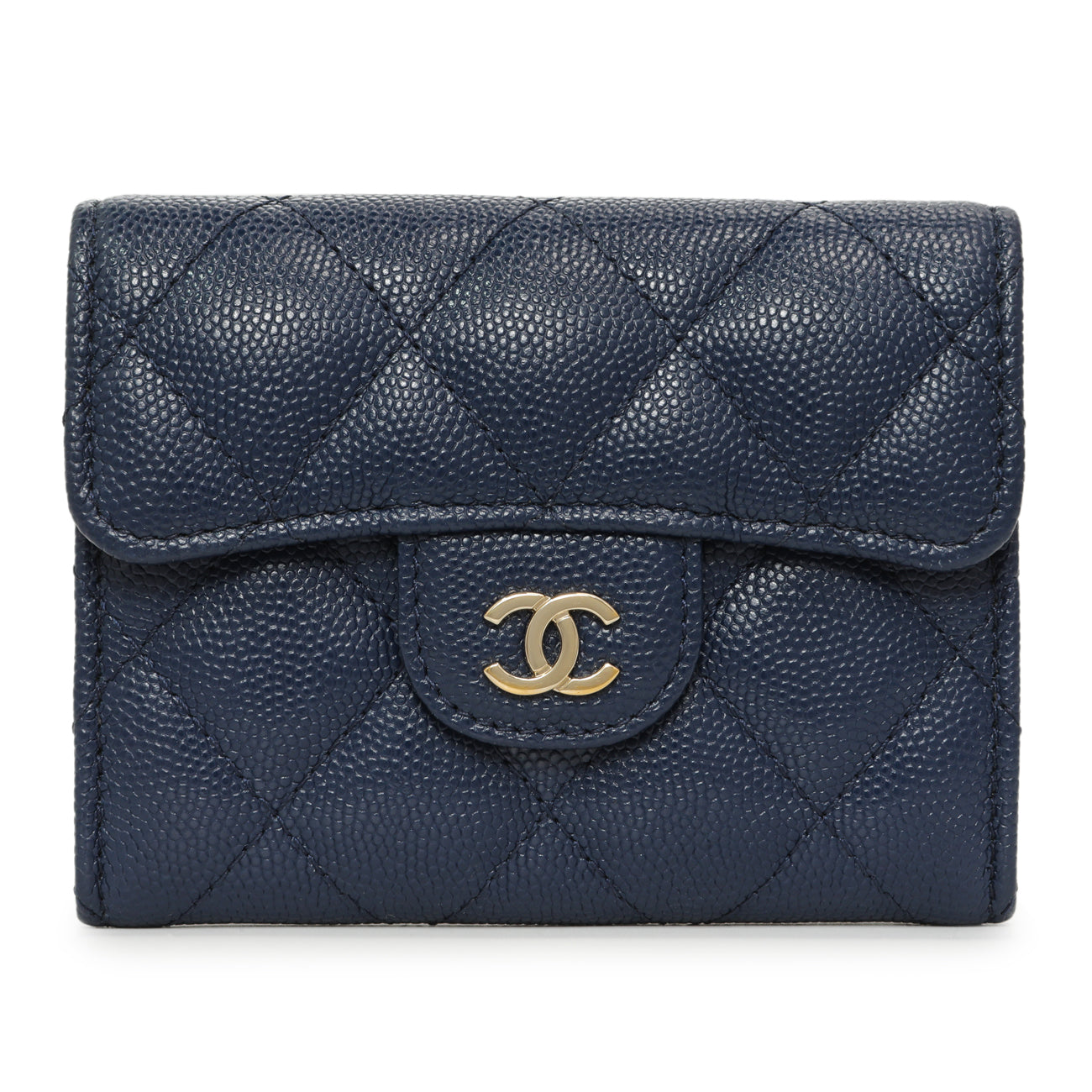 Chanel Blue Quilted Caviar Flap Card Holder Wallet