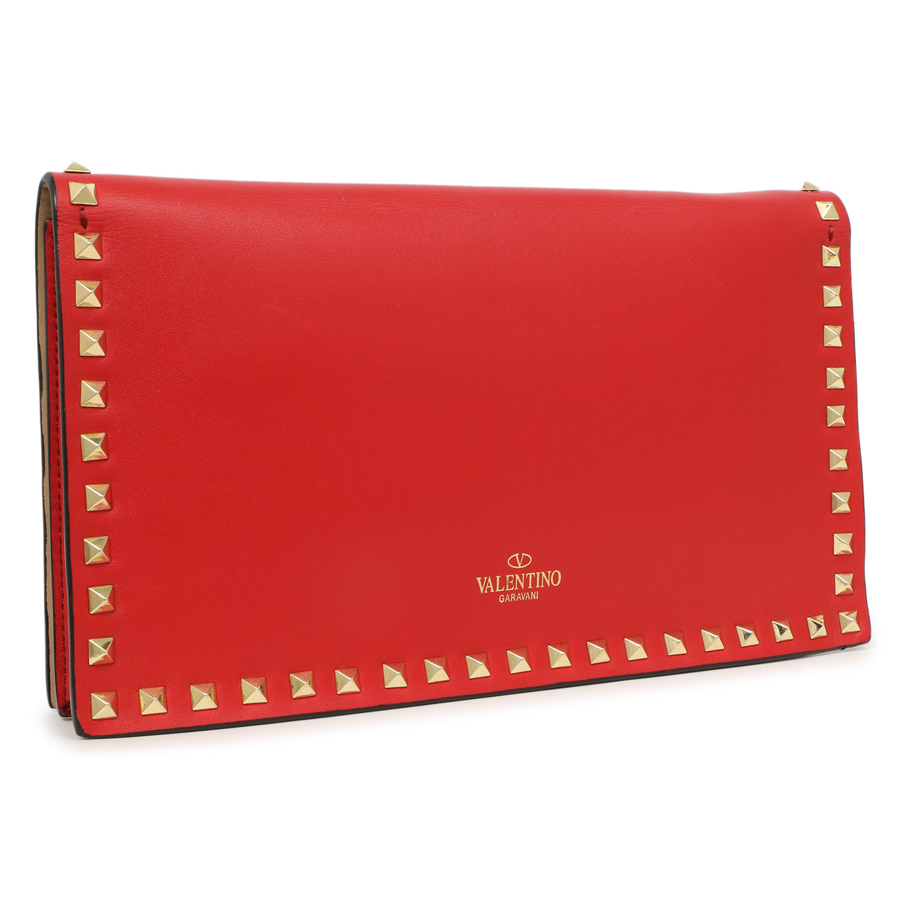 Valentino Red Nappa Rockstud Wristlet Clutch