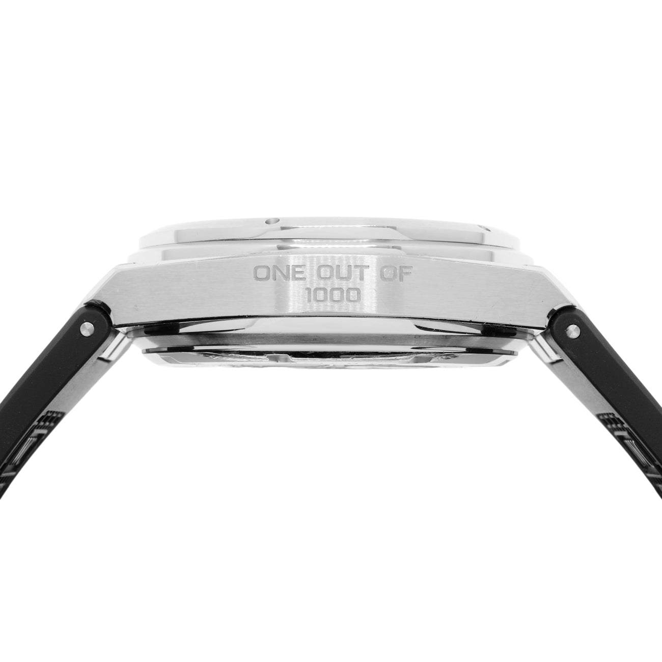 - Bracelet: Black rubber with stainless steel buckle