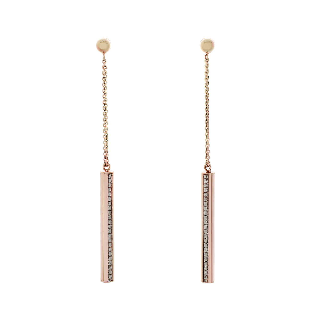 10K Rose Gold Octagon Bar Dangle Earrings