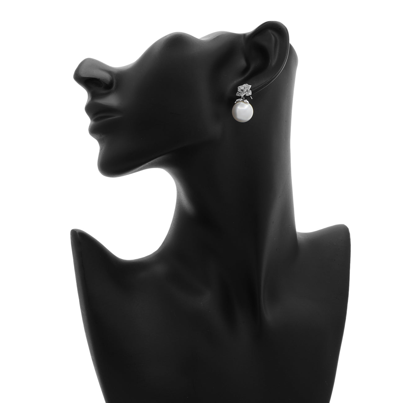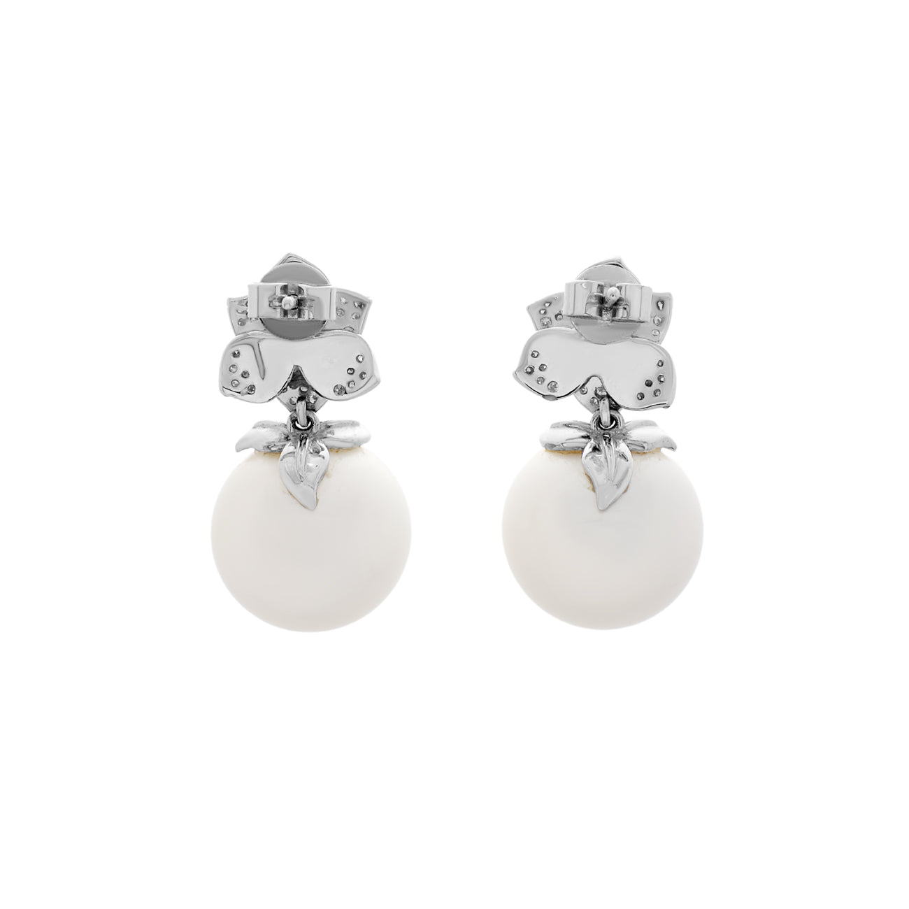 18K White Gold 12.9mm South Sea Pearl Blossom Drop Earrings