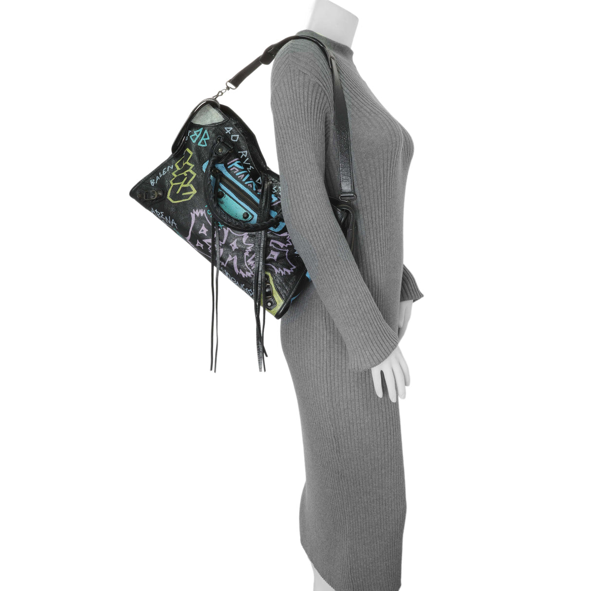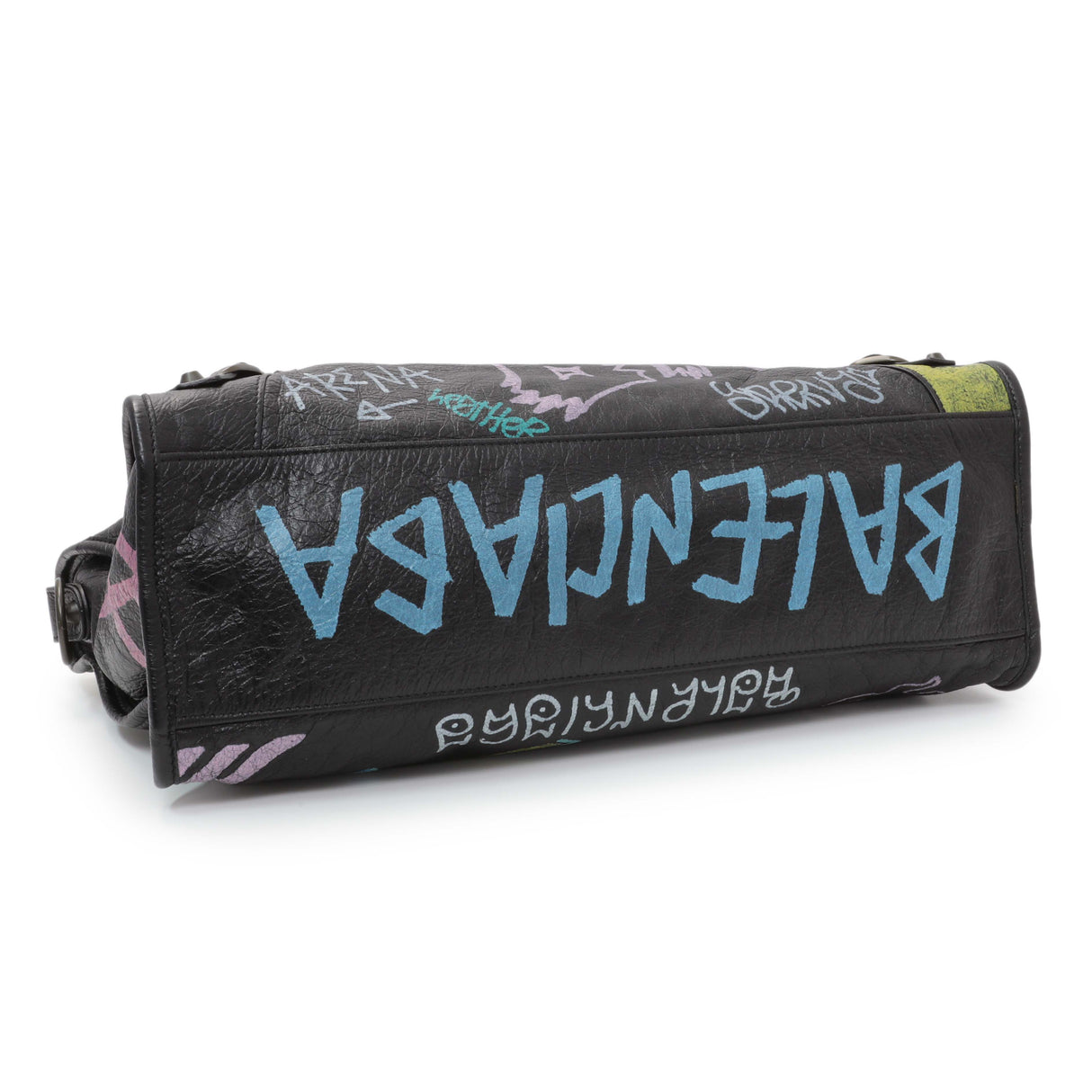 Balenciaga Black Agneau Graffiti All Over Classic Hardware City