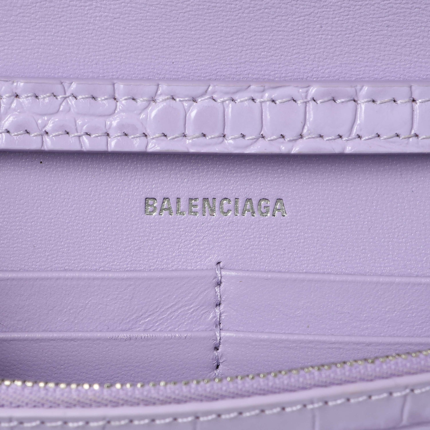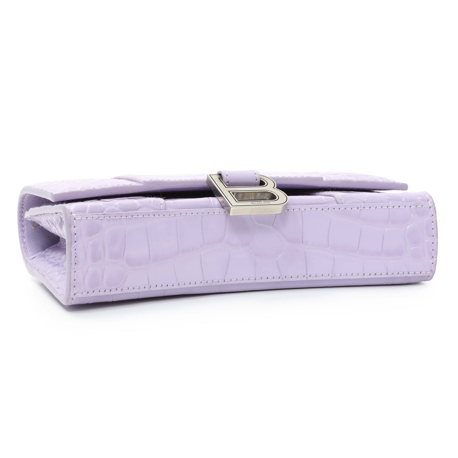 Balenciaga Lilac Shiny Calfskin Crocodile Embossed Hourglass Chain Bag