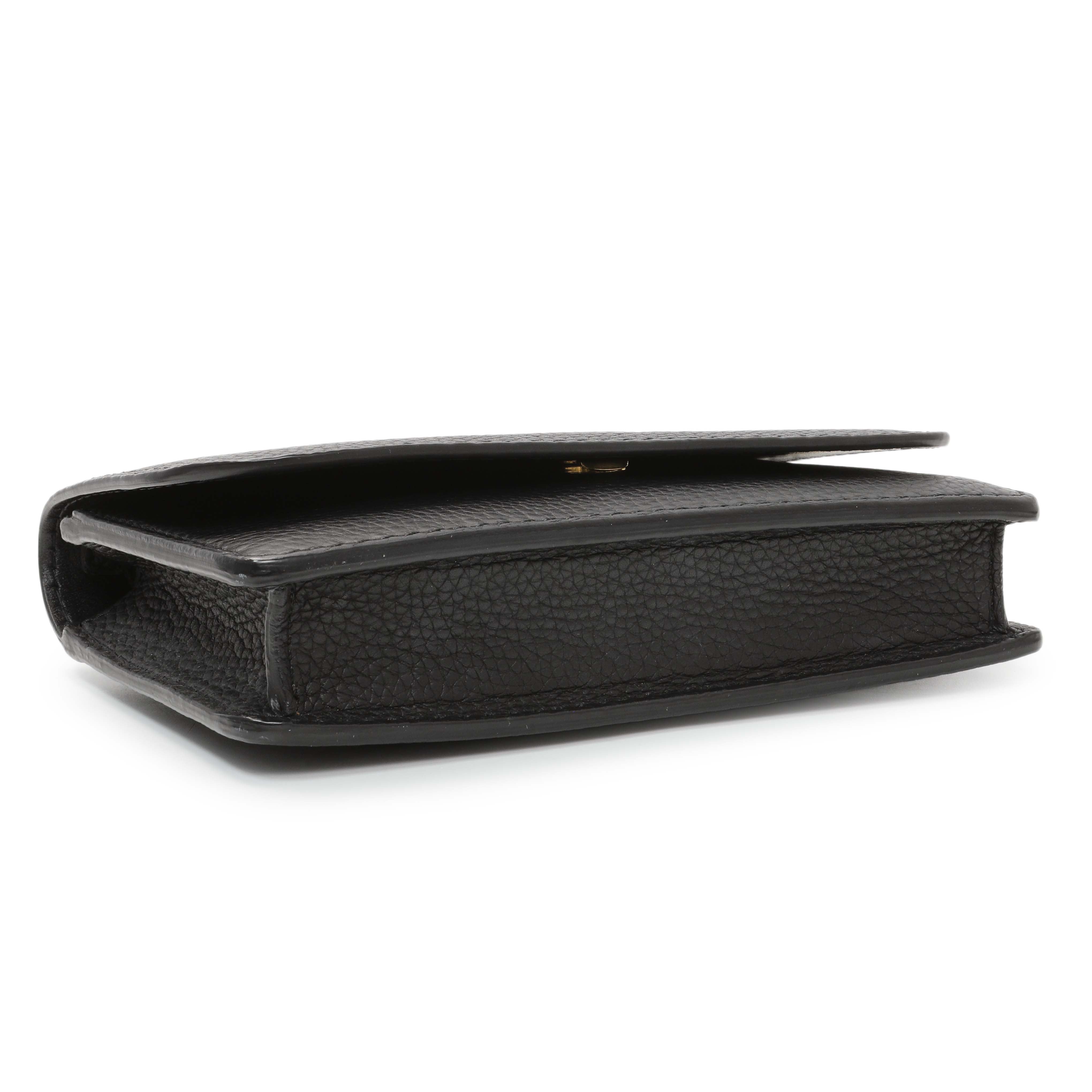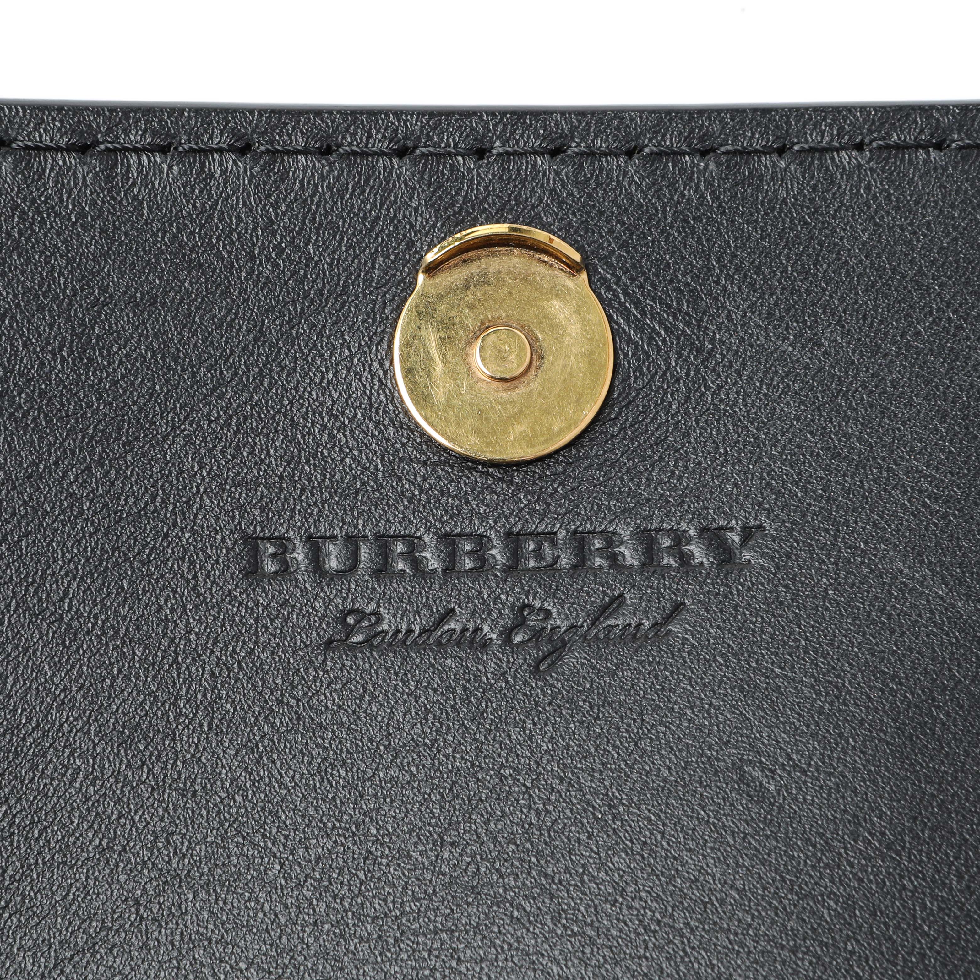 Burberry Black Pebbled Leather Hampshire Wallet On Chain